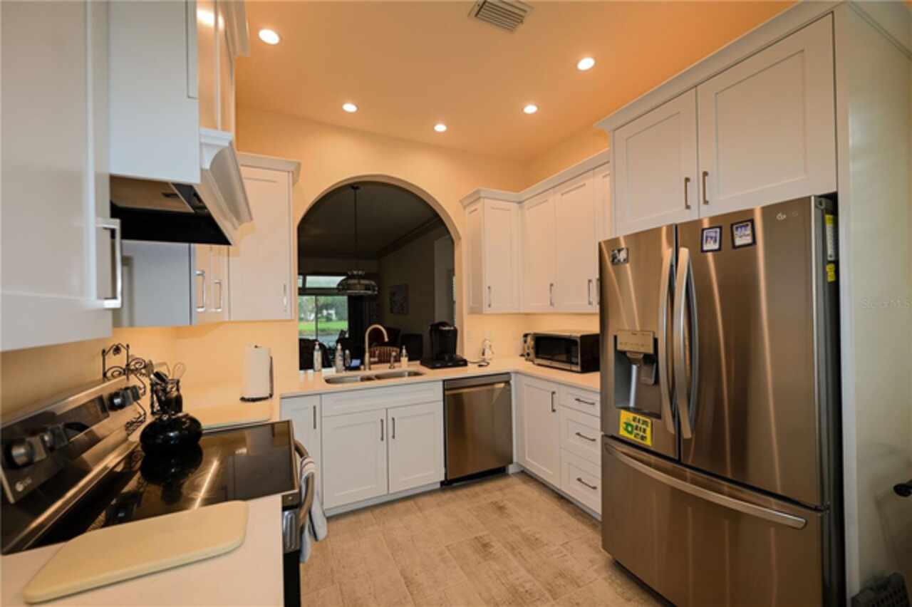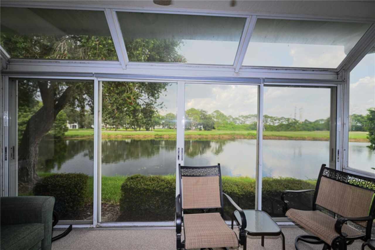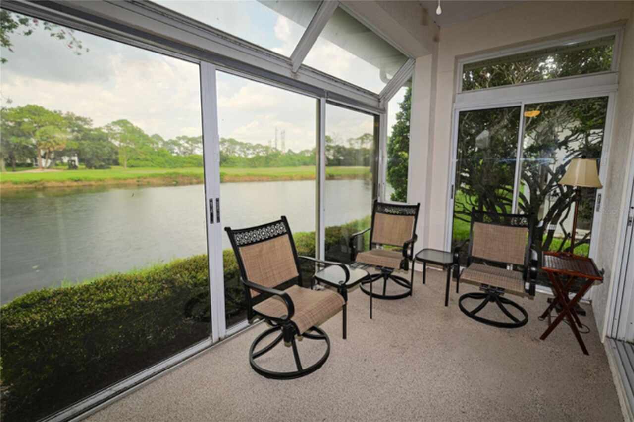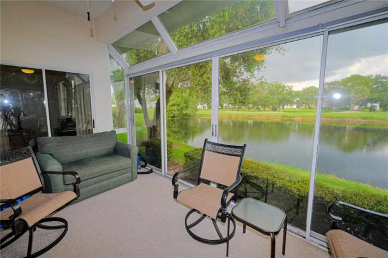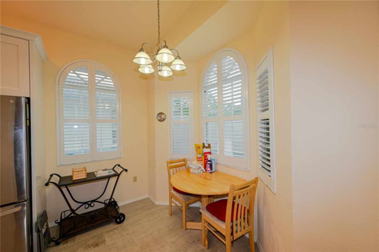 Virtual tour link in MLS is actual 3D tour, not a slideshow - please visit it! Furniture is optional with listing. Welcome to this beautifully maintained 2-bedroom, 2-bath villa located in the highly desirable Long Common enclave within The Meadows. This single-story home offers 1, 264 square feet of bright, open living space, ideal for those seeking a low-maintenance Florida lifestyle. Step inside through a charming courtyard entry with a brick-paver driveway and a 2-car garage. Inside, the great room impresses with high ceilings, crown molding, and direct access to a Florida room that features a panoramic view of the pond and fairway in the distance—perfect for relaxing or entertaining year-round. The kitchen features stainless appliances, stone countertops, a cozy bay-window breakfast nook, and a convenient pass-through to the living and dining areas. A split-bedroom floor plan ensures privacy, with the primary suite offering a walk-in closet, dual sinks, and a walk-in shower. Residents of The Meadows enjoy access to three golf courses, tennis and pickleball courts, a Jr. Olympic-sized heated pool, clubhouse, fitness center, and miles of scenic walking and biking trails. The community is also ideally located near Nathan Benderson Park, the upcoming Mote Marine Aquarium, University Town Center Mall, and a wide variety of shopping, dining, and cultural attractions in downtown Sarasota.