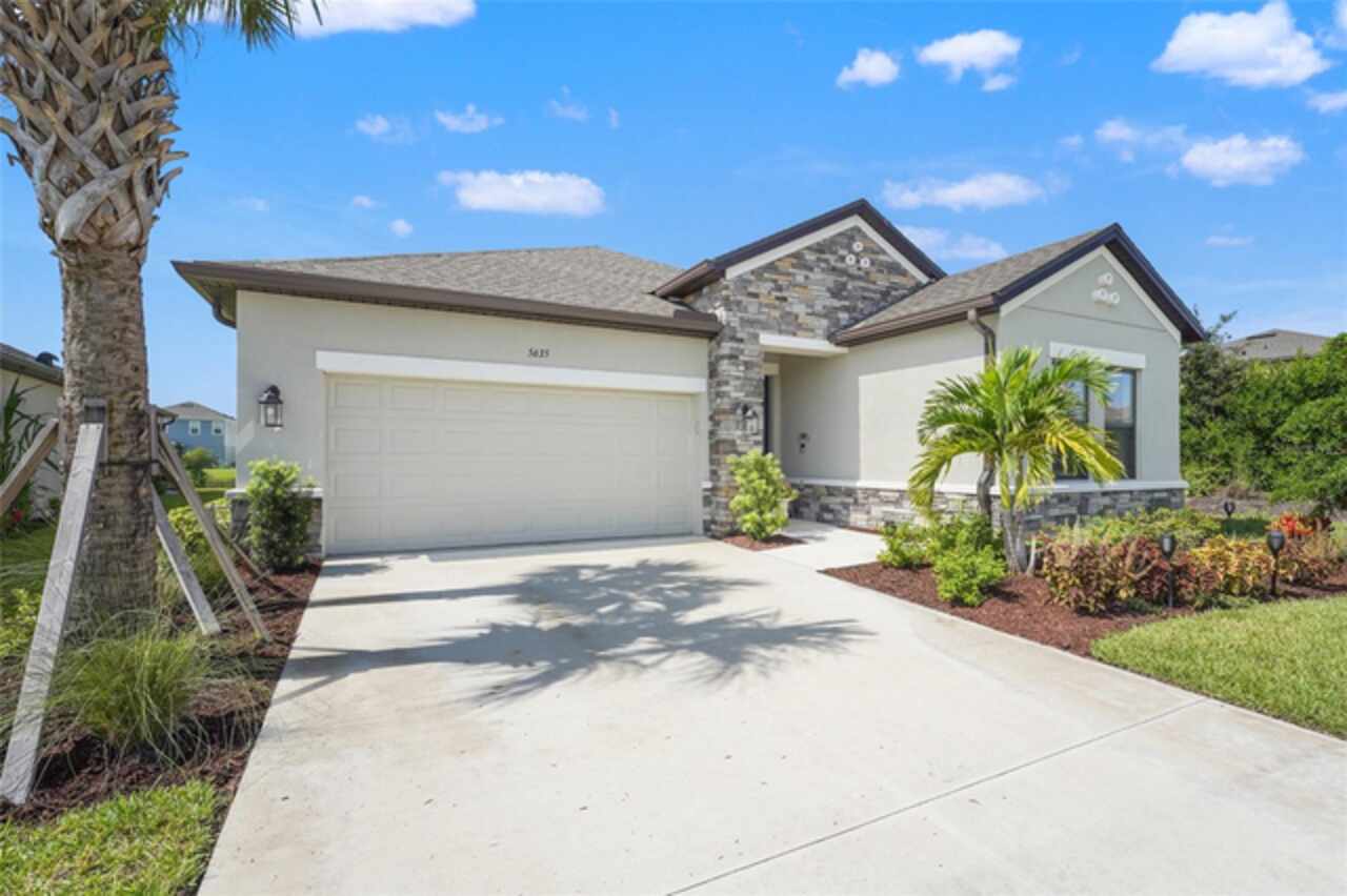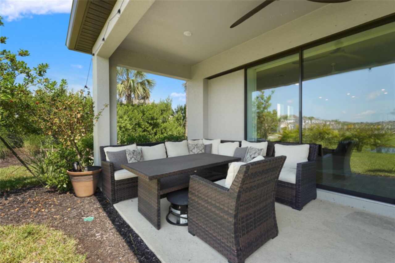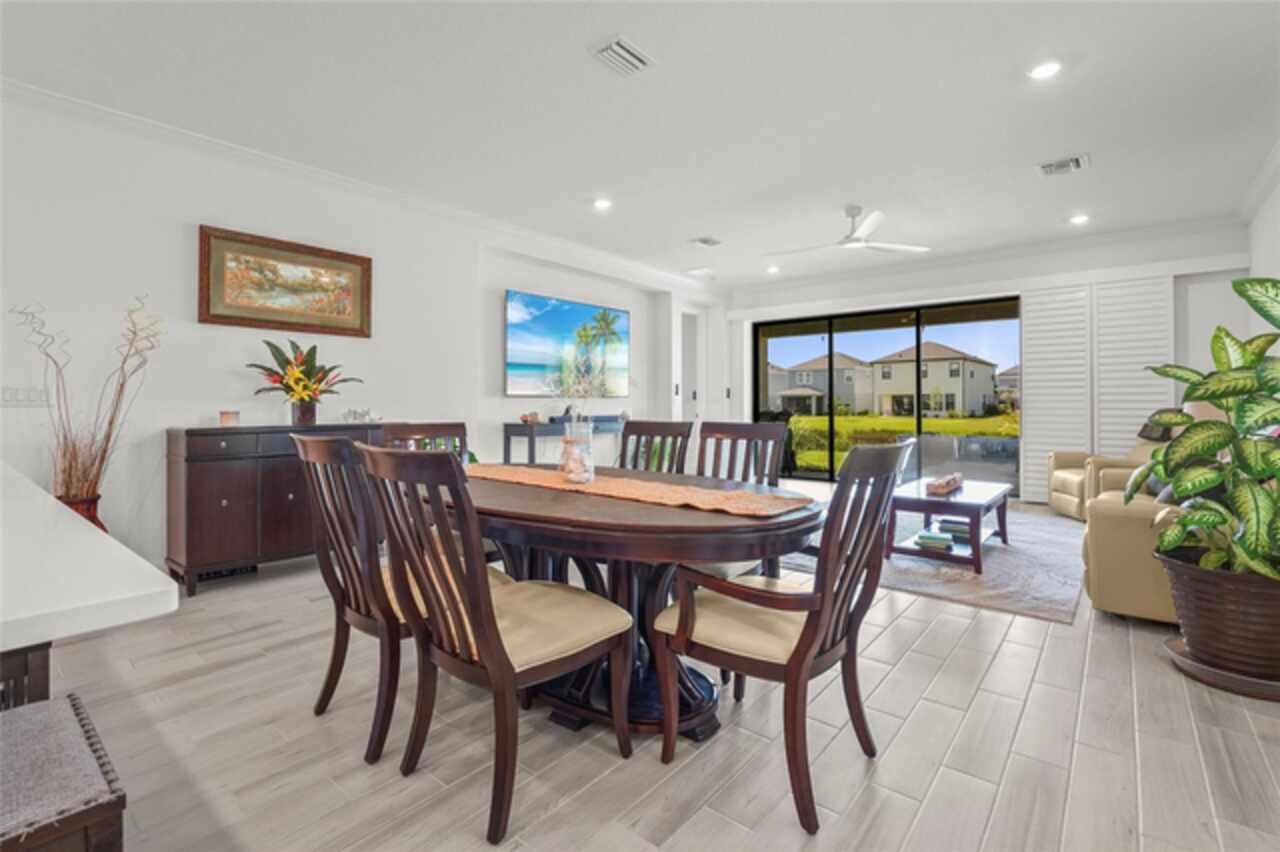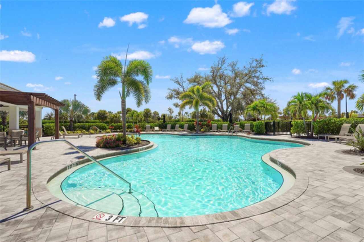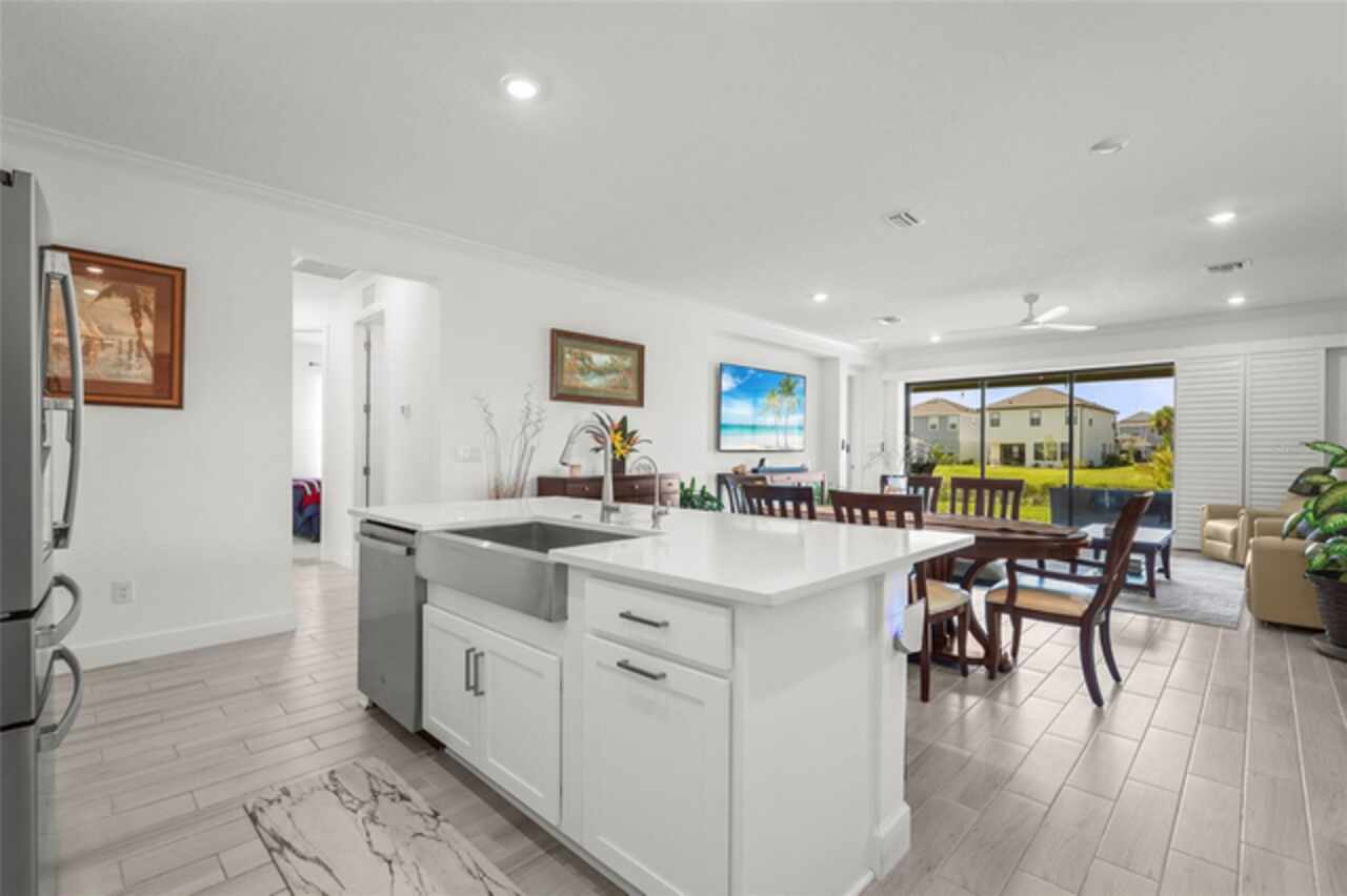 Discover this exquisite 2024 Taylor Morrison Antigua model masterpiece, where contemporary elegance meets thoughtful design in the prestigious Palmero Community. This stunning four-bedroom, three-bathroom home spans approximately 2, 411 square feet of meticulously crafted living space, showcasing the builder's renowned attention to detail and superior construction quality. Step inside to find sophisticated wood-grained tile flooring flowing seamlessly throughout the main living areas, creating an effortless transition between the open-concept kitchen, dining, and family spaces. The gourmet kitchen commands attention with premium stainless steel appliances, rich granite countertops, and custom cabinetry complemented by sleek hardware. A generous center island provides additional workspace and casual dining, while pendant lighting creates ambient warmth throughout the culinary haven. Sumptuous carpeting graces each bedroom sanctuary, where crown molding adds architectural distinction and carefully selected lighting fixtures illuminate these private retreats. The primary owner's suite serves as a luxurious haven, offering serene backyard vistas and an indulgent en-suite bathroom featuring an oversized soaking tub, expansive glass-enclosed shower with rainfall fixtures, dual vanities with elegant mirrors, and a generous walk-in closet with built-in organization systems. Three additional bedrooms showcase thoughtful design elements including recessed lighting and ample natural light, while two full guest bathrooms feature contemporary finishes and designer fixtures. The thoughtfully designed flex room awaits your personal touch – transform it into a distinguished home office with built-in shelving, cozy den with architectural details, or intimate library where literary adventures unfold. However, the true jewel lies outdoors beneath the covered lanai, where breathtaking pond views and professionally curated landscaping create an atmosphere of tranquil sophistication. The Palmero community elevates lifestyle with exceptional amenities including a heated pool, basketball court, dedicated dog park, volleyball court, and playground facilities. This exceptional residence represents the pinnacle of modern Florida living.