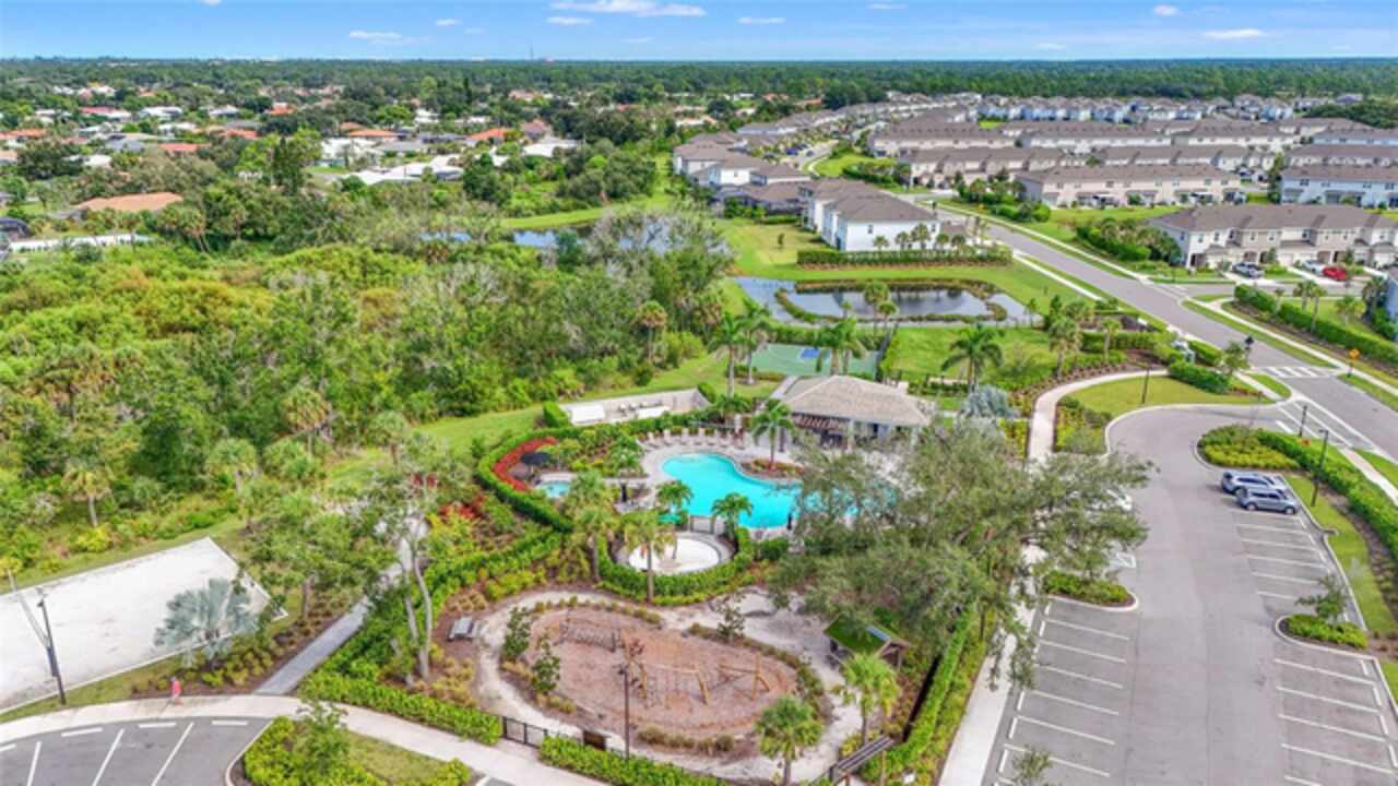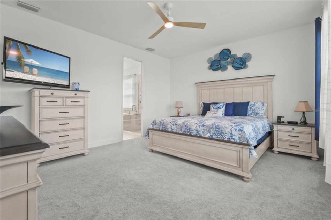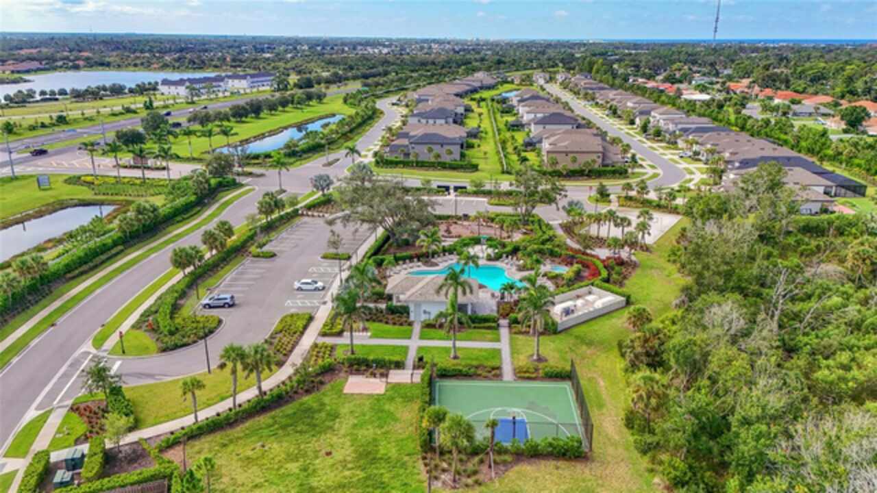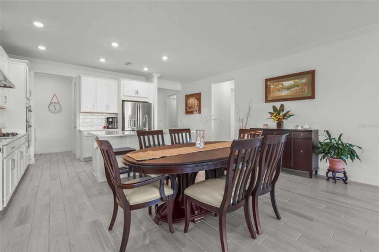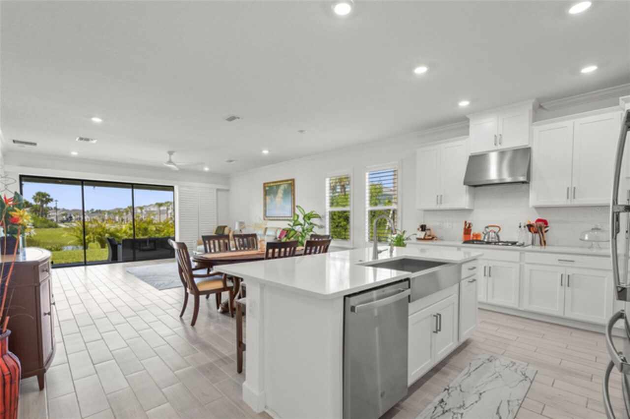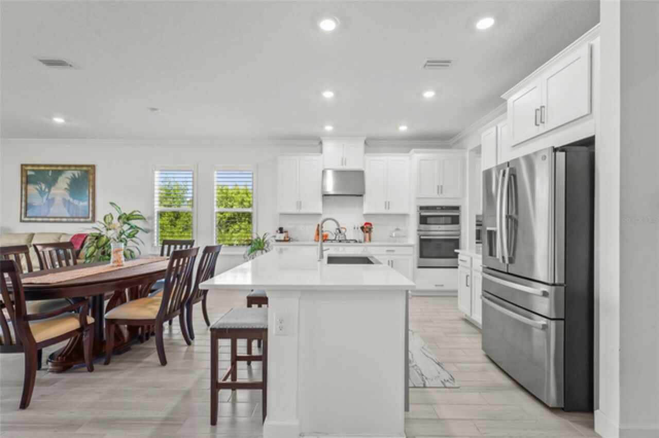 Discover this exquisite 2024 Taylor Morrison Antigua model masterpiece, where contemporary elegance meets thoughtful design in the prestigious Palmero Community. This stunning four-bedroom, three-bathroom home spans approximately 2, 411 square feet of meticulously crafted living space, showcasing the builder's renowned attention to detail and superior construction quality. Step inside to find sophisticated wood-grained tile flooring flowing seamlessly throughout the main living areas, creating an effortless transition between the open-concept kitchen, dining, and family spaces. The gourmet kitchen commands attention with premium stainless steel appliances, rich granite countertops, and custom cabinetry complemented by sleek hardware. A generous center island provides additional workspace and casual dining, while pendant lighting creates ambient warmth throughout the culinary haven. Sumptuous carpeting graces each bedroom sanctuary, where crown molding adds architectural distinction and carefully selected lighting fixtures illuminate these private retreats. The primary owner's suite serves as a luxurious haven, offering serene backyard vistas and an indulgent en-suite bathroom featuring an oversized soaking tub, expansive glass-enclosed shower with rainfall fixtures, dual vanities with elegant mirrors, and a generous walk-in closet with built-in organization systems. Three additional bedrooms showcase thoughtful design elements including recessed lighting and ample natural light, while two full guest bathrooms feature contemporary finishes and designer fixtures. The thoughtfully designed flex room awaits your personal touch – transform it into a distinguished home office with built-in shelving, cozy den with architectural details, or intimate library where literary adventures unfold. However, the true jewel lies outdoors beneath the covered lanai, where breathtaking pond views and professionally curated landscaping create an atmosphere of tranquil sophistication. The Palmero community elevates lifestyle with exceptional amenities including a heated pool, basketball court, dedicated dog park, volleyball court, and playground facilities. This exceptional residence represents the pinnacle of modern Florida living.