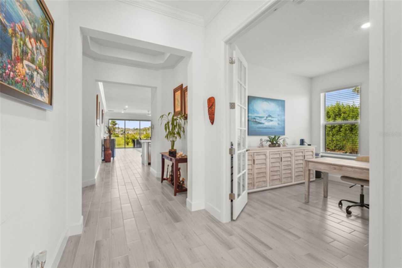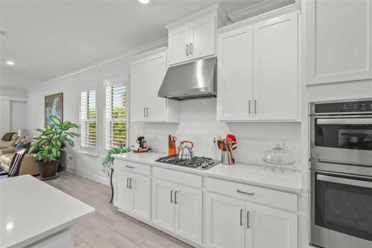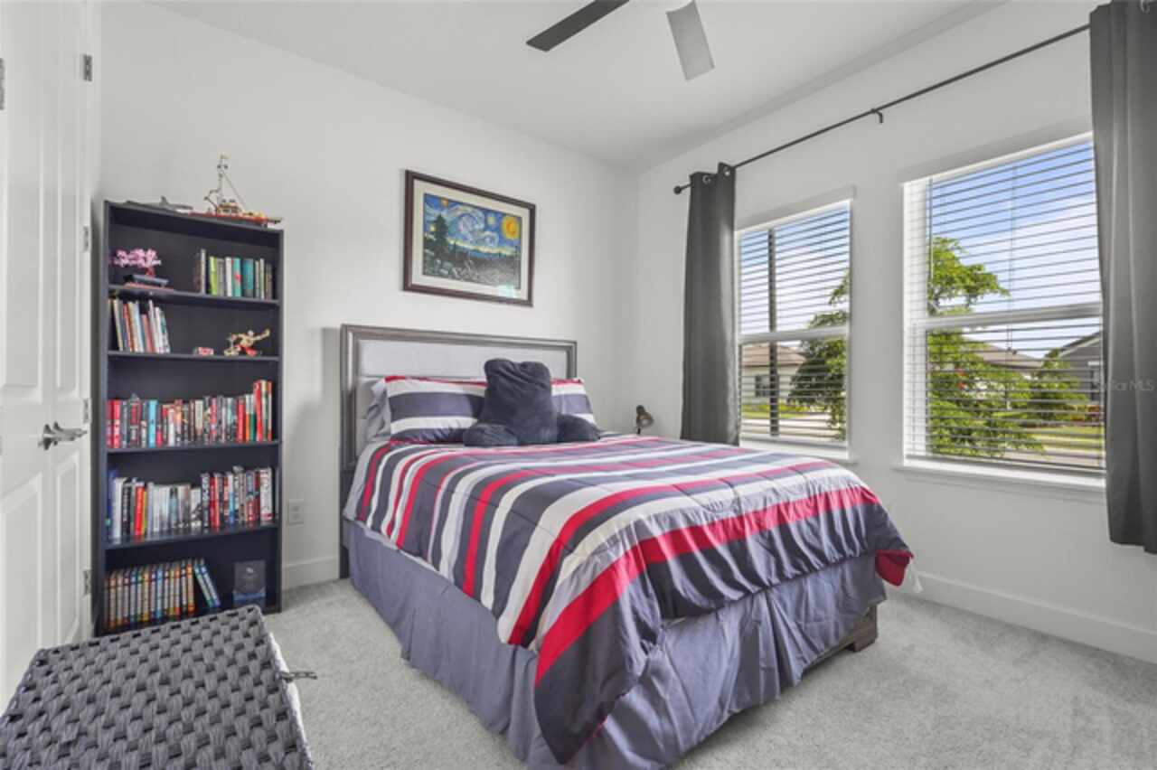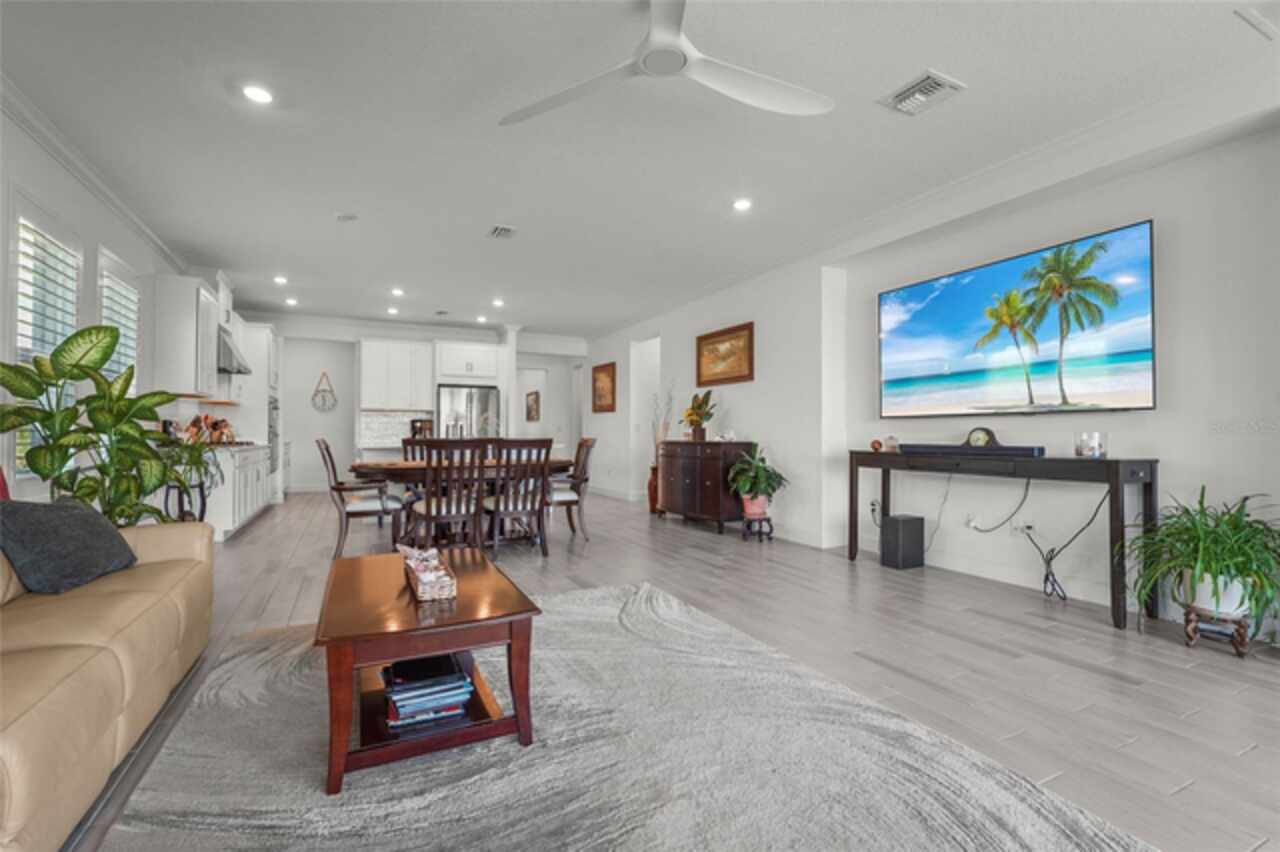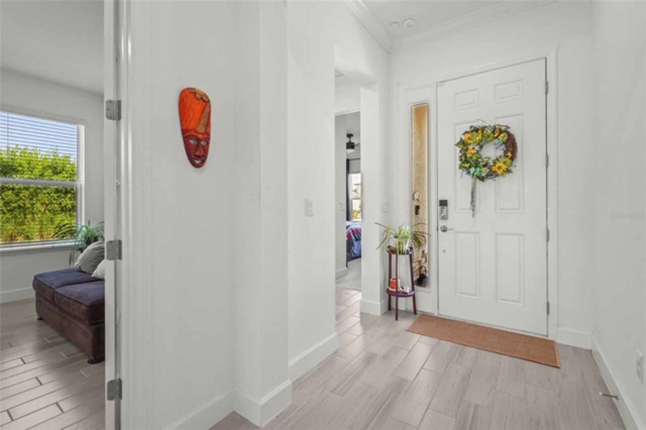 Discover this exquisite 2024 Taylor Morrison Antigua model masterpiece, where contemporary elegance meets thoughtful design in the prestigious Palmero Community. This stunning four-bedroom, three-bathroom home spans approximately 2, 411 square feet of meticulously crafted living space, showcasing the builder's renowned attention to detail and superior construction quality. Step inside to find sophisticated wood-grained tile flooring flowing seamlessly throughout the main living areas, creating an effortless transition between the open-concept kitchen, dining, and family spaces. The gourmet kitchen commands attention with premium stainless steel appliances, rich granite countertops, and custom cabinetry complemented by sleek hardware. A generous center island provides additional workspace and casual dining, while pendant lighting creates ambient warmth throughout the culinary haven. Sumptuous carpeting graces each bedroom sanctuary, where crown molding adds architectural distinction and carefully selected lighting fixtures illuminate these private retreats. The primary owner's suite serves as a luxurious haven, offering serene backyard vistas and an indulgent en-suite bathroom featuring an oversized soaking tub, expansive glass-enclosed shower with rainfall fixtures, dual vanities with elegant mirrors, and a generous walk-in closet with built-in organization systems. Three additional bedrooms showcase thoughtful design elements including recessed lighting and ample natural light, while two full guest bathrooms feature contemporary finishes and designer fixtures. The thoughtfully designed flex room awaits your personal touch – transform it into a distinguished home office with built-in shelving, cozy den with architectural details, or intimate library where literary adventures unfold. However, the true jewel lies outdoors beneath the covered lanai, where breathtaking pond views and professionally curated landscaping create an atmosphere of tranquil sophistication. The Palmero community elevates lifestyle with exceptional amenities including a heated pool, basketball court, dedicated dog park, volleyball court, and playground facilities. This exceptional residence represents the pinnacle of modern Florida living.