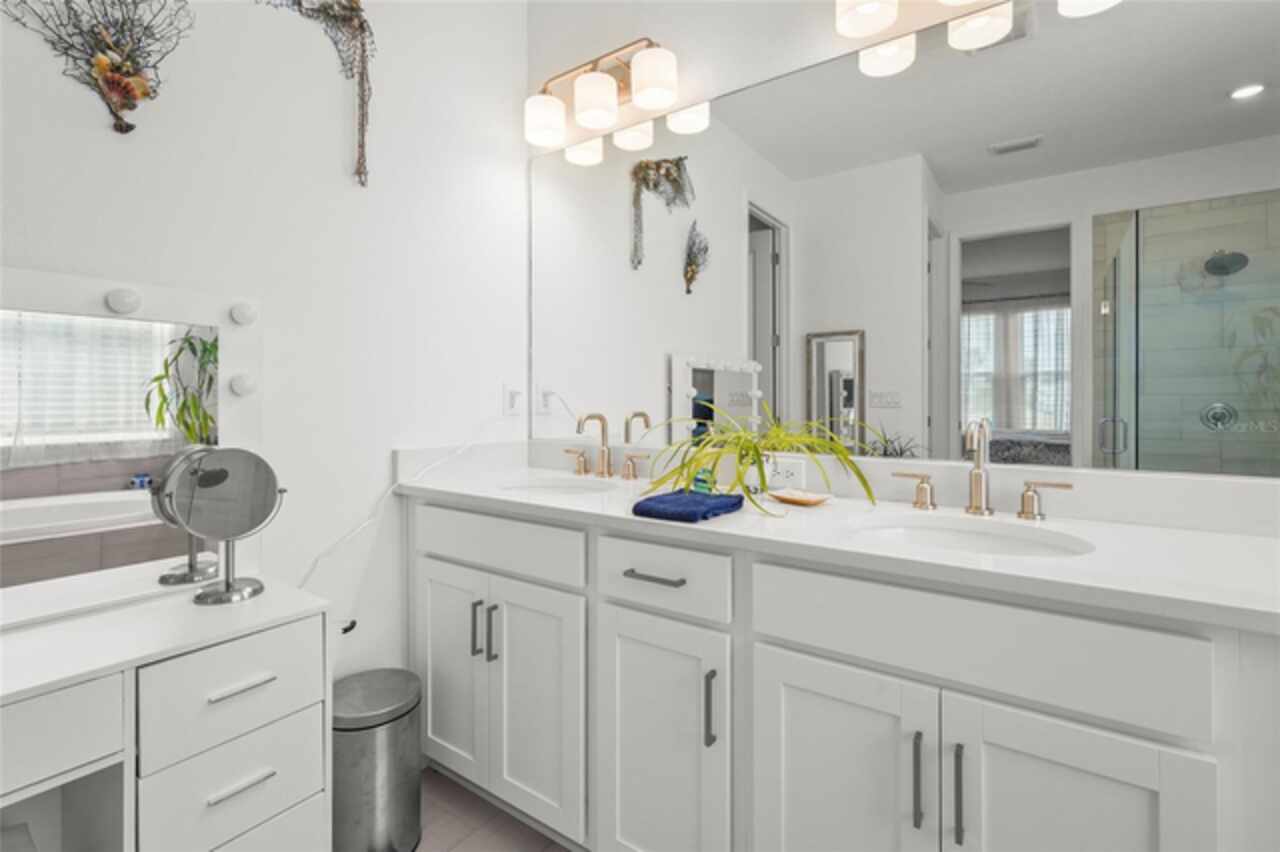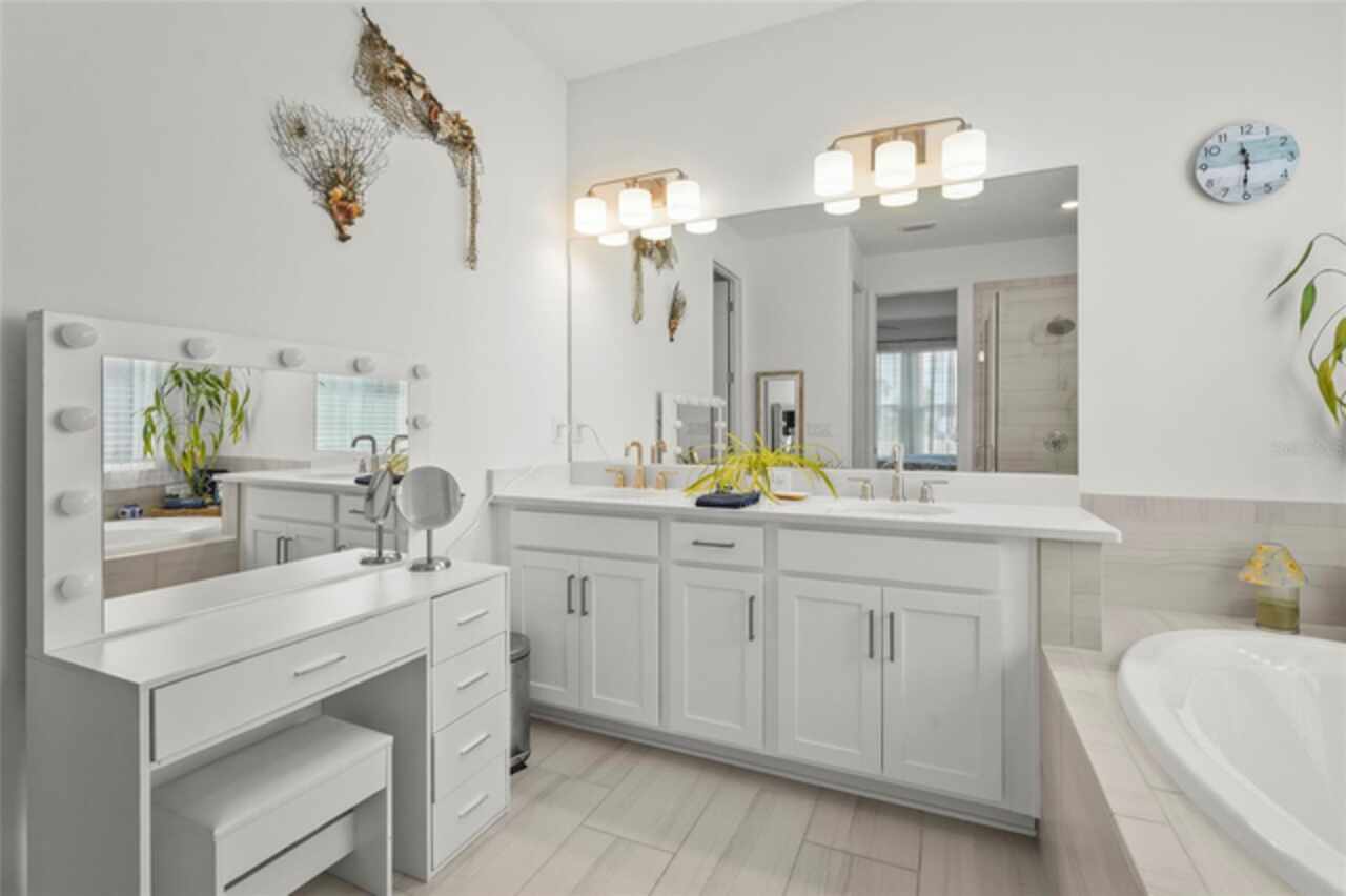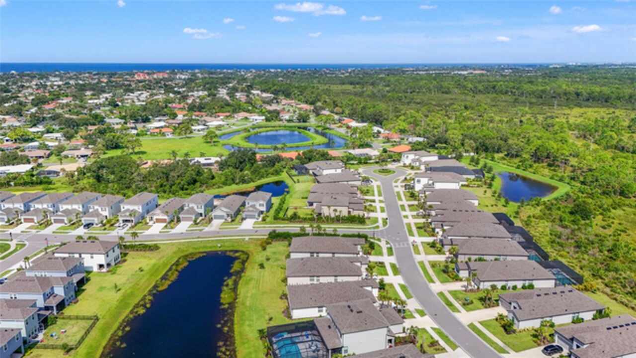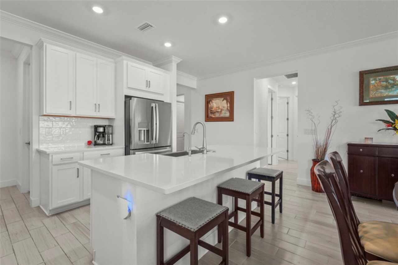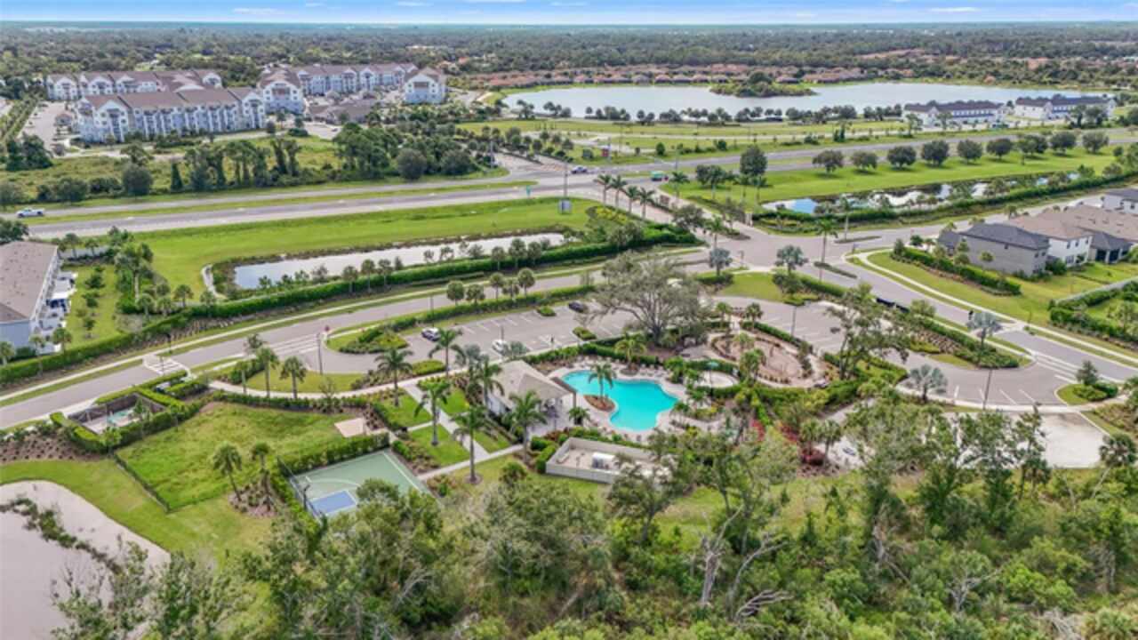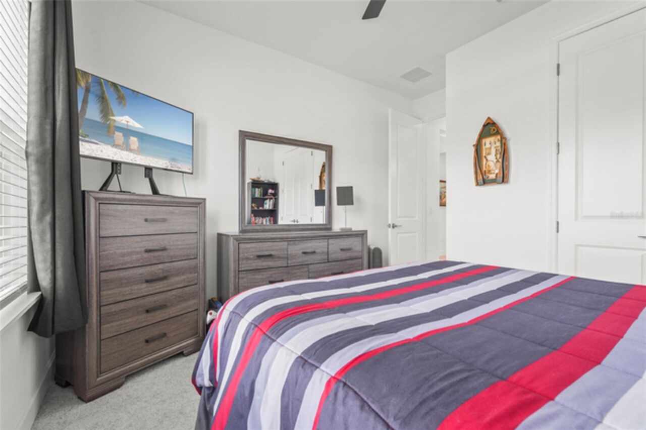 Discover this exquisite 2024 Taylor Morrison Antigua model masterpiece, where contemporary elegance meets thoughtful design in the prestigious Palmero Community. This stunning four-bedroom, three-bathroom home spans approximately 2, 411 square feet of meticulously crafted living space, showcasing the builder's renowned attention to detail and superior construction quality. Step inside to find sophisticated wood-grained tile flooring flowing seamlessly throughout the main living areas, creating an effortless transition between the open-concept kitchen, dining, and family spaces. The gourmet kitchen commands attention with premium stainless steel appliances, rich granite countertops, and custom cabinetry complemented by sleek hardware. A generous center island provides additional workspace and casual dining, while pendant lighting creates ambient warmth throughout the culinary haven. Sumptuous carpeting graces each bedroom sanctuary, where crown molding adds architectural distinction and carefully selected lighting fixtures illuminate these private retreats. The primary owner's suite serves as a luxurious haven, offering serene backyard vistas and an indulgent en-suite bathroom featuring an oversized soaking tub, expansive glass-enclosed shower with rainfall fixtures, dual vanities with elegant mirrors, and a generous walk-in closet with built-in organization systems. Three additional bedrooms showcase thoughtful design elements including recessed lighting and ample natural light, while two full guest bathrooms feature contemporary finishes and designer fixtures. The thoughtfully designed flex room awaits your personal touch – transform it into a distinguished home office with built-in shelving, cozy den with architectural details, or intimate library where literary adventures unfold. However, the true jewel lies outdoors beneath the covered lanai, where breathtaking pond views and professionally curated landscaping create an atmosphere of tranquil sophistication. The Palmero community elevates lifestyle with exceptional amenities including a heated pool, basketball court, dedicated dog park, volleyball court, and playground facilities. This exceptional residence represents the pinnacle of modern Florida living.