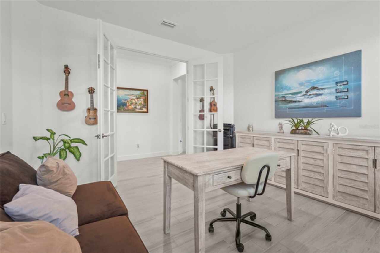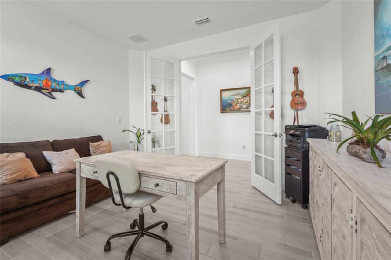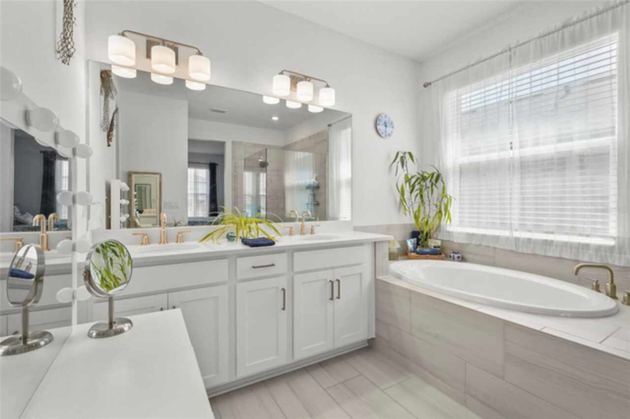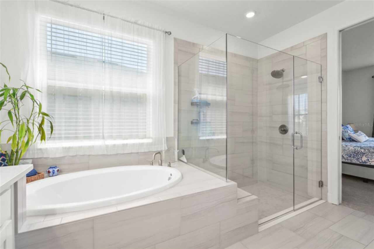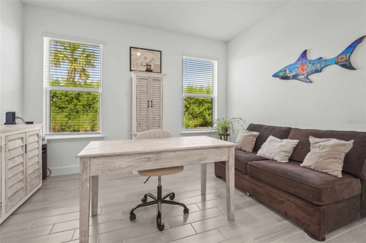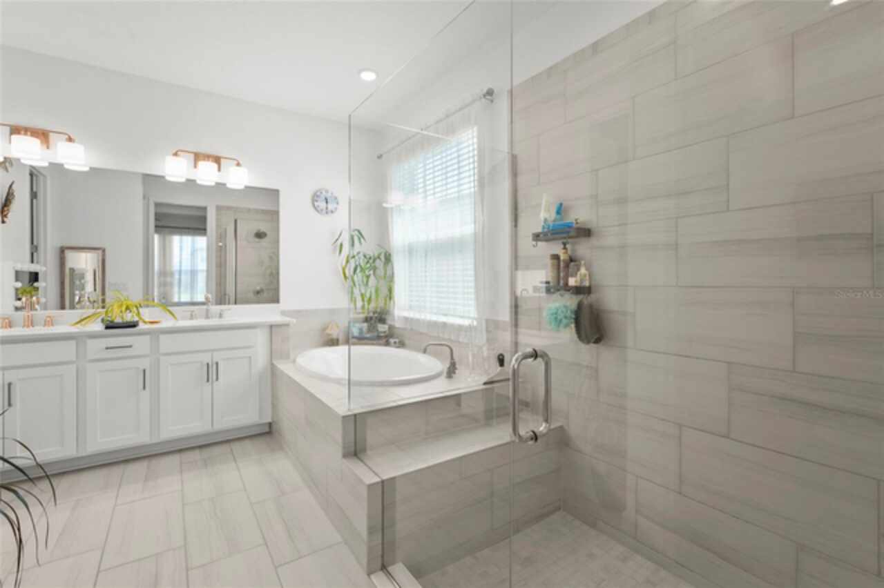 Discover this exquisite 2024 Taylor Morrison Antigua model masterpiece, where contemporary elegance meets thoughtful design in the prestigious Palmero Community. This stunning four-bedroom, three-bathroom home spans approximately 2, 411 square feet of meticulously crafted living space, showcasing the builder's renowned attention to detail and superior construction quality. Step inside to find sophisticated wood-grained tile flooring flowing seamlessly throughout the main living areas, creating an effortless transition between the open-concept kitchen, dining, and family spaces. The gourmet kitchen commands attention with premium stainless steel appliances, rich granite countertops, and custom cabinetry complemented by sleek hardware. A generous center island provides additional workspace and casual dining, while pendant lighting creates ambient warmth throughout the culinary haven. Sumptuous carpeting graces each bedroom sanctuary, where crown molding adds architectural distinction and carefully selected lighting fixtures illuminate these private retreats. The primary owner's suite serves as a luxurious haven, offering serene backyard vistas and an indulgent en-suite bathroom featuring an oversized soaking tub, expansive glass-enclosed shower with rainfall fixtures, dual vanities with elegant mirrors, and a generous walk-in closet with built-in organization systems. Three additional bedrooms showcase thoughtful design elements including recessed lighting and ample natural light, while two full guest bathrooms feature contemporary finishes and designer fixtures. The thoughtfully designed flex room awaits your personal touch – transform it into a distinguished home office with built-in shelving, cozy den with architectural details, or intimate library where literary adventures unfold. However, the true jewel lies outdoors beneath the covered lanai, where breathtaking pond views and professionally curated landscaping create an atmosphere of tranquil sophistication. The Palmero community elevates lifestyle with exceptional amenities including a heated pool, basketball court, dedicated dog park, volleyball court, and playground facilities. This exceptional residence represents the pinnacle of modern Florida living.