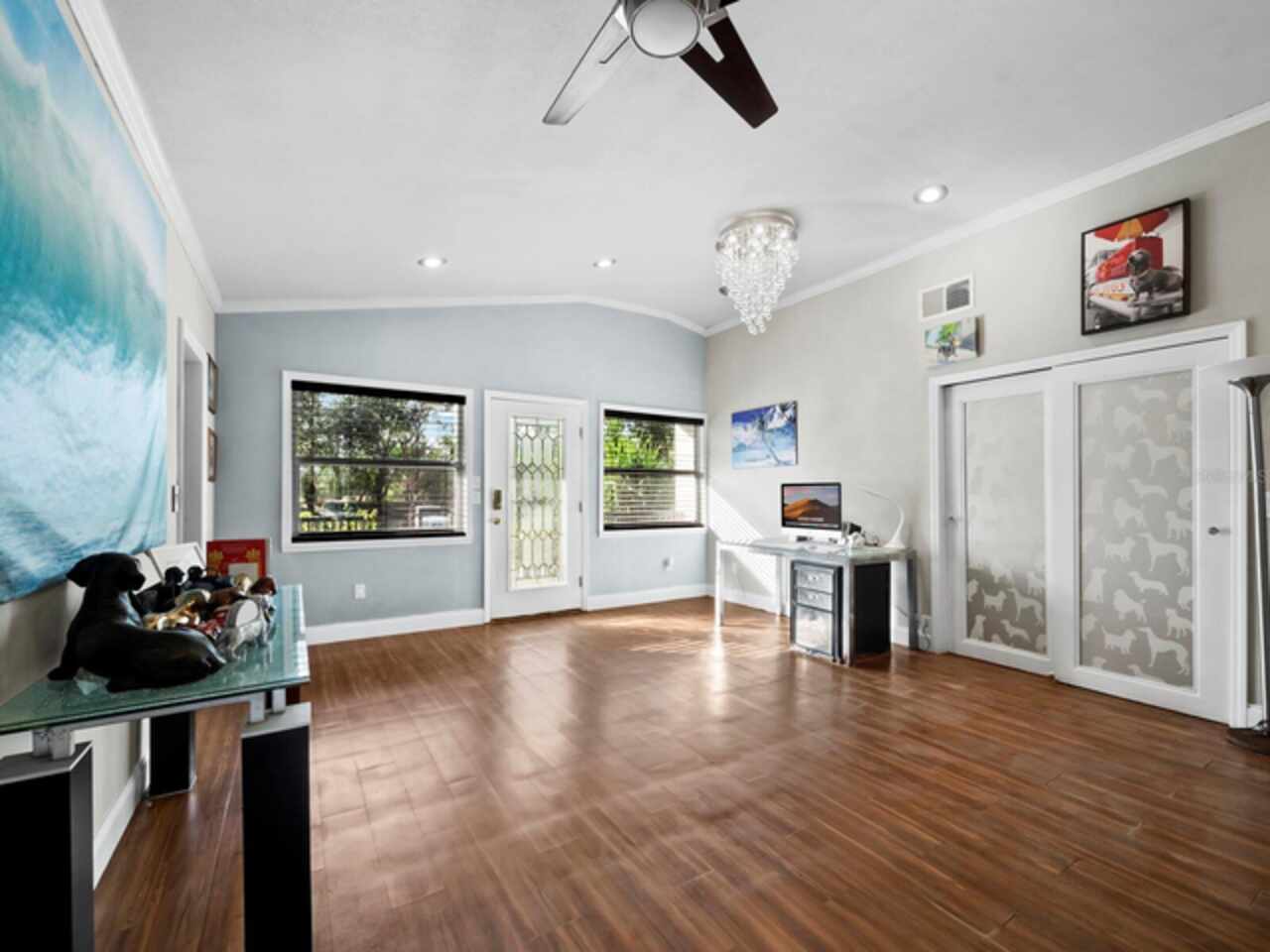 Private compound on almost 5 acres with main house, guest house & 5000 SF outbuilding creates a serene oasis tucked at the end of a quiet country lane. This charming, established neighborhood is conveniently located and very HORSE FRIENDLY! The main house (3 Bed/2.1 Bath) & guest house (2 Bed/1.1 Bath) are updated. The 5000 SF kennel building features a thriving Pet Resort business! All buildings have new/newer roofs & windows! Feels far away, yet so close to Siesta Key beaches and vibrant downtown Sarasota. Tons of updates throughout the property. The main house features a modern kitchen and bath updates with a new roof in 2023. The open floor plan and soaring ceilings perfectly frame the lovely views of the L-shaped pond. Thoughtfully designed, this home offers ample storage with a large pantry and separate laundry room with half bath. The large decks provide expansive views of the pond and garden area. The guesthouse, situated well away from the main home, was nicely renovated in 2020. The two-bedroom, one-and-a-half-bath cottage with vaulted ceiling and open floor plan feels and lives much larger than its 1, 500 square feet. The living room sliders opening to a walled patio/garden space create a private, serene retreat. The freestanding kennel building, measuring about 5, 000 square feet, includes reception and grooming areas, plus a half bath. The kennel includes 30 dog runs, nine cat rooms and three isolation areas for flexible accommodations. The proximity to population centers and easy highway access offers so much potential for pet boarding, doggie daycare, professional dog trainers or show handlers. This well-maintained property is truly an unexpected find and a rare opportunity that blends privacy and convenience. If you've been searching for a family compound, home-based business, dog property or horse property, schedule your private tour today. Check out the tour links, and don't miss the drone tour in link 2! More photos available upon request.