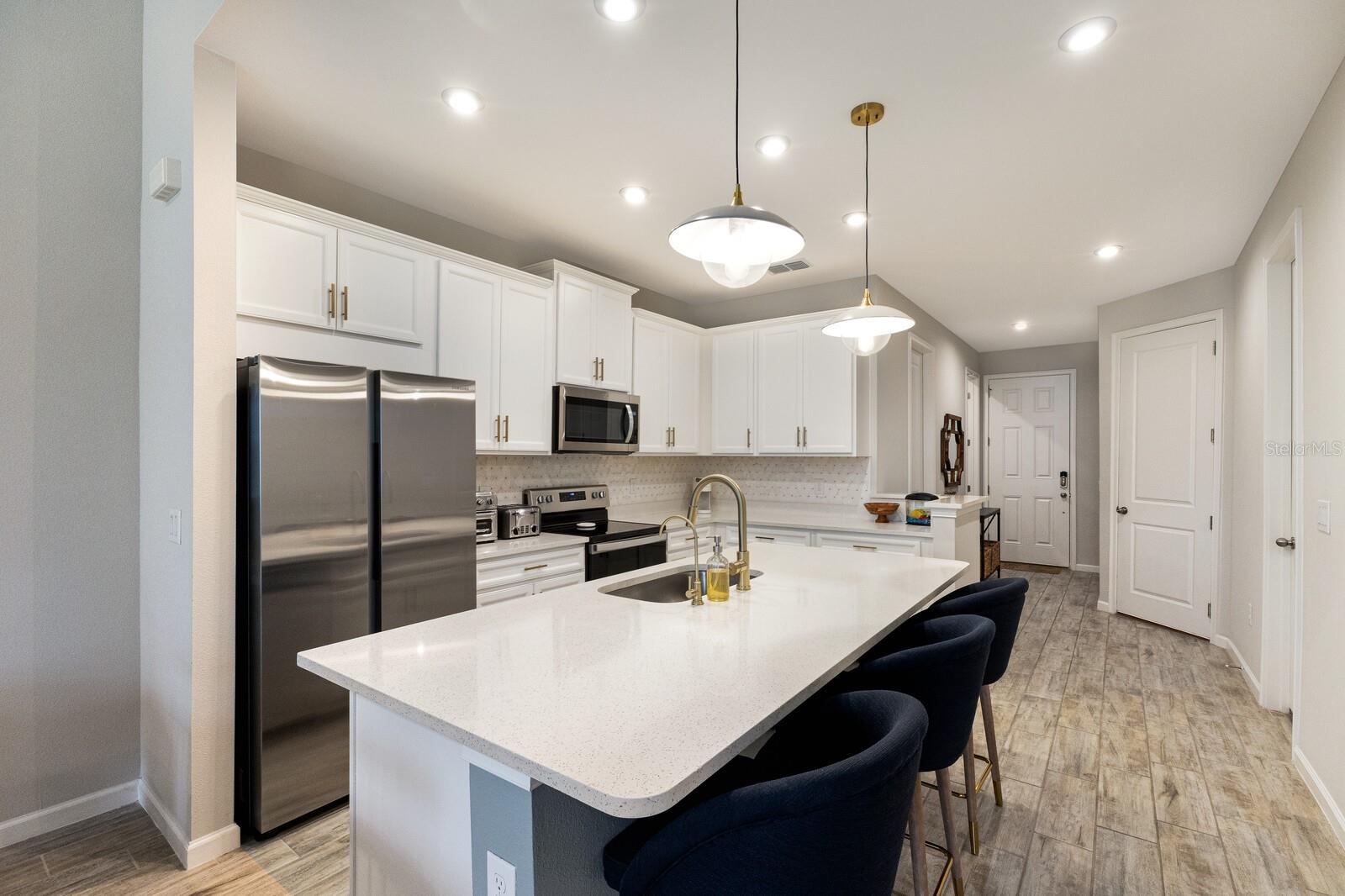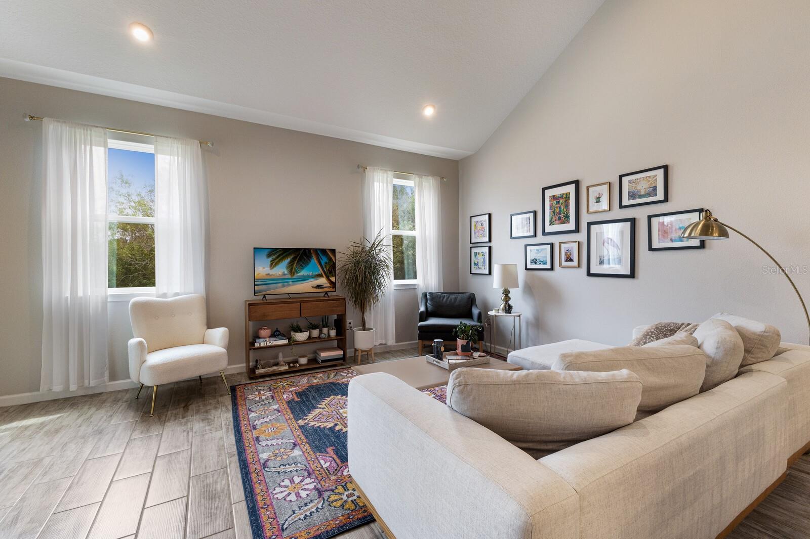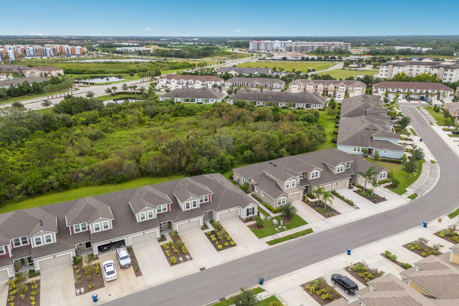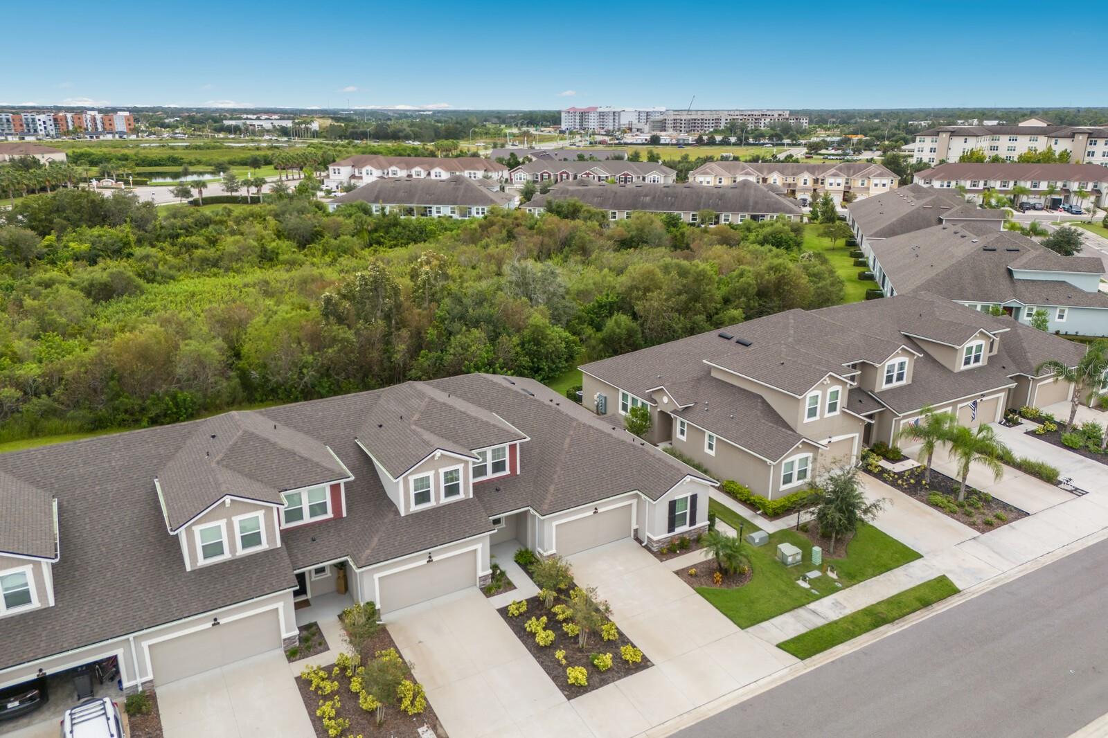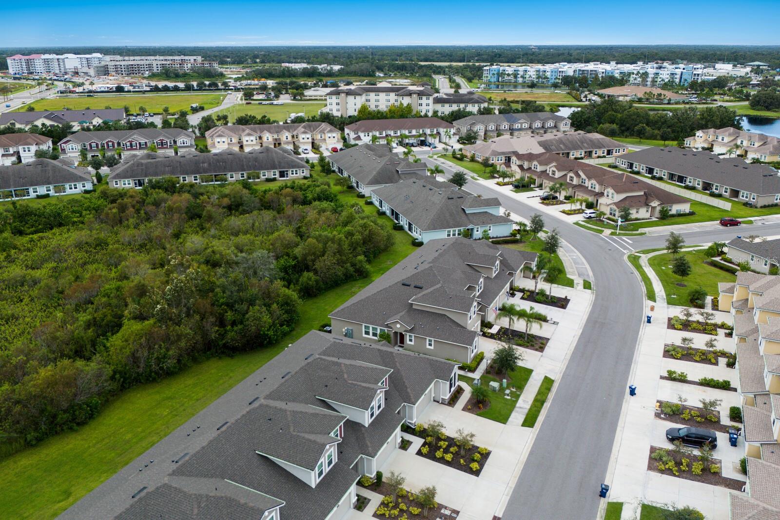 Under contract-accepting backup offers. Effortless, low-maintenance living in the heart of Lakewood Ranch. Discover the ease of townhome ownership with this spacious 3-bedroom, 2.5-bath 2022-built home in Harmony at Lakewood Ranch—offering affordable HOA fees that cover exterior maintenance, roofing, and landscaping, so you can spend more time enjoying life and less time worrying about upkeep. A first-floor primary suite, screened lanai with wooded views, and modern finishes inside and out make this home as functional as it is stylish. Located in one of the nation’s premier master-planned communities, you’ll have access to year-round social events, top-rated schools, weekend farmers markets, golf carts and food trucks, as well as award-winning Gulf beaches just 35 minutes away. Welcome to The Sandbar II by Mattamy Homes, where soaring vaulted ceilings up to 15' set the tone for the open-concept main level, finished with wood-look tile, 8' interior doors, and crisp quartz surfaces. The kitchen pairs 42" cabinetry with gold hardware, a stylish tile backsplash, stainless steel appliances, and generous prep space—a chic hub for everyday meals or casual entertaining. A convenient half bath serves guests, while the first-floor primary suite offers restful privacy with an expansive walk-in closet and a polished ensuite featuring quartz dual vanities and a glass-enclosed tiled shower. Upstairs, two secondary bedrooms share a full bath, and a versatile loft is ready for a home office, play space, or cozy media nook. Step outside to the screened-in patio overlooking open green space and private woods—your peaceful backdrop for morning coffee or sunset unwinding. This home also comes equipped with hurricane shutters, a reverse osmosis system in the kitchen, and a Taexx built-in pest control system for added comfort and peace of mind. Harmony’s resort-style amenities include a heated pool with outdoor grilling and dining areas, a fitness center, and a playground, all surrounded by walking paths and green spaces. Beyond the community gates, the Lakewood Ranch lifestyle shines with endless opportunities to connect and explore—from Main Street’s live music nights, restaurants, boutiques, and rooftop bars to Waterside Place, home to weekly lakeside yoga, farmer’s markets, food truck rallies, and kayak launches. Golf enthusiasts and outdoor lovers will appreciate nearby championship courses, pickleball courts, and over 150 miles of mixed-use trails linking parks, dog parks, and scenic lakes. Everyday convenience is around the corner at The Greens at Lakewood Ranch with essentials like The Fresh Market, Starbucks, Publix, Sirius Day Spa, and popular salons, while UTC’s premier shopping and dining district and LECOM are just minutes away. World-renowned beaches including Siesta Key, Lido Key, and Anna Maria Island are close enough for spontaneous day trips. Low-maintenance, high-style, and perfectly placed—schedule your showing today.