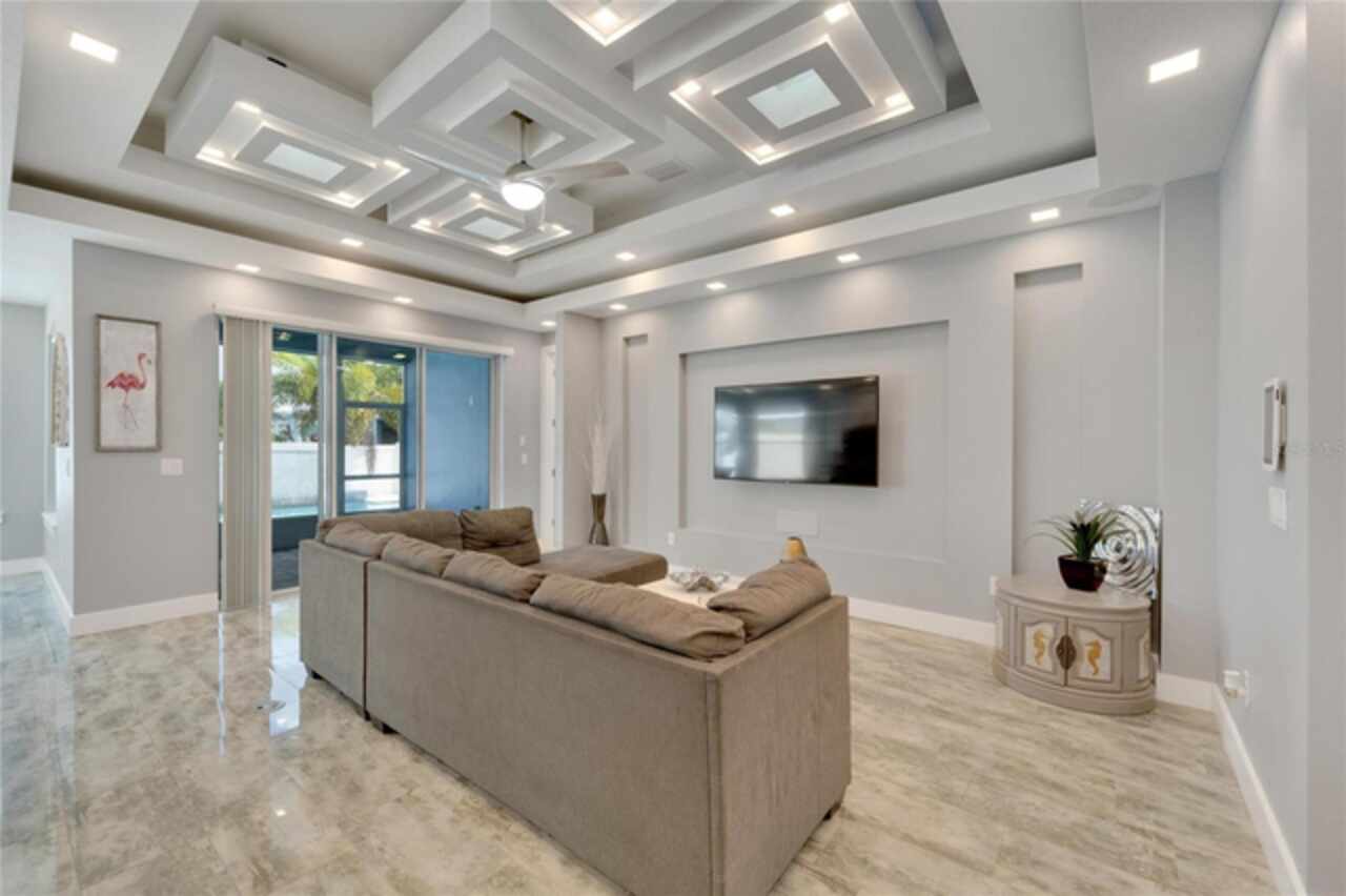 567 Bimini Bay Blvd – Custom Pool Home in Gated Bimini Bay Welcome to this one-of-a-kind, custom-built Apollo Beach pool home in the exclusive gated community of Bimini Bay. Built in 2019 with 2, 140 sq. ft. of living space, this 4-bedroom, 3-bath home offers modern upgrades, smart features, and a prime location. From the moment you arrive, the pavered driveway and tropical landscaping set the tone for coastal Florida living. Step inside through the glass-etched front door into a warm and inviting foyer. The open living space features imported tile flooring throughout, tray ceilings, and custom lighting, seamlessly connecting the kitchen, living room, and outdoor space. The kitchen is both functional and stylish, featuring quartz countertops, stainless steel appliances, a gas stove, deep farm sink, and a dual-level island for extra seating. A walk-in pantry, dual-pigmented cabinetry, and detailed backsplash provide ample storage and a sleek design. The sunny dining area, filled with natural light, overlooks the backyard and is accented by a modern chandelier. The primary suite is a private retreat with direct lanai access, a large walk-in closet, and an ensuite bath featuring a soaking tub, oversized shower, dual sinks, and upgraded finishes. The secondary baths also been updated with modern fixtures. Designed for indoor-outdoor living, the screened lanai is the perfect space to relax. The heated pool with multiple water features, a spa, and lush landscaping create a private backyard escape. The fully fenced yard offers privacy, while the home’s smart features include custom interior adjustable lighting, a full-home security system, and smart climate control. Additional upgrades include a central vacuum system, epoxy garage floors, and a gas water heater. Located just off Apollo Beach Boulevard, this home is minutes from Apollo Beach, the Manatee Viewing Center, and waterfront dining. The community offers private walking paths, a neighborhood pool, and a great coastal vibe. With no CDD fees, Bimini Bay is directly across from a highly rated elementary school. A rare opportunity to own a truly unique home in one of Apollo Beach’s most desirable communities. Schedule your showing today!