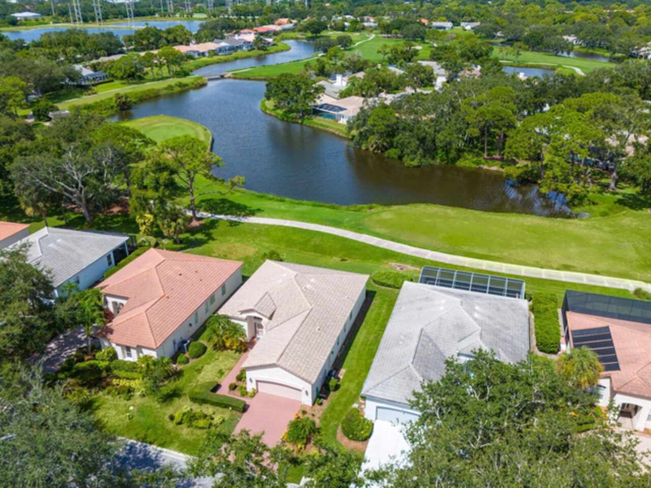 Stunning sunsets and carefree living in this maintenance-free home in The Meadows, a park-like oasis in one of Sarasota’s best locations. A canopied street, stamped-concrete driveway and tropical landscaping create a warm welcome. Inside, high ceilings, abundant natural light and an open layout set the stage for everyday comfort and cheerful living. At the heart of the home, the kitchen features white cabinetry, Steel Grey granite countertops, stainless steel appliances and a casual dinette. Relax daily in the Florida room or on the outdoor patio, ideal for quiet mornings enjoying golf and pond views, and evenings spent watching spectacular sunsets. All just 250 feet to the heated community pool and minutes to all the fun amenities The Meadows has to offer. The Meadows, a 1, 600 park-like oasis in a prime location, is a resort lifestyle community 15 minutes from downtown. Residents enjoy 14 miles of trails, fun activities, fitness center, Junior Olympic pool, 10 pickleball courts plus, pay-to-play at a top-notch tennis complex and three golf courses. You’ll live near award-winning beaches, remarkable arts and culture, and just five minutes from Nathan Benderson Park, Mote SEA Aquarium, Whole Foods, Trader Joe’s and The Mall at University Town Center, a world-class shopping, entertainment and dining destination. A fabulous Florida lifestyle awaits! 2021 air-conditioning system, 2015 tile roof and above flood plain in flood zone X.