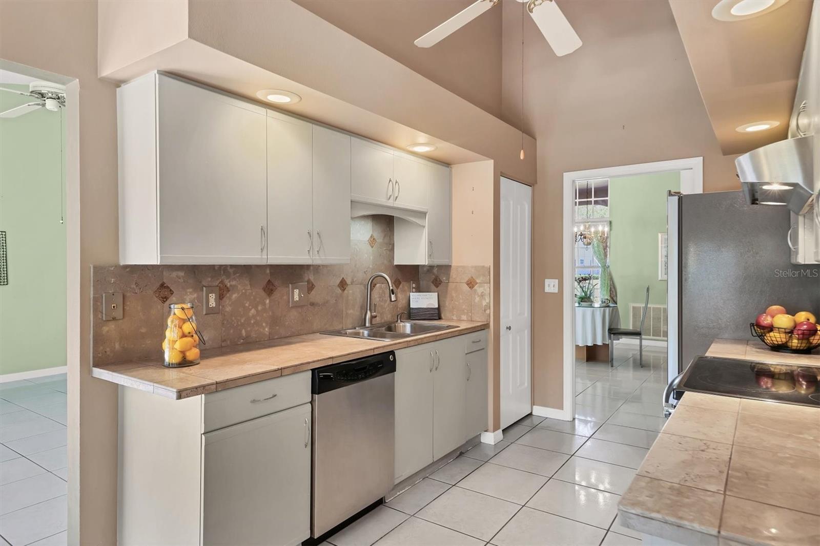 Ceiling Fans(s), Eat-in Kitchen, High Ceilings, Primary Bedroom Main Floor, Solid Surface Counters, Split Bedroom, Thermostat, Walk-In Closet(s)