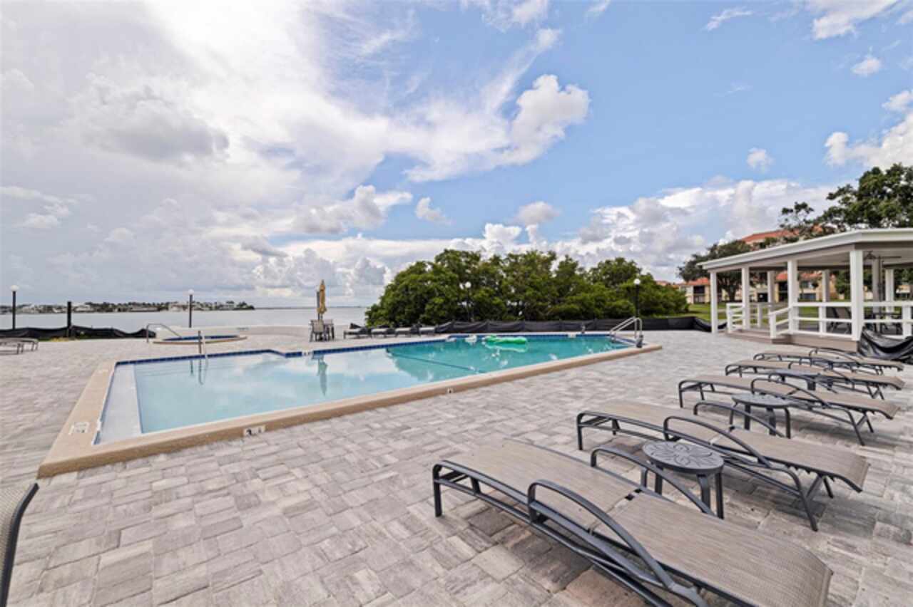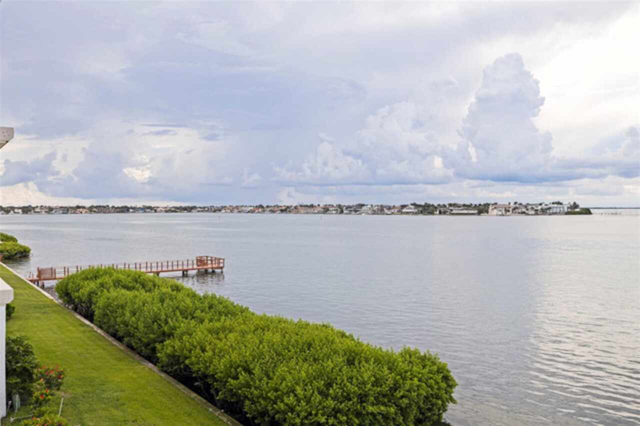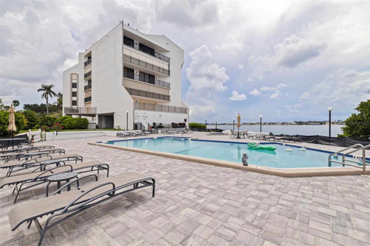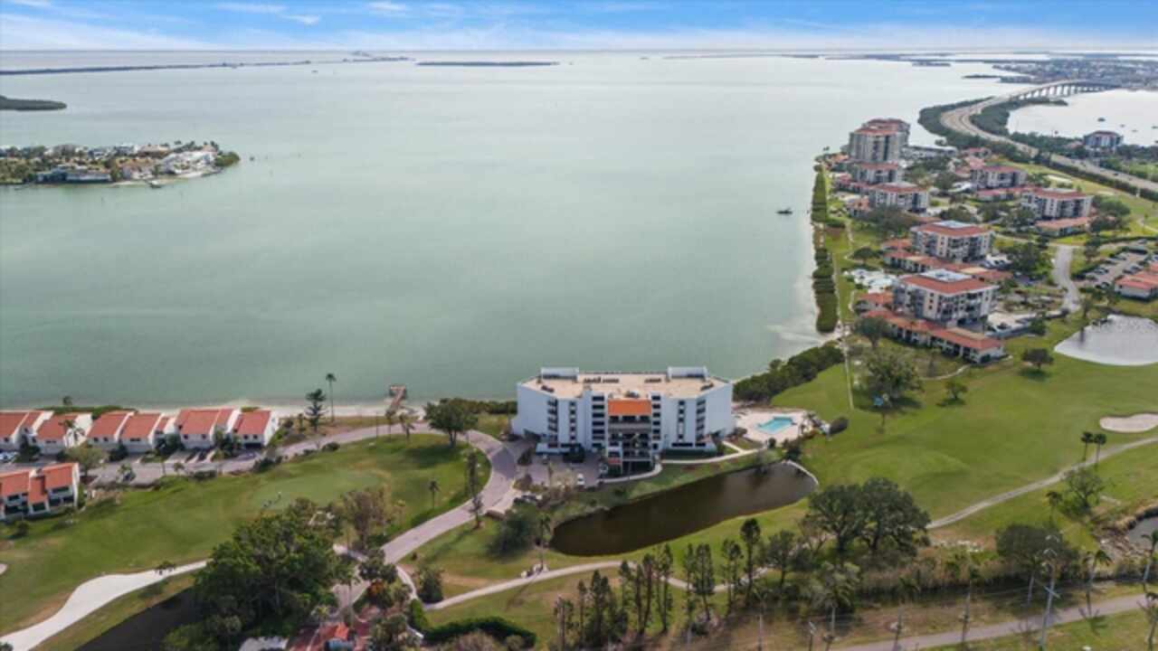 UNOBSTRUCTED VIEWS OF TAMPA BAY & THE SKYWAY BRIDGE from every room in this 3rd-floor 2BR/2BA condo in Vista de Oro at Playa Escondida, Isla del Sol’s premier waterfront community! From the moment you open the door, you are greeted with breathtaking panoramic vistas, a natural sanctuary with daily dolphins and manatee sightings. Spacious kitchen with eat-in area—spotless yet retro—ideal for a modern remodel. Pass-through window could easily open to a breakfast bar or island. Expansive living/dining area opens to a rare wraparound balcony spanning both bedrooms, perfect for entertaining. The split floor plan provides privacy with the primary suite featuring oversized walk-in closet, spacious original separate vanities, generous walk-in shower, and sweeping Tampa Bay views directly from your bed. Guest suite includes dual closets, full bath, and another wall to wall sliding door with balcony access. Laundry closet is conveniently located by the kitchen, new water heater, HVAC (2023). Assigned under-building covered parking plus guest parking. The community features resort-style amenities: new waterside pool with hot tub, gazebo, and a dream beach view. Perfect location if you decide to join the Isla Del Sol Yacht and Country Club and their golf course membership. Just 10 min to downtown St. Pete, 30 min to Tampa Int’l, close to Fort De Soto beaches. Quick elevator ride to your own private beach. Rare opportunity to create your dream waterfront home with the best views in Isla del Sol. Located in well maintained building which has completed its reserve study milestone report and all necessary repairs with assessments already paid.