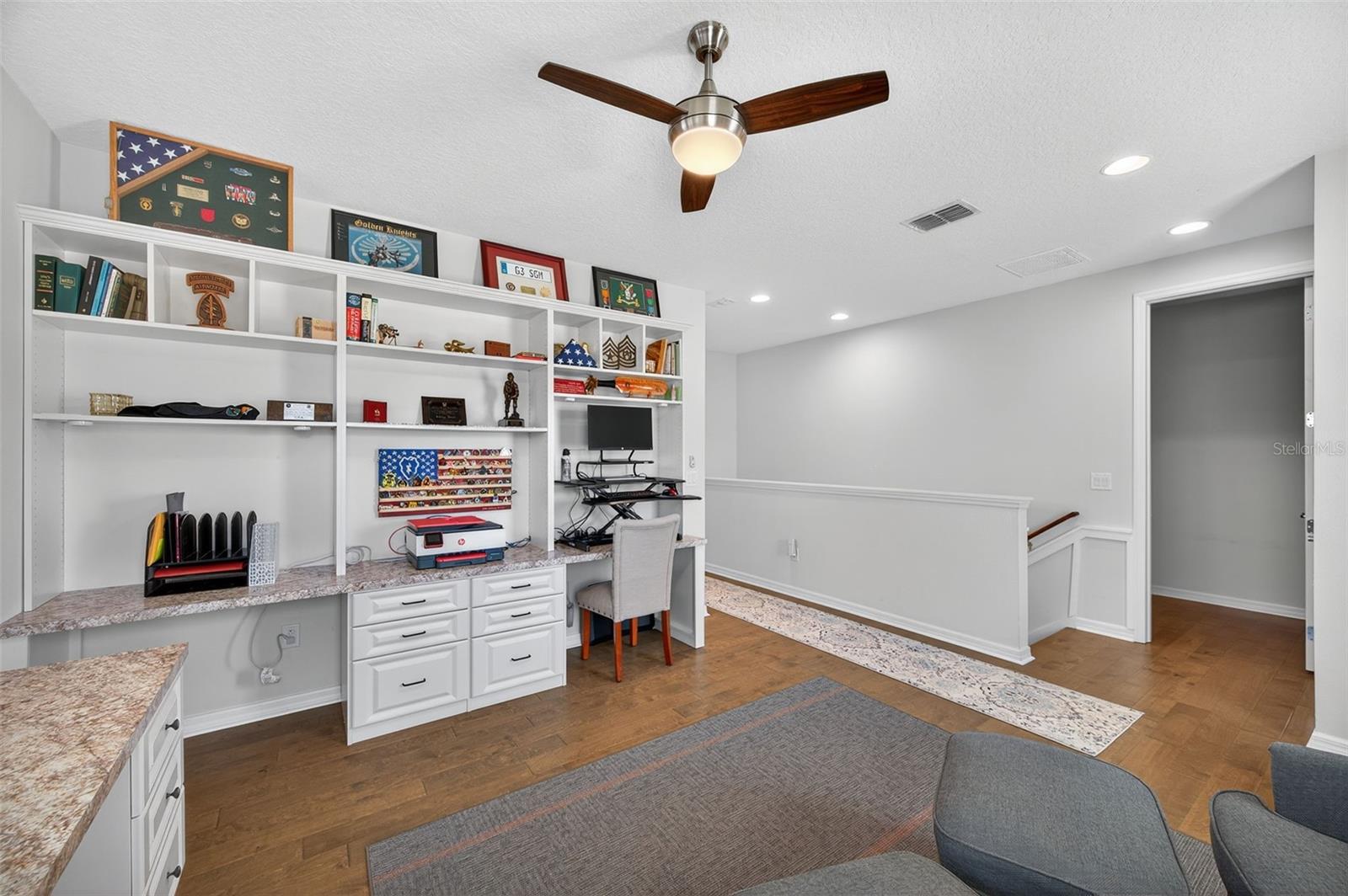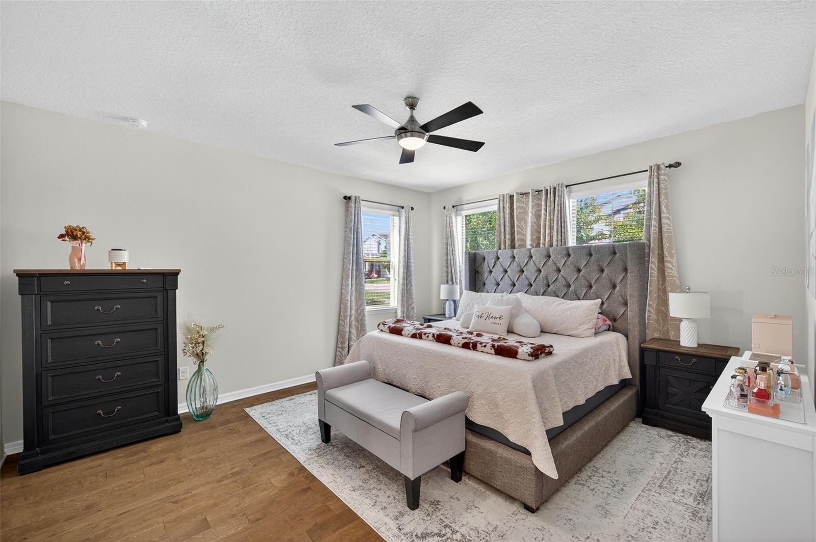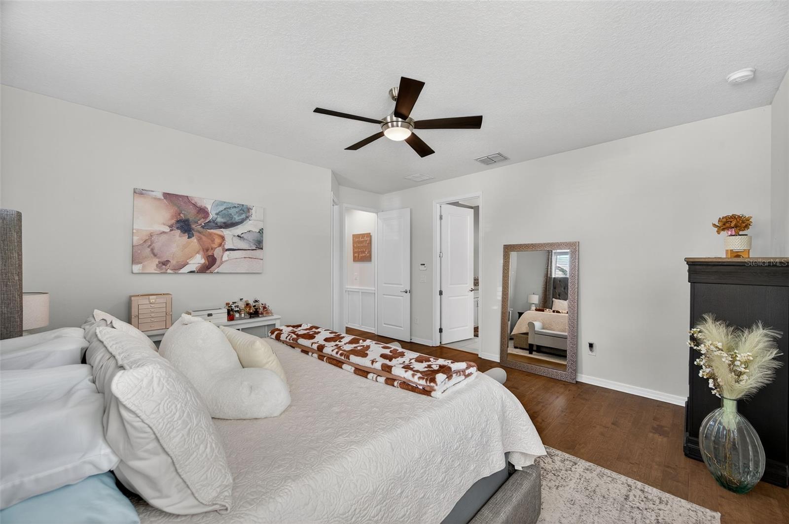 PRICE REDUCED! This beautifully appointed 5-bedroom, 4-bath home in Fishhawk West perfectly blends modern elegance with everyday comfort. The curb appeal impresses immediately, featuring a charming craftsman-style elevation, fresh new exterior paint, lush landscaping, and an inviting front porch accented with upgraded brick for a warm welcome. Upon entry, you’ll notice the meticulous care throughout — upgraded wood flooring throughout and Wainscoting trim walls downstairs, enhance the living spaces. To the left is a versatile office or fifth bedroom, with a full bathroom conveniently located just outside, ideal for guests. On the opposite side, the primary suite offers a spacious retreat large enough for all your furnishings. The en-suite bathroom features two custom-built closets, an oversized walk-in shower, and a private water closet. The large laundry room provides abundant shelving and cabinet space for easy organization. The open floor plan includes a light-filled eat-in kitchen, dining area, and family room — perfect for entertaining. The gourmet kitchen features a breakfast bar that seats four, stainless steel gas appliances, granite countertops, 42” soft-close cabinets with slide-out shelves, soft-close drawers, a designer backsplash, and recessed and pendant lighting. Adjacent to the kitchen, you’ll find a convenient office nook with built-in storage, a desk, and additional counter space — perfect for a coffee bar or homework station. The dining area accommodates a full-size table, while the family room boasts coffered ceilings and triple pocket sliding glass doors that open the entire back wall, extending your living space outdoors. Enjoy Florida living on the screened lanai, complete with an outdoor kitchen featuring a gas grill, burners, and sink. The extended patio overlooks a beautifully landscaped, fully fenced yard designed for privacy and includes a paver walkway. Upstairs, you’ll find a spacious bonus room — currently used as an office with custom built-in shelving. Three generously sized bedrooms easily fit king-size furniture, and all include large closets. Bedrooms 2 and 3 share a full bathroom, while Bedroom 4 enjoys a private en-suite. A 17' x 6' walk-in storage closet adds even more storage convenience. Additional highlights include Closets by Design upgrades, two overhead garage storage units, and a multi-stack home gym system in the garage. Located in one of the area’s top school zones — with top-rated elementary and middle schools right in the neighborhood and zoning for Newsome High School — this home is ideal for families. Community amenities include two resort-style pools, a lake house with pool and ping pong tables, a fitness center with new equipment and tot room, fire pit, dog park, playgrounds, and walking trails. Low maintenance yard with great fenced in side yard for dogs and little ones. Schedule your private showing today and discover the perfect balance of luxury, comfort, and community in Fishhawk West.