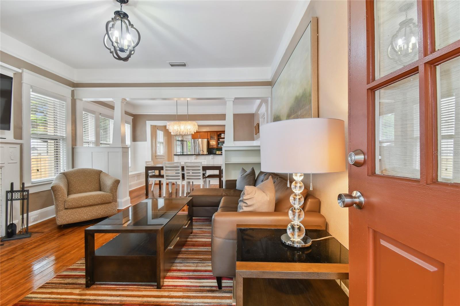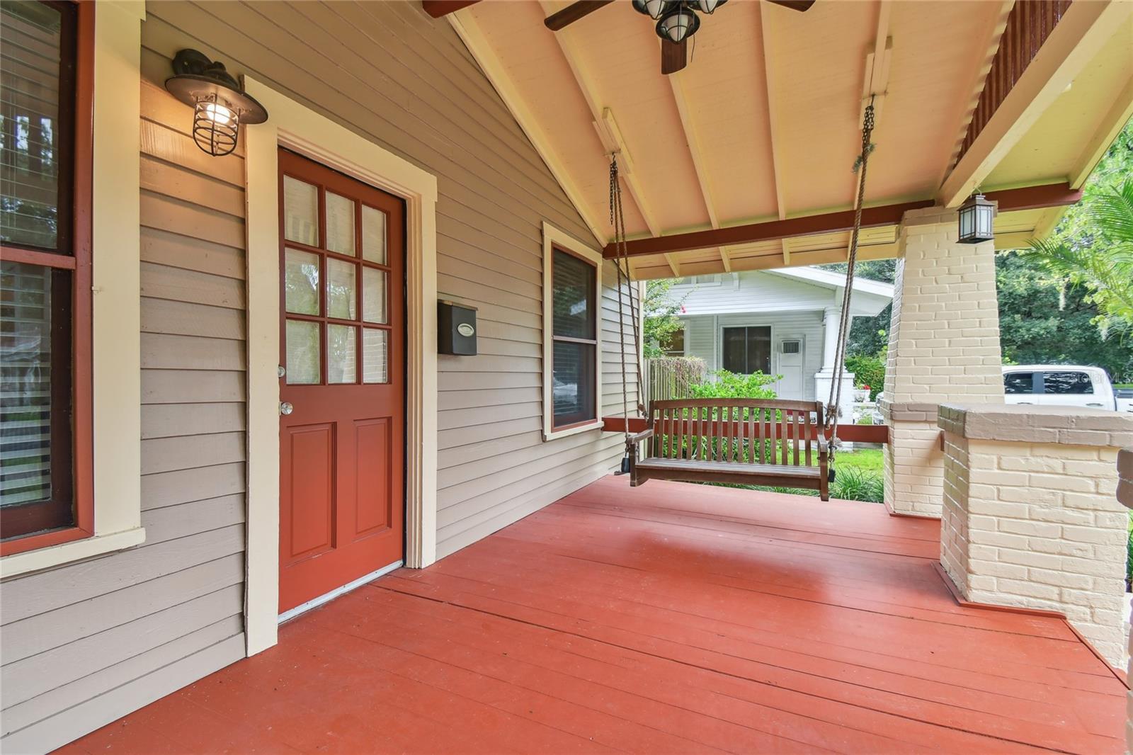 SEMINOLE HEIGHTS BUNGALOW with Detached ADU on a Beautiful Historic Street! This Craftsman-style bungalow with a detached ADU offers the perfect combination of historic charm, modern updates, and investment potential—all in one of Tampa’s most sought-after neighborhoods. The main home spans just over 1, 100 square feet with two bedrooms and two full bathrooms in an efficient, open layout. Classic features include wood floors, crown molding, high ceilings, and a light-filled dining room with built-in window bench and original built-ins separating the dining and living areas. The kitchen, designed for both everyday living and entertaining, boasts stainless steel appliances, solid stone countertops, and seamless flow to the dining and living areas. The spacious primary suite features a private bath with double sinks, stone counters, glass shower, and stylish glass block accents. A full laundry room with washer, dryer, sink, and storage adds convenience, while completed structural improvements and fully paid-for solar panels provide lasting peace of mind. Step outside to a spacious backyard deck, perfect for gatherings, barbecues, or game-day fun. Just beyond, the detached ADU (approx. 495 sq. ft.) is fully self-sufficient with its own kitchen, bedroom, bath, laundry, and off-street parking via alley access. Conveyed fully furnished, it’s move-in ready for guests, extended family, or tenants. Located within a few blocks to Seminole Heights favorites like Trip’s Diner, Mekenita’s, and the General Store, and just ten minutes to Downtown Tampa and twenty minutes to TPA Airport, this home offers the best of historic character, modern convenience, and income-producing potential in one of the city’s hottest neighborhoods. Note: Both the main home and ADU are currently tenant-occupied with leases through May 2026. The ADU conveys furnished, while the main house was leased unfurnished. Pictures of the main home were taken with the owner's furniture prior to lease.