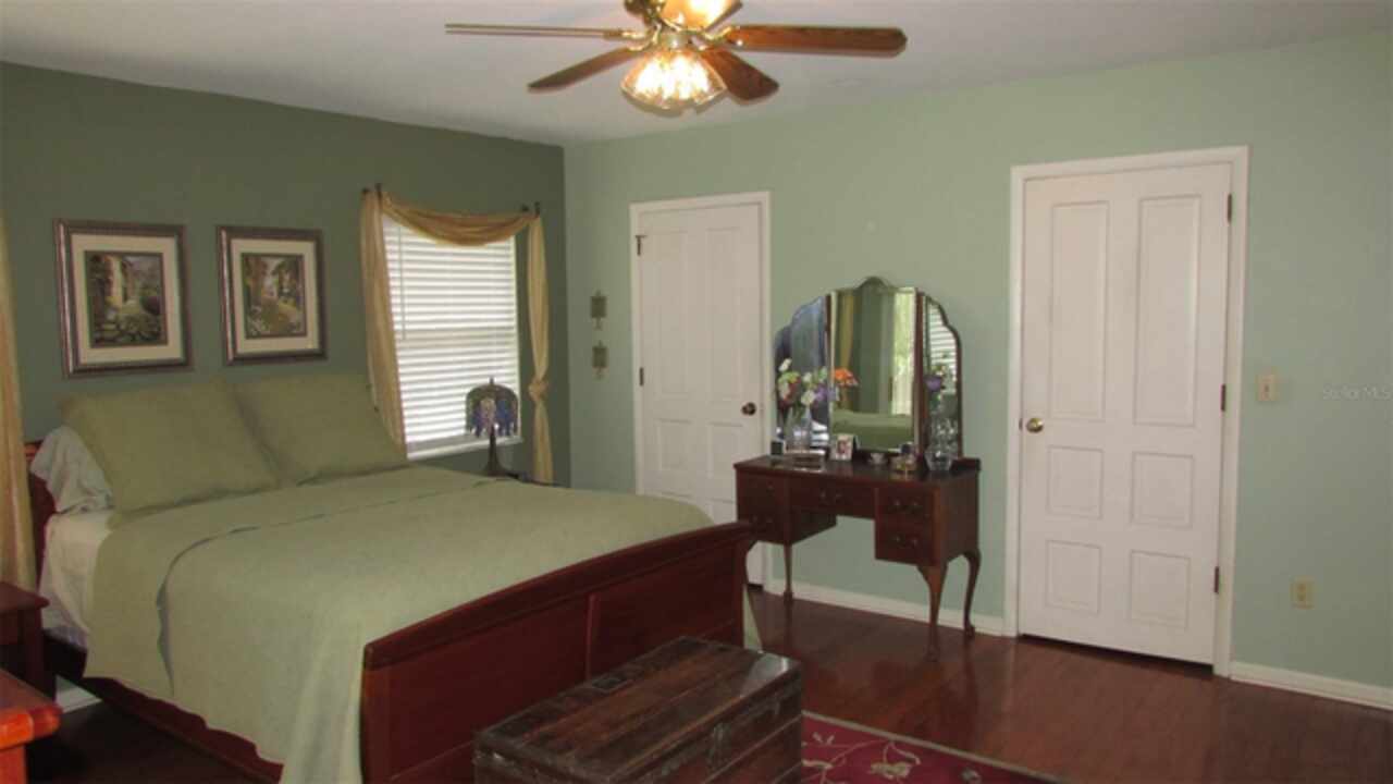 Ceiling Fans(s), Eat-in Kitchen, Kitchen/Family Room Combo, Primary Bedroom Main Floor, Solid Surface Counters, Solid Wood Cabinets, Split Bedroom, Thermostat, Window Treatments