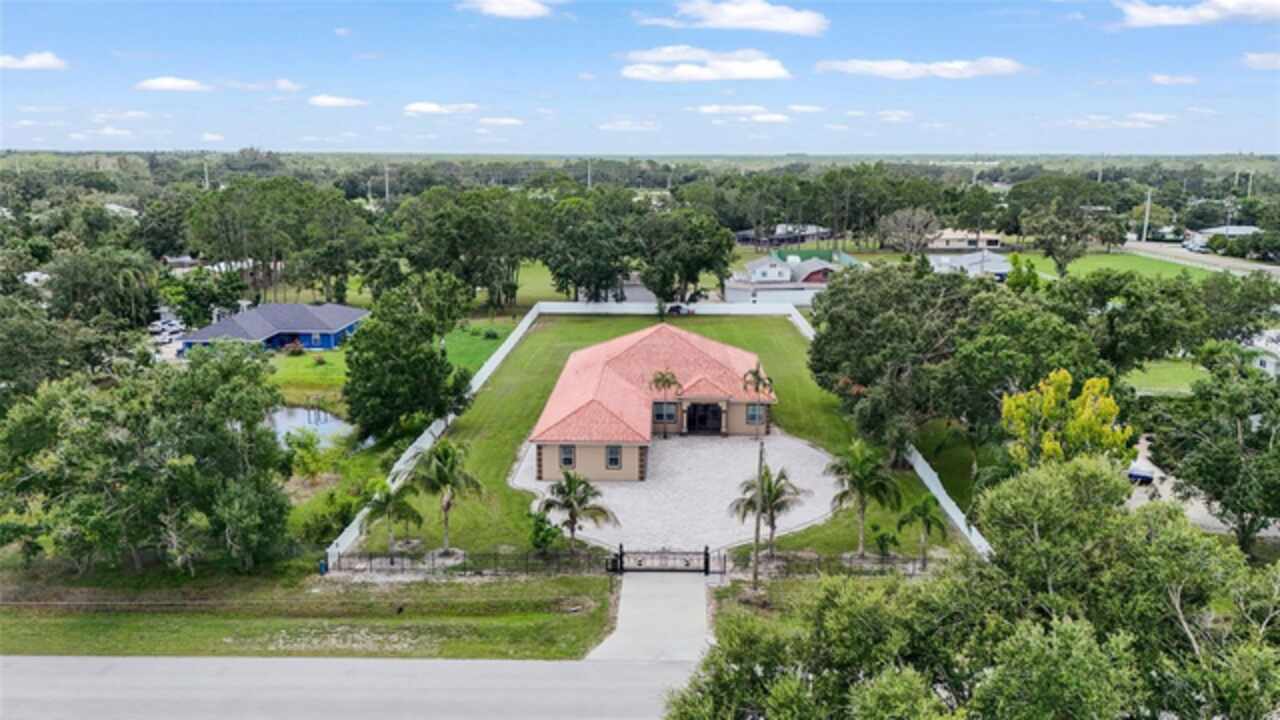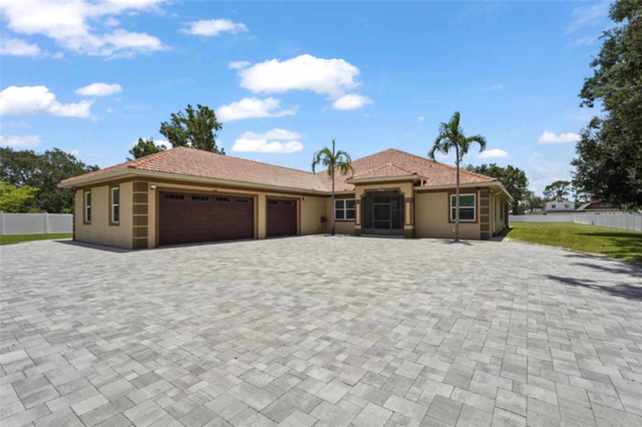 Looking for a NEW custom built home on over a 1 acre lot and 3100sf + with a neighborhood feel but NO HOA, NO CDD, Flood Zone X, Home Office, 3 Car Garage and plenty of room for the TOYS - well we have just the home! Welcome to this exceptionally built modern ranch-style home with private gate, nestled on a level 1-acre lot in the heart of Bradenton. Built in 2021, this home was built to the newest building codes with a high-quality tile roof, masonry construction and stucco exterior for durability and low maintenance. This expansive floor plan boasts 3, 167?sf offering true one-level living with 4 bedrooms, 3.5 baths, a private den or office with separate entryway ideal for families, remote work or multigenerational living!! You will fall in love with the sprawling covered outdoor space adding so much more square footage to your home with bathroom access and ready for your custom outdoor kitchen, this space truly makes indoor outdoor living a dream! This home combines modern comfort with custom finishes, providing a rare opportunity for luxury one-level living including custom woodwork, stunning porcelain tiles throughout, tray ceilings, recessed lighting throughout and so much more! The gourmet kitchen features designer cabinetry, quartz countertops, stunning quartz waterfall island, stainless steel appliances and a large walk-in pantry! The primary suite boasts his and her closets and a gorgeous en-suite! The home offers three additional bedrooms and well-appointed bathrooms for comfort and flexibility. This home has an amazing level 1 Acre Lot and a fenced backyard, a custom paver patio with built in firepit and seating for the whole family to enjoy! Want a pool, there is plenty of space to add yours! Stunning curb appeal is complimented by the remote controlled private gate and wide, paver-lined driveway with ample room for parking! Finally, the home features an attached oversized garage with 3 parking spaces and tons of room for storage! Whether you're hosting indoors or out, working from the den, or enjoying neighborhood conveniences, this property has been designed for both relaxation and everyday function. Conveniently located to premiere restaurants, shopping, stunning beaches, Lakewood Ranch's Main St or I75 Access!