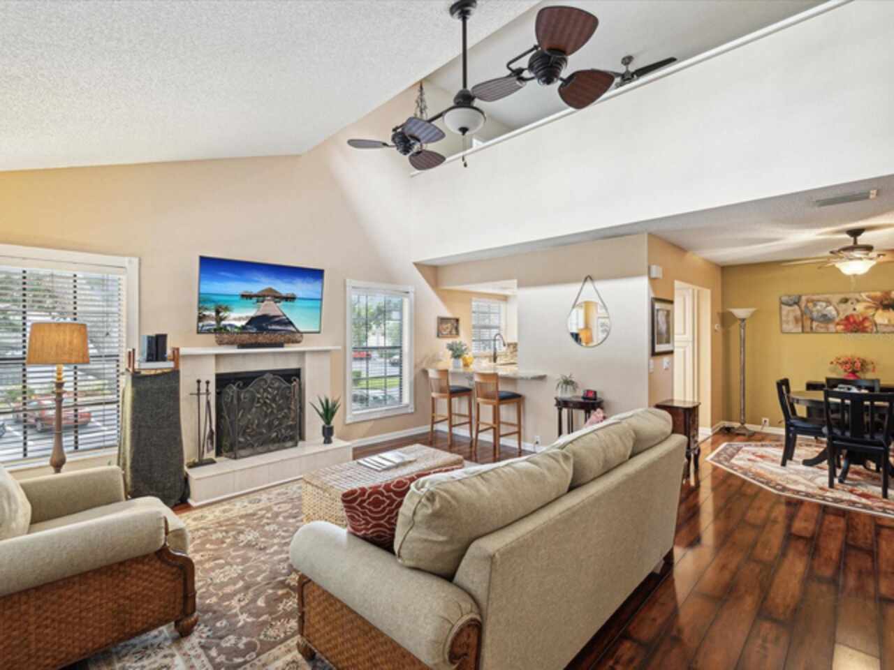 Welcome to Calais Village, where comfort meets convenience in this spacious 2-bedroom, 2-bathroom two-story condo offering over 1, 500 square feet of well-maintained living space. The living room includes a charming wood-burning fireplace—an elegant focal point and a rare feature in Florida homes. The kitchen was updated in 2018 with granite countertops and stainless-steel appliances, and both bathrooms were renovated the same year. The HVAC system was also replaced in 2018. The upstairs loft offers flexible living space and could easily be converted into a 3rd bedroom, as it already includes a walk-in closet. Set in a peaceful community just minutes from I-275, this home offers easy access to downtown St. Petersburg, Tampa International Airport, and the beautiful Gulf beaches. Community amenities include a sparkling pool, basketball and tennis/pickleball courts. The monthly condo fee includes water, sewer, trash, cable, internet, and exterior maintenance, allowing for truly low-maintenance living. A covered parking space is included, and furnishings and household items are available as an option. Discover the perfect blend of space, value, and location at Calais Village!