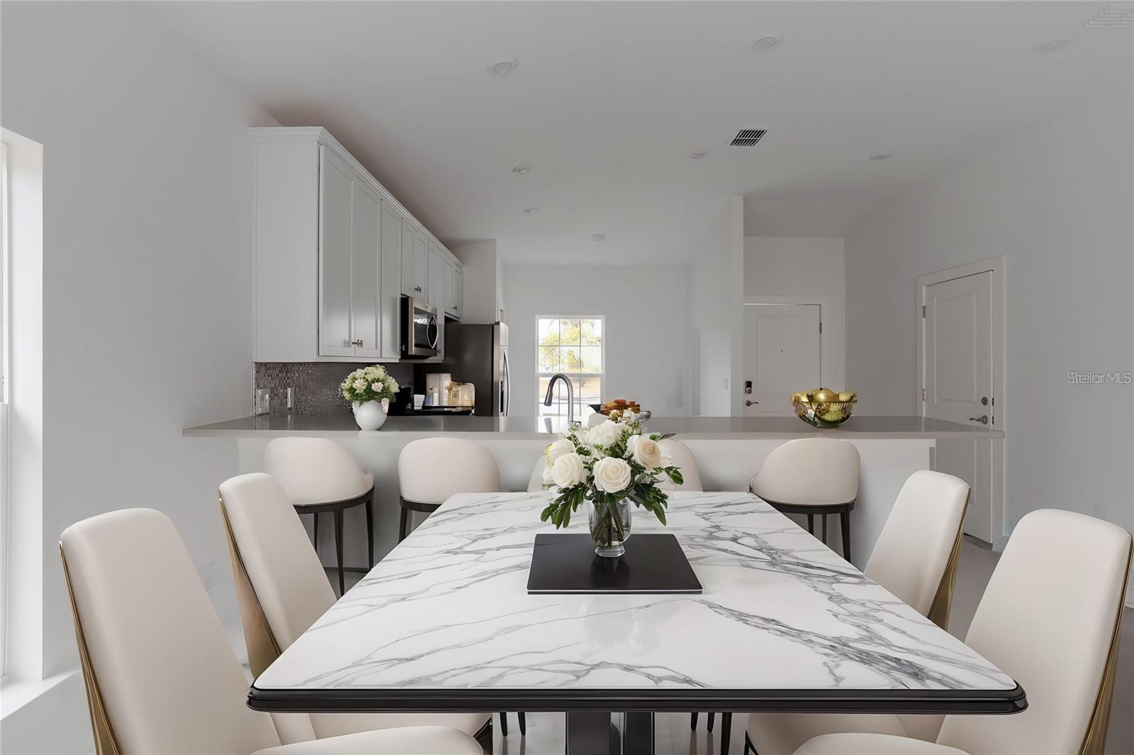 ***BUILDER CLOSEOUT SALE*** Elevate your lifestyle with the opulence of the Anna Maria floorplan presented by Carpenter Homes—a masterpiece within the Florida Living Series, certified by the Florida Green Building Coalition (FGBC). This home features 3 bedrooms and 2 full bathrooms. This dream home is designed and built to immerse you in luxury. As you enter, a beautiful kitchen welcomes you with an expansive, oversized island that seamlessly flows into the living and dining area. The finesse of soft-close, Shaker 42" cabinets, upgraded Fresh Linens 3CM quartz countertops, and Bliss Glass/Stone Mosaic Tile kitchen backsplash add a functional touch of luxury to the kitchen. Kitchen upgrades include a Moen Sleek chrome kitchen faucet, garbage disposal, and sleek stainless steel energy efficient appliances. This home exudes sophistication with a vaulted ceiling and 3 panel 9 foot sliding glass doors! Additionally, Carpenter Homes provides an upgraded brushed nickel lighting package and a vanity fixture in 2nd bathroom, accenting the overall lighting design. Each bedroom and the great room feature 52" brushed nickel ceiling fans, complemented by an upgraded SEER2 HVAC system to keep you cool and comfortable in the Florida weather. Complimenting the expansive living area is Magnisi 18"x18" white ceramic tile flooring. The Owner's suite offers a luxurious retreat, featuring a shower adorned with 4x16” Anatolia Soho white tiles, complemented by Anatolia Zen Flat Pebble vertical listello accents, and a spacious walk-in closet. The Owner's bathroom features a striking 72x36” contemporary mirror with front and back LED lighting, anti-fog technology, and customizable color settings with a dimmer for the ultimate in modern sophistication. The home boasts Magnisi white 8x12” upgraded tiled walls in the second bath/shower, 3CM quartz vanity tops, and Moen Genta LX chrome faucets. The ampleness of this home continues with a utility room, and thoughtful additions such as energy-efficient R-4.1 insulation on concrete exterior walls, Taexx tubes for pest control, and fabric hurricane shutters for every window. The Florida friendly landscaped yard is complemented by an irrigation system with rain sensor to help maximize efficiency. This secure community not only enhances the outdoor space's sophistication but also creates an ideal setting for a range of family activities, turning the backyard into a retreat for intimate family gatherings and treasured moments. The expansive 2-car garage, complete with garage door opener and two remotes, not only provides ample space for your everyday needs but also ensures the utmost convenience and versatility for all your storage and parking requirements. Step into a world where extravagance meets eco-conscious living—your forever home awaits, a testament to timeless elegance and modern sustainability. COMMUNITY: Residents enjoy members-only access to the Oak Hollow Recreation Center which includes an exercise room, table tennis, heated swimming pool (no lifeguard), children's playground, tennis court, pickleball, bocce ball court, horseshoes, corn-hole, billiards room, basketball court, picnic tables shaded by beautiful old oak trees, and a lending library. Residents also enjoy a vibrant social calendar filled with community events year-round! Available to view anytime.
