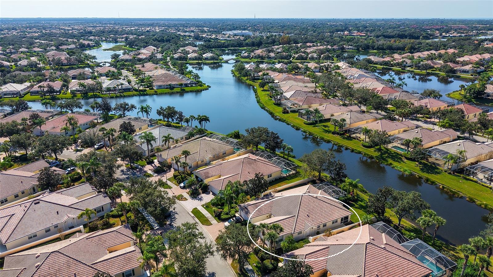 Beautiful Villa conveniently located on the south side of Village Walk with an easy drive or walk to the Village Walk Town Center, amenities and mailbox. Clean and neat, this 2/2/2 villas features Plantation shutters throughout, tile floor throughout (No Carpet), Quartz Counter in Kitchen and a WATERVIEW. Enjoy this peaceful setting every day as you sip your morning coffee on the lanai and watch the beautiful birds and wildlife. Village Walk is a wonderful unique community, built hurricane safe with poured concrete walls and foundations. Every home in Village Walk is considered to be a Single Family Home, roofs are tied down to the structures, per the Florida Building Codes and considered to be above average. Inspectors, roofers and Insurance agents that are familiar with Village Walk will share this information with you. Village Walk is in Flood Zone X, an area that is determined to be outside the 1% and 0.2% chance of flooding. FEMA updated, 8/2/24. Flood Zone provided by Sarasota County Tax reports. Evacuation zone D, flood insurance is not mandatory, but flood insurance is available. Village Walk power lines are underground with a Sarasota Fire Department just down Honore. Seldom losing power. Amenities include 24 hr guarded gate, geo-thermal heated and cooled lap & lagoon pools, six Har-Tru Tennis courts, Pickle ball, Bocce' ball and Basketball courts, State of the Art fitness Center, Miles of walking and bike paths, over 500 acres of lakes and preserves. There are over 50 activity groups who meet daily, weekly, or monthly. Plus there is a full service Cafe with full service Bar, Gas Station, Barber shop/Hair Salon, and Gift Shop. A special NOTE is that Village Walk did not lose power during the hurricanes and there was No flooding. What a Fantastic Place to Call HOME!