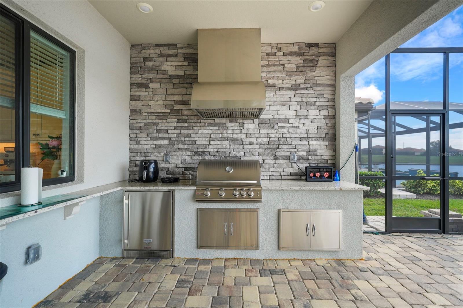 RESORT-STYLE LIVING IN LAKEWOOD NATIONAL! Welcome to your dream home in the highly sought-after Lakewood National Golf & Country Club—a premier gated community offering world-class amenities including golf, tennis, pickleball, bocce ball, fitness center, resort-style pools, tiki bar, clubhouse dining, and so much more. This stunning residence showcases upgrades that go far beyond what the builder offered—elegant tray ceilings, designer finishes, and thoughtful touches throughout. The heart of the home is a gourmet kitchen with high-end GE appliances, perfect for everyday living or entertaining in style. Step outside to your outdoor kitchen featuring a gas grill stove, a powerful vent hood, and a beverage fridge—a true entertainer’s paradise. Enjoy peaceful water views from the expansive extended lanai, beautifully enhanced with a picture screen cage that maximizes the scenery. Relax in your private above-ground hot tub, and take comfort in the home’s whole-house water filtration system that provides the highest quality living. While this home doesn’t include a pool, the oversized lanai and resort-style community amenities offer endless opportunities for fun, fitness, and relaxation. With its unmatched location, incredible amenities, and countless custom upgrades, this Lakewood National gem is more than a home—it’s a lifestyle.