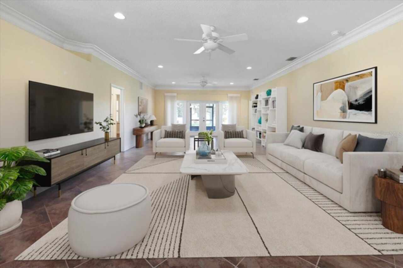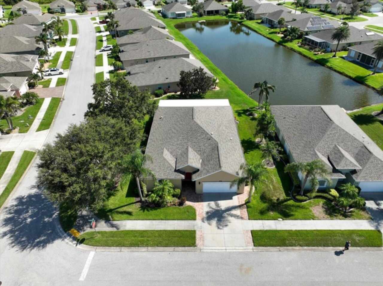 One or more photo(s) has been virtually staged. Welcome to Park Forest, the area's shining star of gated 55 plus communities with low HOA fees and no CDD Fees. Fees include your TV and internet, new roof every 17 years and exterior paint every 7 years, exterior grounds maintenance and more.. Enjoy your days at the area's most active community centers with activities for all your desires. Custom built for the developer of the community as their personal home it features an extended floor plan of the desirable Pearl floor plan that adds an extra 500 sq feet of air conditioned space and a wider garage than the popular base Pearl model. With its large kitchen and breakfast nook which includes a built-in pantry and additional cabinet area all with granite tops, eat at counter and solid wood cabinets featuring an oversized island you are sure to be able to entertain family and friends with room to spare. In addition there is a separate dining room adjoining an expansive great room trimmed with oversized baseboards and topped with double crown moldings leading to a massive 40 ft lanai with insulated roof, ceiling fans and pre plumbed and wired for a spa overlooking the pond out back. You're sure to love the room sizes as well as the master suite that includes a walk-in closet and den overlooking the water. Additional features include electric roll down garage screen, impact windows, hurricane shutters for doors, large inside laundry room pre plumbed for utility sink, expansive corner lot with mature trees and sidewalks, paver lined driveway sidewalk, upgraded fans, fixtures and more. All this and only a couple minutes from Historical Dearborn, Beautiful Gulf Beaches and dozens of golfing opportunities. Situated in an X flood zone with a 2 year old roof for added peace of mind. Schedule you showing today and all your expectations will be met.
