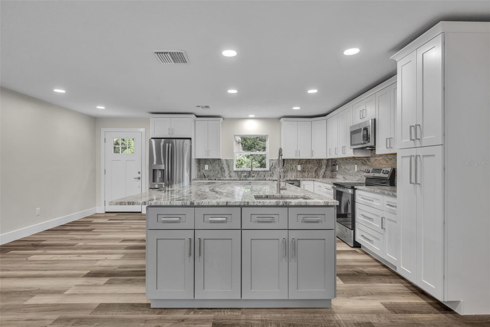 PRICE REDUCED! Experience elevated lakefront living with this exquisite 4-bedroom, 3-bath estate nestled on 3 private acres along the tranquil shores of Little Lake Georgia in Oviedo, Florida. Thoughtfully redesigned with luxury and lifestyle in mind, this exceptional home offers the perfect blend of sophistication, comfort, and space to entertain—indoors and out. At the heart of the home lies a true chef’s kitchen, featuring an oversized quartz island, sleek quartz backsplash, premium appliances, and a built-in wine fridge—ideal for hosting elegant gatherings or casual nights in. The open-concept design flows effortlessly into expansive living space, all accented by wide-plank LVP flooring and designer finishes. Step outside to your private oasis, where lush acreage and lake views provide an unparalleled backdrop for outdoor entertaining, future enhancements, or peaceful retreat. With a brand new roof, brand new septic system, and an updated electrical system, every detail has been addressed for modern luxury and worry-free living. No HOA neighborhood, so bring your toys! This is a rare opportunity to own a turn-key, fully upgraded lakefront home with acreage in one of Central Florida’s most desirable locations.