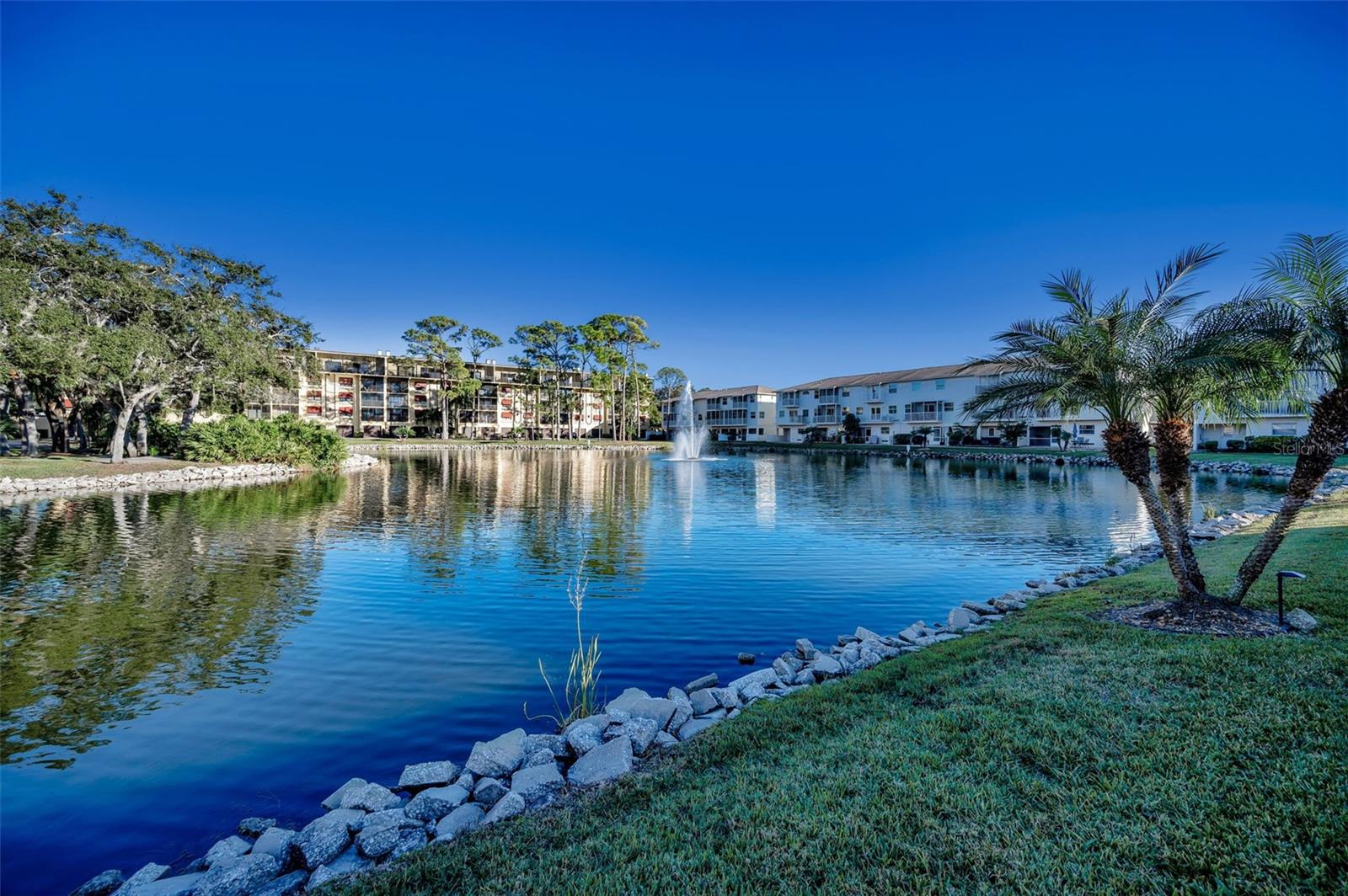 Welcome Home to the community of 6000 Park Place Condominiums. This turnkey move in ready two bedroom unit with a hard to find attached one car garage. Enjoy the pond view from the screened in balcony. Perfect layout with the spacious great room, split bedrooms and an indoor laundry room. The primary bedroom is a retreat with pond view, walk in closet and screened lanai access. A beautifully remodeled primary bathroom includes walk in shower and separate sink area with quartz counter and wood cabinet. The guest bathroom is also remodeled with tub/shower combination, upgraded fixtures and cabinet. Additional upgrades include 2022 luxury vinyl flooring 2022 appliances and 2024 interior paint. This pet friendly community offers beautiful grounds, location, recreation, community pool and activities. Enjoy the Clubhouse with fitness room, billiards, library and a large gathering room with TV and kitchen. Outside are courts for tennis, pickle ball and shuffleboard. Great location! Live in a community that is central to all Tampa Bay has to offer. There is nearby dining, shopping, banking and medical services. A short drive will take you to all area beaches, activities, sporting events and the Tampa International Airport. For more pictures, be sure to watch the video!