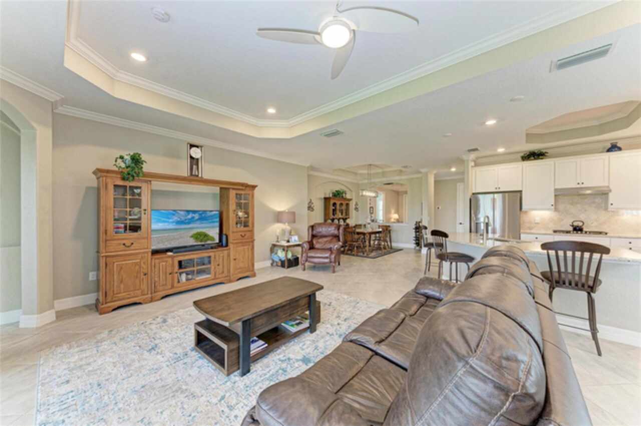 Repositioned to reflect today’s market – now an even greater value! Lowest price per square foot of all single-family homes in Lakewood National Golf Club, this is a new opportunity to acquire this exceptional residence at revised pricing. If you are seeking a dynamic yet refined lifestyle, look no further. This spacious single-family deeded golf home is on a great homesite with golf course views and walking distance to all of the amazing amenities offered in this coveted community. Offering four bedrooms, two baths with 2, 248 interior square feet providing easy, relaxing and maintenance-free living in the gated community of Lakewood National Golf Club. The Isabella floor plan showcases an open-concept design with a split-bedroom layout, providing privacy and flow. Interior highlights include custom paint, crown molding, Hunter Douglas blackout blinds and ceiling fans in each bedroom, living room and patio. The kitchen features a natural gas range, built-in wall oven, generous pantry and abundant cabinet storage. The oversized primary suite includes two walk-in closets and plenty of natural light. Enjoy Florida’s indoor-outdoor lifestyle from the screened lanai, complete with an outdoor kitchen and amazing light all day. This pool-ready golf view lot is loaded with opportunity. The two-car garage and proximity to resort-style amenities enhance the home's appeal. All this, plus owners in Lakewood National Golf Club enjoy deeded golf membership giving owners the ability to play 36 holes of championship golf year-round. The Commander course at Lakewood National Golf Club was named No. 1 Golfers’ Choice and No. 1 Top Course in Florida by Golf Advisor. Lakewood National Golf Club offers gated, maintenance-free living with extraordinary amenities that include 36 holes of Arnold Palmer-designed golf courses, a zero-entry heated pool with cascading waterfalls and lap lanes, poolside tiki bar and café, fitness center with group exercise classes, an on-site full-service spa, eight lighted Har-Tru tennis courts, bocce, pickleball, several satellite pools, and a stunning 28, 000-square-foot clubhouse which offers fine and casual dining, an expansive bar and lounge, men’s and ladies lounges and locker rooms, conference and meeting space, a full-time lifestyle director who keeps residents’ social life fun and active with trivia night, karaoke night, live concerts on the green, extravagant holiday parties, wine-tasting dinners and more. Lakewood National Golf Club hosts the annual Korn Ferry Tour’s LECOM Suncoast Classic. Incentives if closing before January 2026.