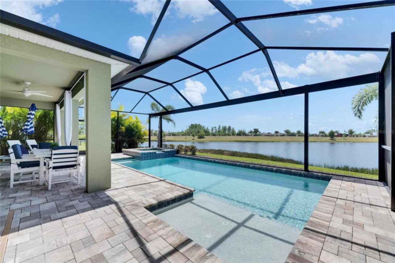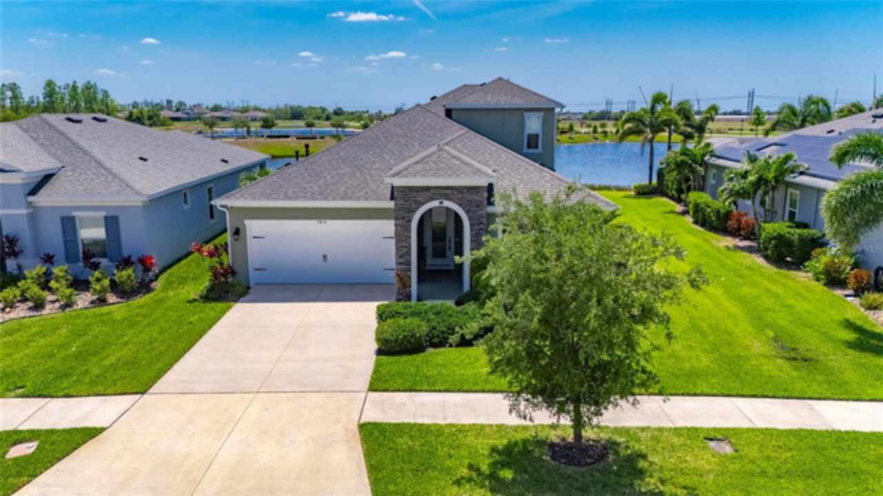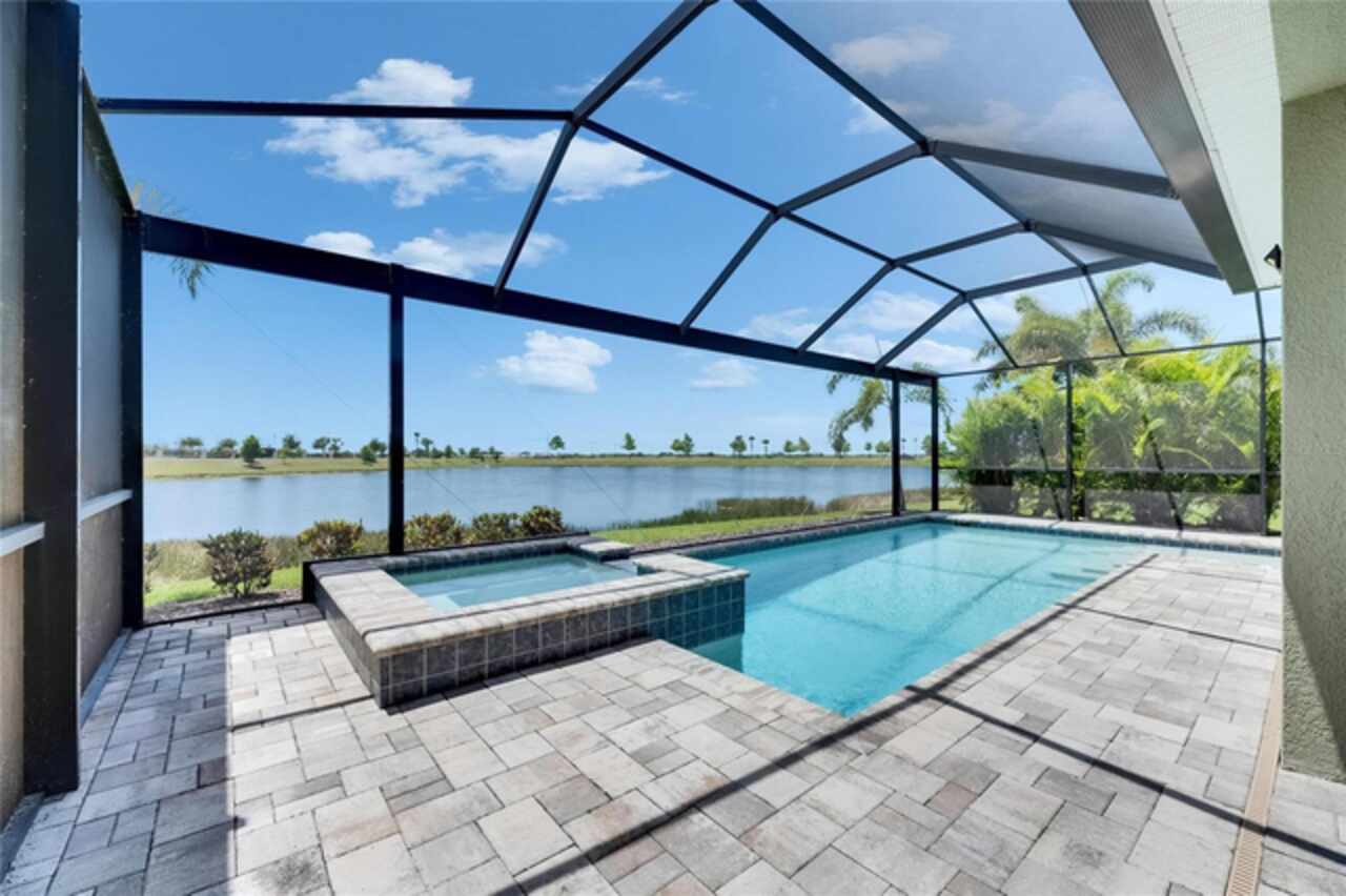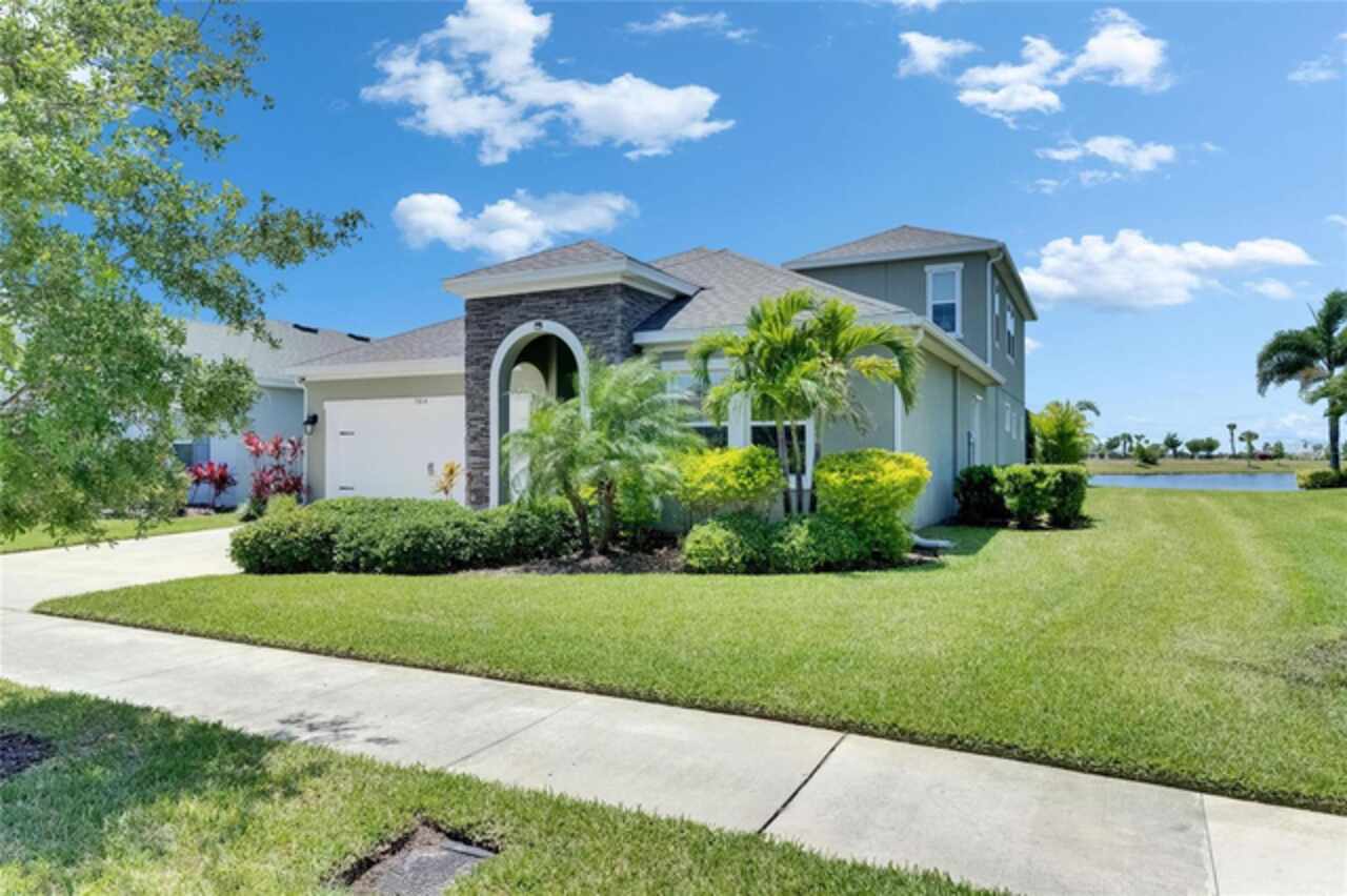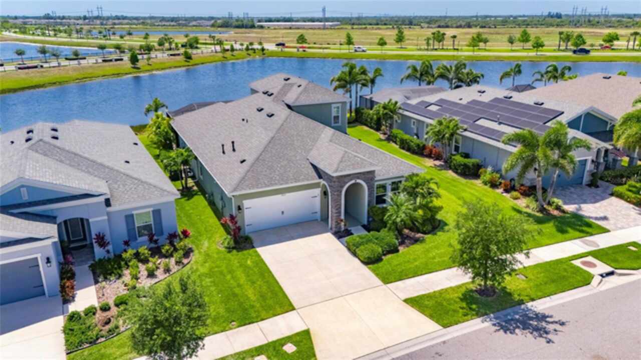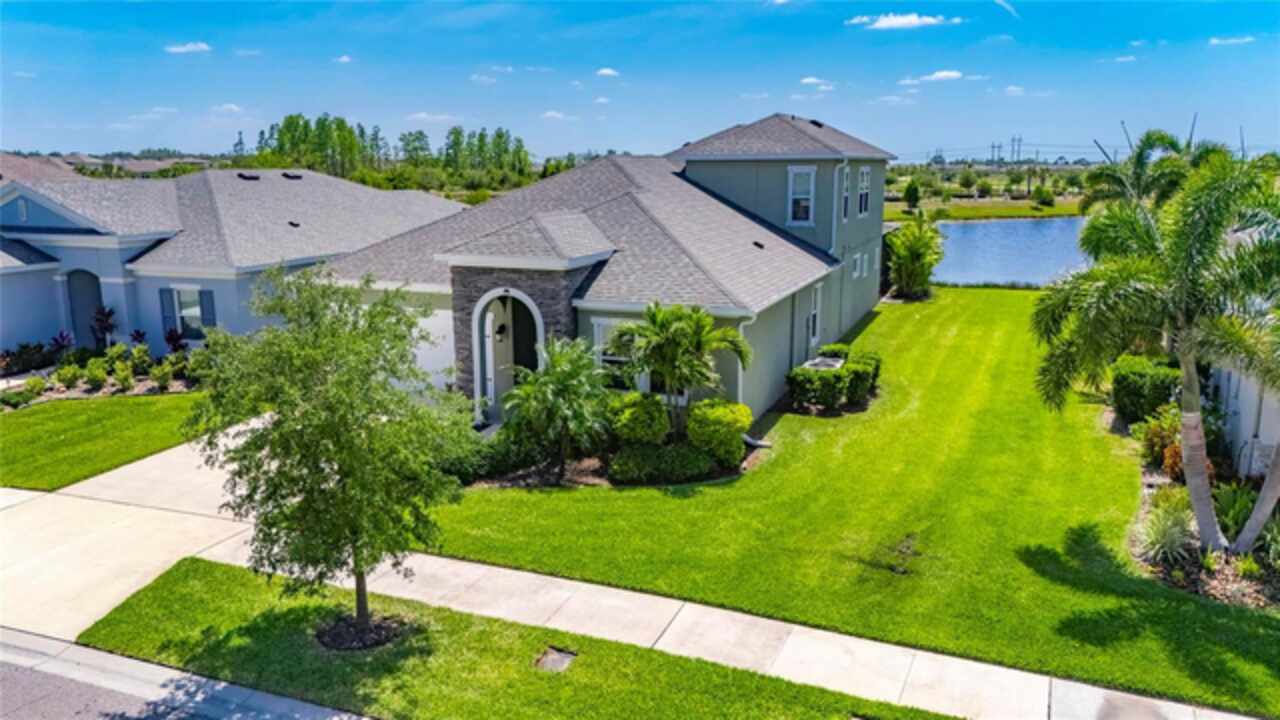 5814 Silver Sun Drive is a beautiful 4-bedroom, 3-bath plus office waterfront pool home located right in the heart of Apollo Beach. With 2, 774 square feet of living space, there’s plenty of room to stretch out and enjoy every part of this home. Built in 2020 by Cardel Homes, this highly popular Northwood II with a second-floor bonus room floorplan has been carefully maintained and feels fresh and ready for new memories. The home features stunning water views with greenspace beyond. The kitchen is open to the living and dining areas and includes light cabinets, quartz countertops, a gas stove, upgraded Whirlpool stainless steel appliances, a walk-in oversized pantry, and a large 8-foot island perfect for gathering. The main living space offers tall ceilings, tall doors, abundant natural light, and easy-to-care-for wood-look plank tile flooring. A true split floorplan, three bedrooms are located downstairs, including the spacious owner's suite, which features an oversized walk-in closet, a spacious shower, and double sinks. The office features glass French doors and is roomy enough for two. Upstairs, there’s a huge bonus room with a full bathroom and a walk-in closet—ideal for guests, a playroom, or a second living space—with breathtaking views overlooking the pond. The backyard is one of the best parts of this home. Step outside to your private pool and spa, surrounded by a panoramic screen enclosure with no beams to obstruct your view. The pool overlooks a peaceful pond with west facing views, making it a perfect spot to relax at the end of the day while you watch the sunset over the water. The extended lanai offers plenty of space for outdoor dining and entertaining. There’s also plenty of room to add a fence and dog run, creating a perfect outdoor haven for your four-legged friends. Additional features include a 2-car garage with epoxy flooring. Family-owned Cardel Homes offers far more quality standard features than most other builders, such as upgraded cabinetry, upgraded quartz and granite, level 2 17”x17” tile, RedGard coating applied under all tile, Bora-Care termite treatment on interior walls, double-glazed low-E windows, 30-year dimensional shingles, pest control tubes in walls, decorative coach lights, vapor barrier steel-reinforced concrete foundation, structurally engineered roof trusses secured with high-strength galvanized steel hurricane straps, and masonry block wall construction with engineered poured concrete cells with steel reinforcement. Waterset is one of Apollo Beach’s favorite neighborhoods, and one of the most highly sought after neighborhoods in the entire county. Packed with community amenities like multiple pools, water slides, a splash park, dog parks, playgrounds, fitness centers, tennis, basketball and pickleball courts, and miles of walking trails. Plus, this home is just a short stroll from one of the neighborhood’s newest parks and pool areas, as well as the newly opened 20-acre outdoor recreation center. Come see why so many are making the move to Waterset — 5814 Silver Sun Drive is ready for you to call it home.