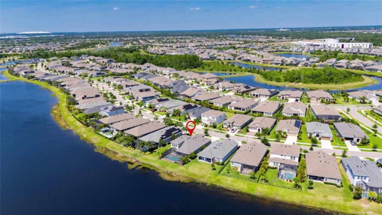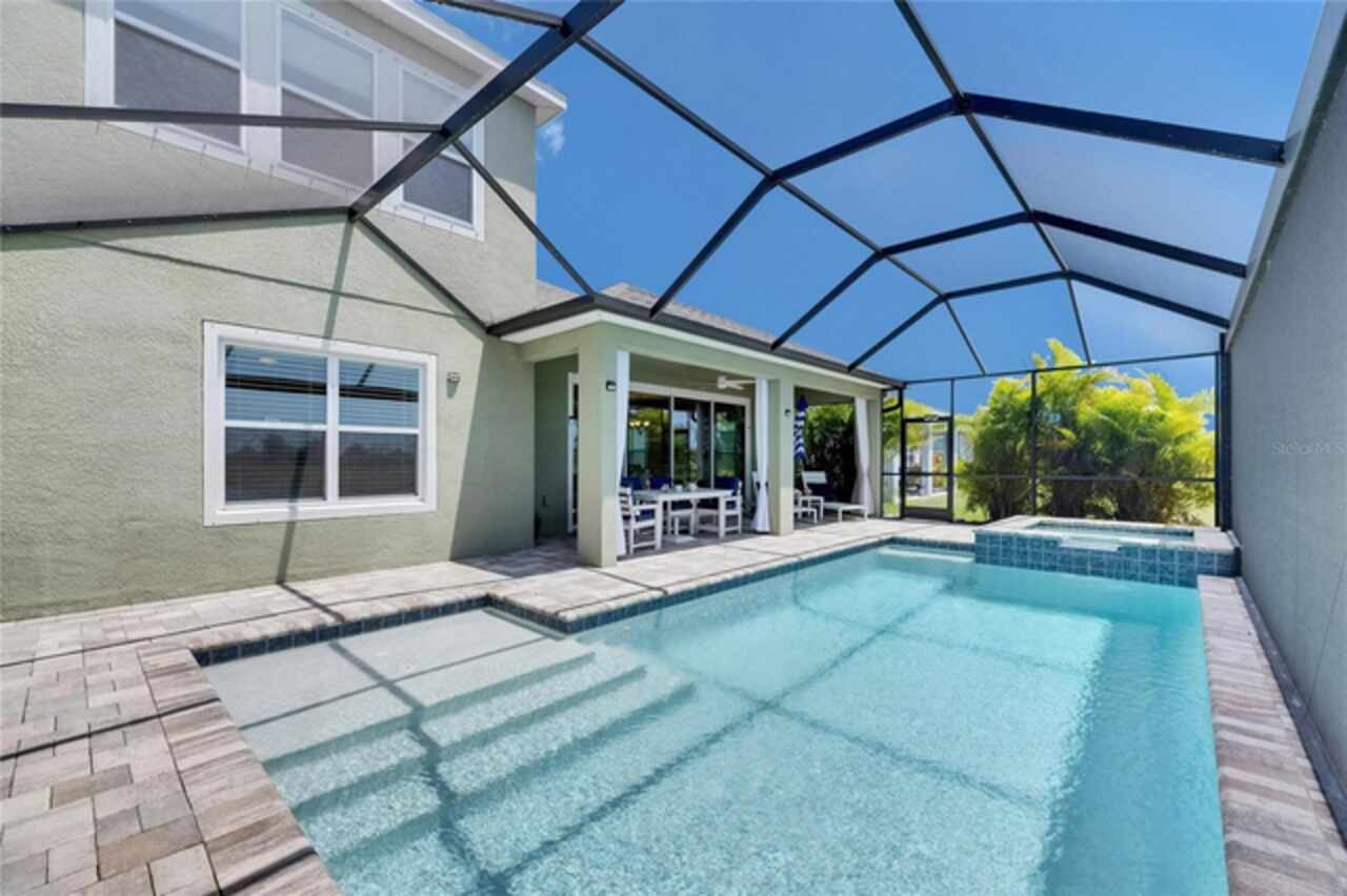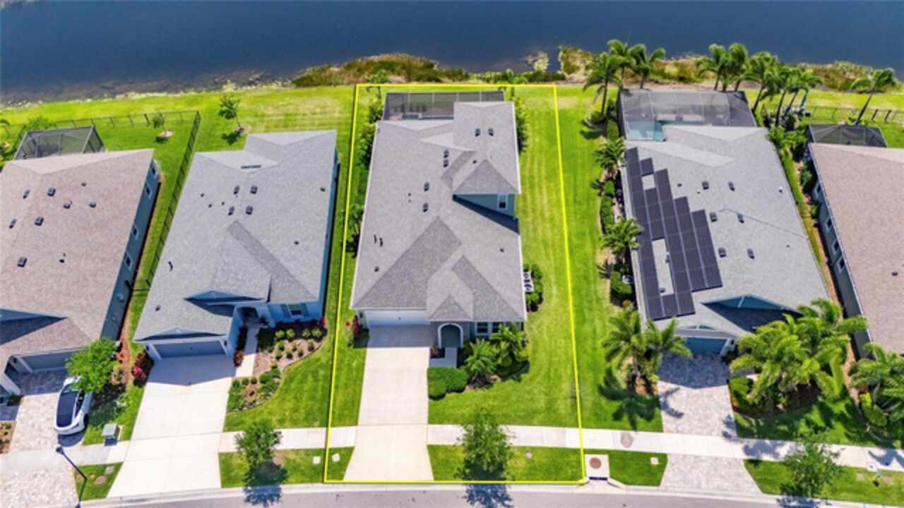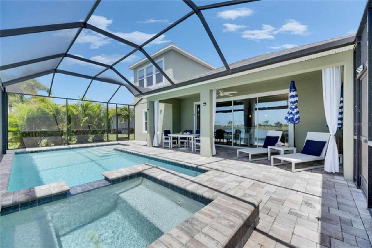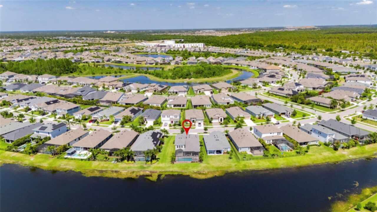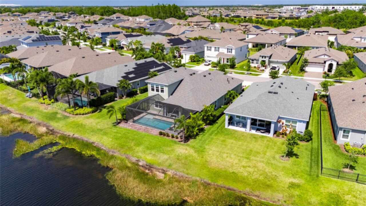 5814 Silver Sun Drive is a beautiful 4-bedroom, 3-bath plus office waterfront pool home located right in the heart of Apollo Beach. With 2, 774 square feet of living space, there’s plenty of room to stretch out and enjoy every part of this home. Built in 2020 by Cardel Homes, this highly popular Northwood II with a second-floor bonus room floorplan has been carefully maintained and feels fresh and ready for new memories. The home features stunning water views with greenspace beyond. The kitchen is open to the living and dining areas and includes light cabinets, quartz countertops, a gas stove, upgraded Whirlpool stainless steel appliances, a walk-in oversized pantry, and a large 8-foot island perfect for gathering. The main living space offers tall ceilings, tall doors, abundant natural light, and easy-to-care-for wood-look plank tile flooring. A true split floorplan, three bedrooms are located downstairs, including the spacious owner's suite, which features an oversized walk-in closet, a spacious shower, and double sinks. The office features glass French doors and is roomy enough for two. Upstairs, there’s a huge bonus room with a full bathroom and a walk-in closet—ideal for guests, a playroom, or a second living space—with breathtaking views overlooking the pond. The backyard is one of the best parts of this home. Step outside to your private pool and spa, surrounded by a panoramic screen enclosure with no beams to obstruct your view. The pool overlooks a peaceful pond with west facing views, making it a perfect spot to relax at the end of the day while you watch the sunset over the water. The extended lanai offers plenty of space for outdoor dining and entertaining. There’s also plenty of room to add a fence and dog run, creating a perfect outdoor haven for your four-legged friends. Additional features include a 2-car garage with epoxy flooring. Family-owned Cardel Homes offers far more quality standard features than most other builders, such as upgraded cabinetry, upgraded quartz and granite, level 2 17”x17” tile, RedGard coating applied under all tile, Bora-Care termite treatment on interior walls, double-glazed low-E windows, 30-year dimensional shingles, pest control tubes in walls, decorative coach lights, vapor barrier steel-reinforced concrete foundation, structurally engineered roof trusses secured with high-strength galvanized steel hurricane straps, and masonry block wall construction with engineered poured concrete cells with steel reinforcement. Waterset is one of Apollo Beach’s favorite neighborhoods, and one of the most highly sought after neighborhoods in the entire county. Packed with community amenities like multiple pools, water slides, a splash park, dog parks, playgrounds, fitness centers, tennis, basketball and pickleball courts, and miles of walking trails. Plus, this home is just a short stroll from one of the neighborhood’s newest parks and pool areas, as well as the newly opened 20-acre outdoor recreation center. Come see why so many are making the move to Waterset — 5814 Silver Sun Drive is ready for you to call it home.