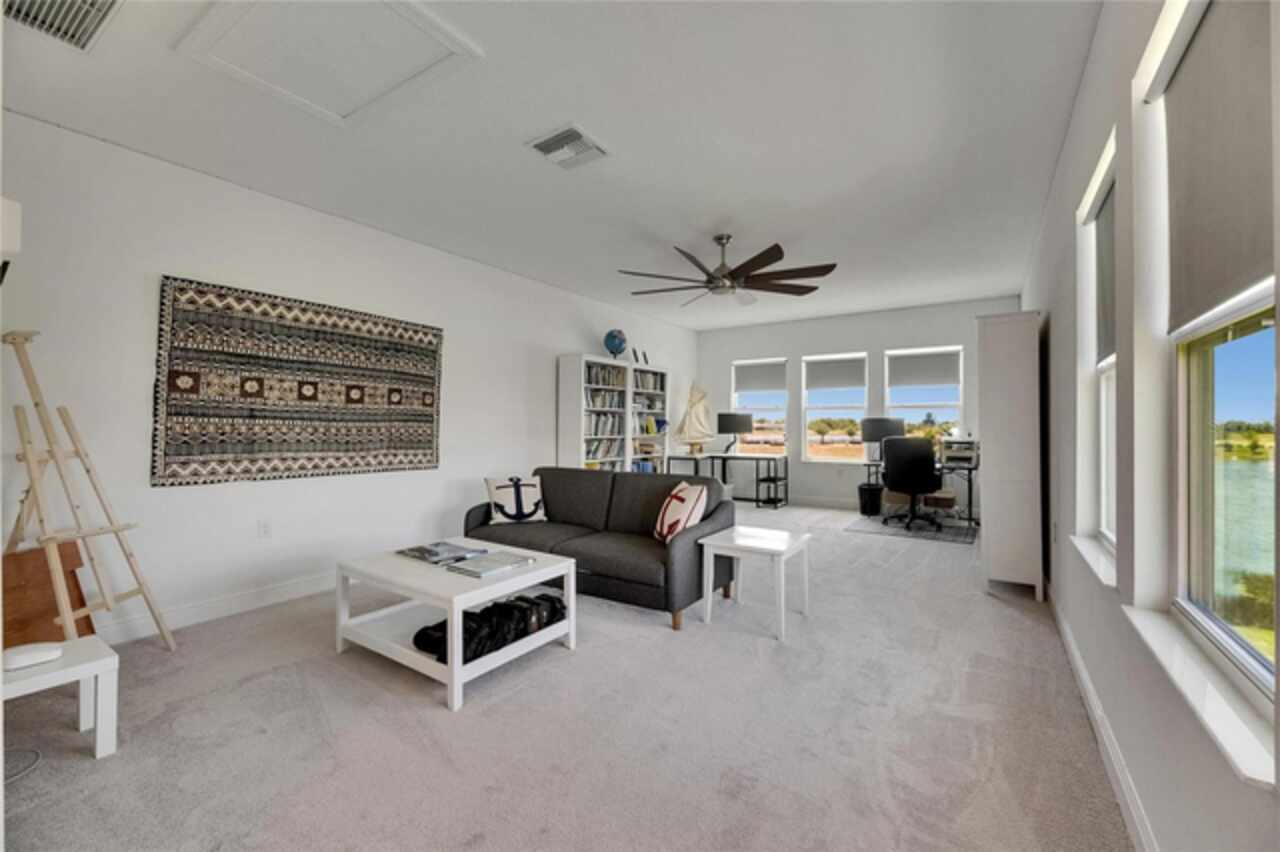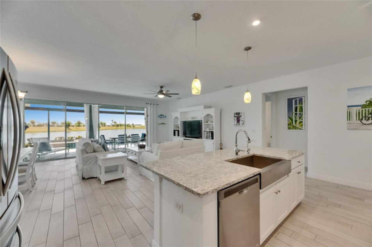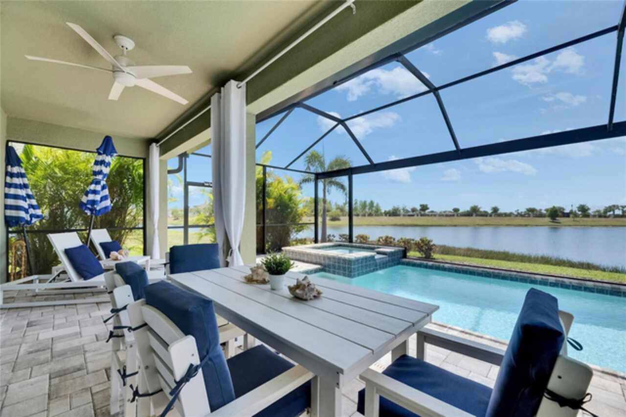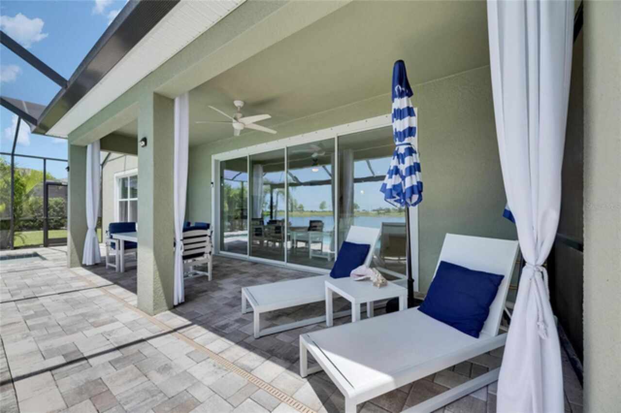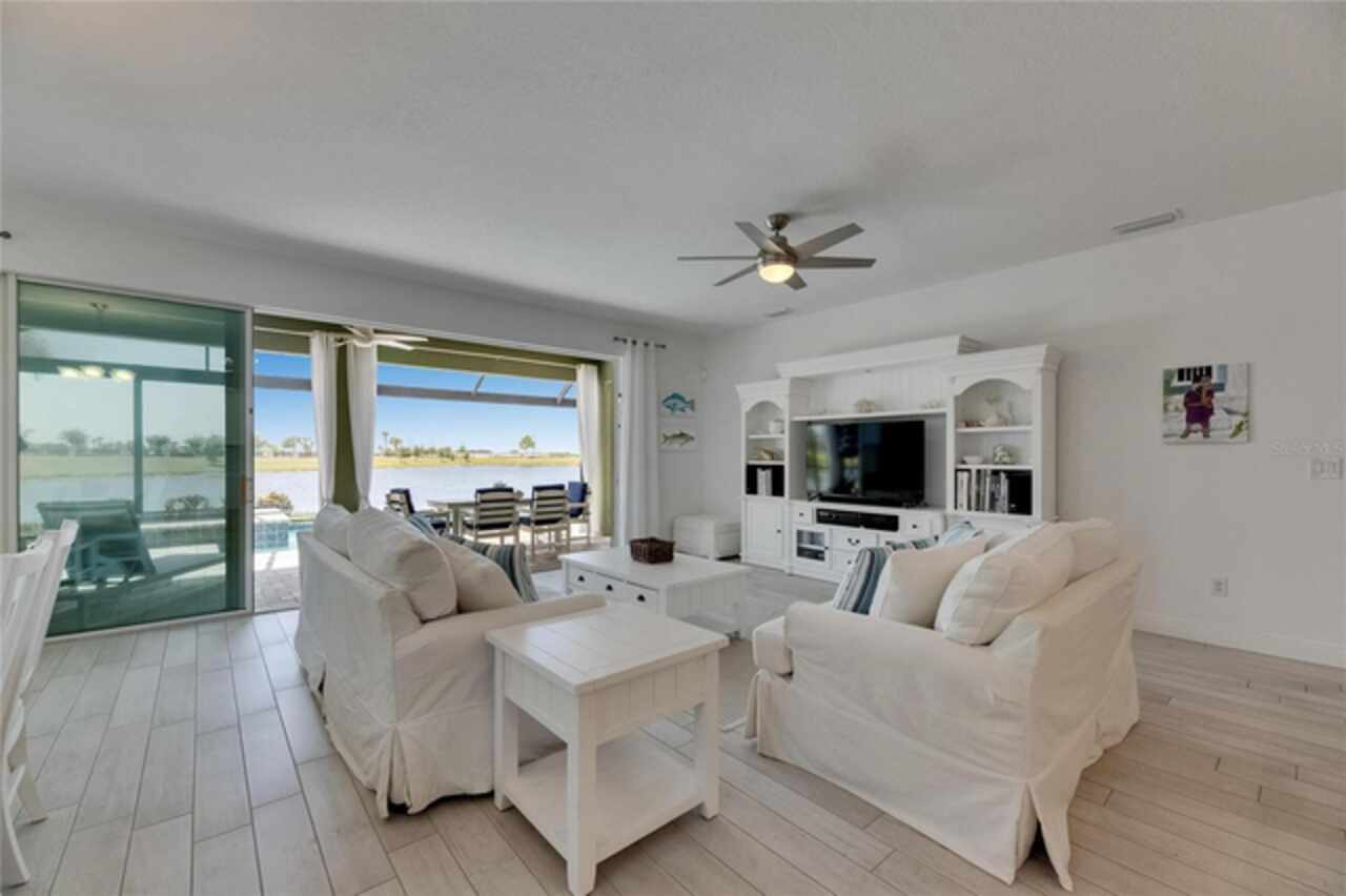 5814 Silver Sun Drive is a beautiful 4-bedroom, 3-bath plus office waterfront pool home located right in the heart of Apollo Beach. With 2, 774 square feet of living space, there’s plenty of room to stretch out and enjoy every part of this home. Built in 2020 by Cardel Homes, this highly popular Northwood II with a second-floor bonus room floorplan has been carefully maintained and feels fresh and ready for new memories. The home features stunning water views with greenspace beyond. The kitchen is open to the living and dining areas and includes light cabinets, quartz countertops, a gas stove, upgraded Whirlpool stainless steel appliances, a walk-in oversized pantry, and a large 8-foot island perfect for gathering. The main living space offers tall ceilings, tall doors, abundant natural light, and easy-to-care-for wood-look plank tile flooring. A true split floorplan, three bedrooms are located downstairs, including the spacious owner's suite, which features an oversized walk-in closet, a spacious shower, and double sinks. The office features glass French doors and is roomy enough for two. Upstairs, there’s a huge bonus room with a full bathroom and a walk-in closet—ideal for guests, a playroom, or a second living space—with breathtaking views overlooking the pond. The backyard is one of the best parts of this home. Step outside to your private pool and spa, surrounded by a panoramic screen enclosure with no beams to obstruct your view. The pool overlooks a peaceful pond with west facing views, making it a perfect spot to relax at the end of the day while you watch the sunset over the water. The extended lanai offers plenty of space for outdoor dining and entertaining. There’s also plenty of room to add a fence and dog run, creating a perfect outdoor haven for your four-legged friends. Additional features include a 2-car garage with epoxy flooring. Family-owned Cardel Homes offers far more quality standard features than most other builders, such as upgraded cabinetry, upgraded quartz and granite, level 2 17”x17” tile, RedGard coating applied under all tile, Bora-Care termite treatment on interior walls, double-glazed low-E windows, 30-year dimensional shingles, pest control tubes in walls, decorative coach lights, vapor barrier steel-reinforced concrete foundation, structurally engineered roof trusses secured with high-strength galvanized steel hurricane straps, and masonry block wall construction with engineered poured concrete cells with steel reinforcement. Waterset is one of Apollo Beach’s favorite neighborhoods, and one of the most highly sought after neighborhoods in the entire county. Packed with community amenities like multiple pools, water slides, a splash park, dog parks, playgrounds, fitness centers, tennis, basketball and pickleball courts, and miles of walking trails. Plus, this home is just a short stroll from one of the neighborhood’s newest parks and pool areas, as well as the newly opened 20-acre outdoor recreation center. Come see why so many are making the move to Waterset — 5814 Silver Sun Drive is ready for you to call it home.