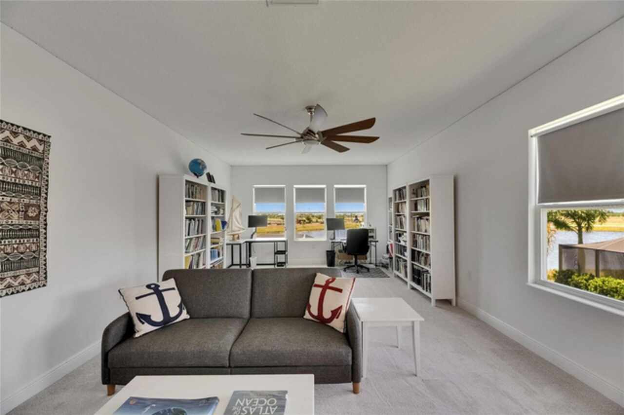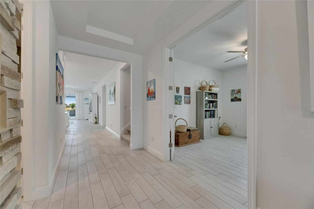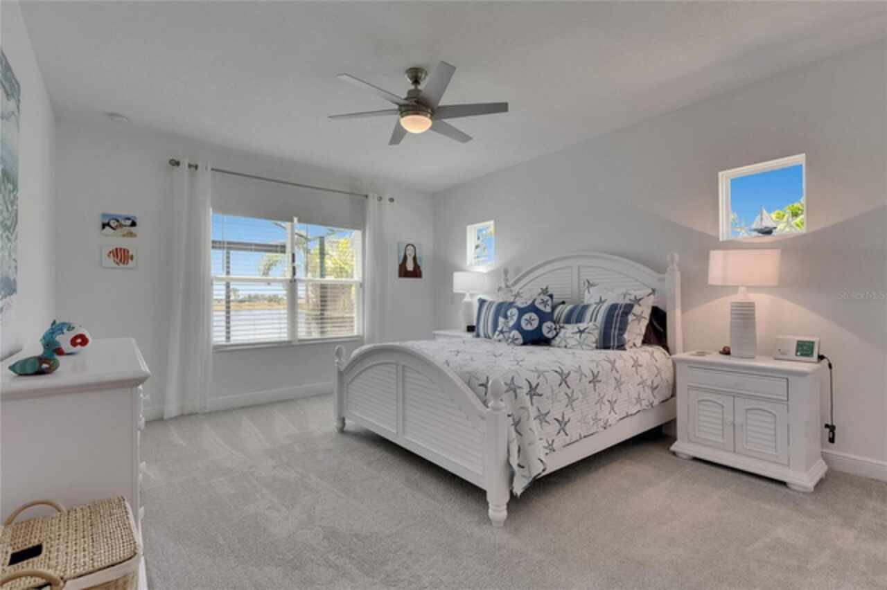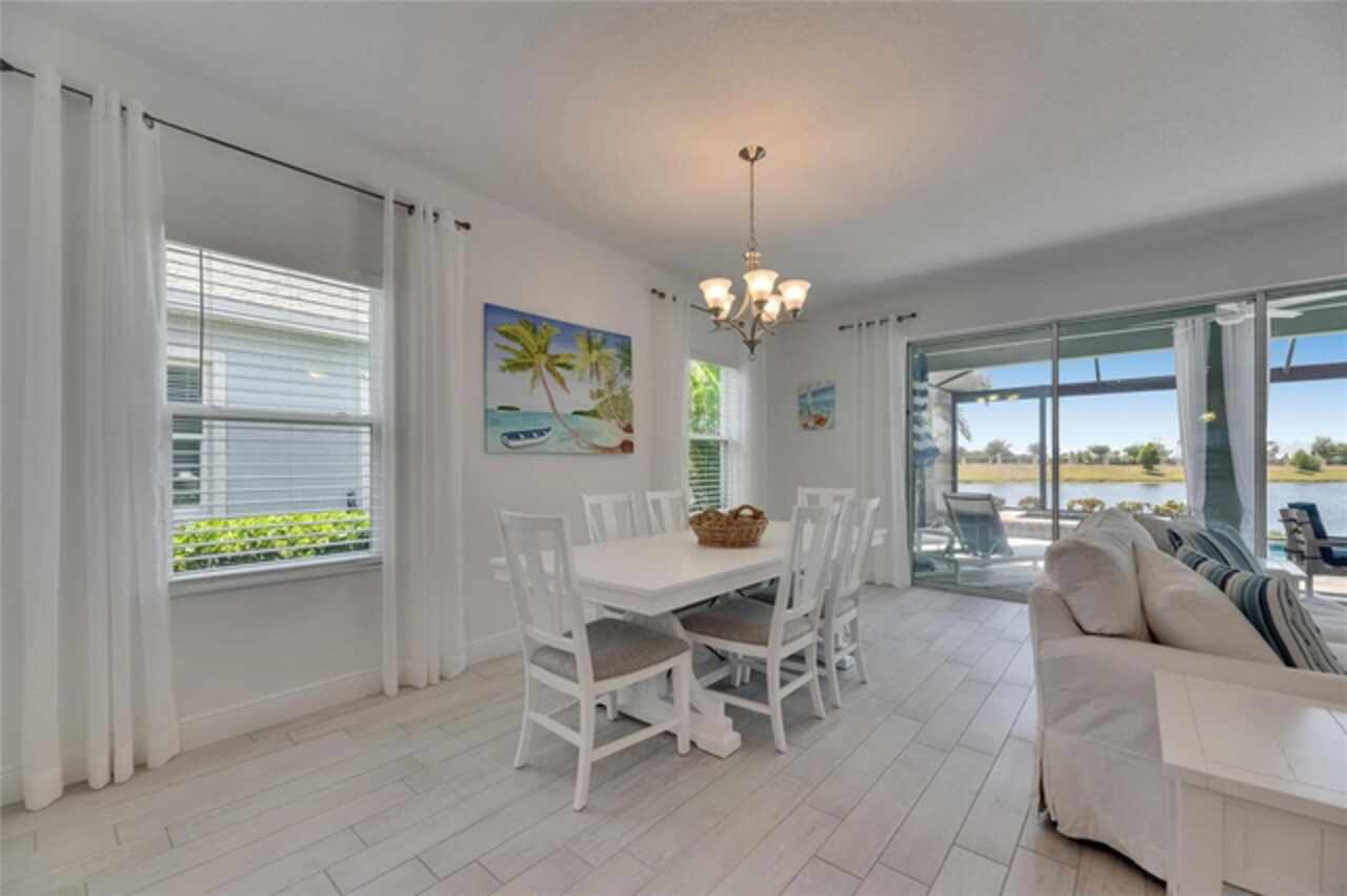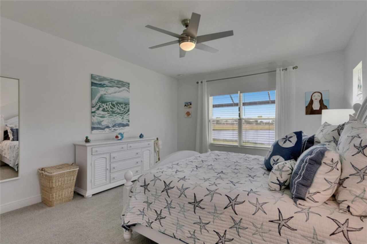 5814 Silver Sun Drive is a beautiful 4-bedroom, 3-bath plus office waterfront pool home located right in the heart of Apollo Beach. With 2, 774 square feet of living space, there’s plenty of room to stretch out and enjoy every part of this home. Built in 2020 by Cardel Homes, this highly popular Northwood II with a second-floor bonus room floorplan has been carefully maintained and feels fresh and ready for new memories. The home features stunning water views with greenspace beyond. The kitchen is open to the living and dining areas and includes light cabinets, quartz countertops, a gas stove, upgraded Whirlpool stainless steel appliances, a walk-in oversized pantry, and a large 8-foot island perfect for gathering. The main living space offers tall ceilings, tall doors, abundant natural light, and easy-to-care-for wood-look plank tile flooring. A true split floorplan, three bedrooms are located downstairs, including the spacious owner's suite, which features an oversized walk-in closet, a spacious shower, and double sinks. The office features glass French doors and is roomy enough for two. Upstairs, there’s a huge bonus room with a full bathroom and a walk-in closet—ideal for guests, a playroom, or a second living space—with breathtaking views overlooking the pond. The backyard is one of the best parts of this home. Step outside to your private pool and spa, surrounded by a panoramic screen enclosure with no beams to obstruct your view. The pool overlooks a peaceful pond with west facing views, making it a perfect spot to relax at the end of the day while you watch the sunset over the water. The extended lanai offers plenty of space for outdoor dining and entertaining. There’s also plenty of room to add a fence and dog run, creating a perfect outdoor haven for your four-legged friends. Additional features include a 2-car garage with epoxy flooring. Family-owned Cardel Homes offers far more quality standard features than most other builders, such as upgraded cabinetry, upgraded quartz and granite, level 2 17”x17” tile, RedGard coating applied under all tile, Bora-Care termite treatment on interior walls, double-glazed low-E windows, 30-year dimensional shingles, pest control tubes in walls, decorative coach lights, vapor barrier steel-reinforced concrete foundation, structurally engineered roof trusses secured with high-strength galvanized steel hurricane straps, and masonry block wall construction with engineered poured concrete cells with steel reinforcement. Waterset is one of Apollo Beach’s favorite neighborhoods, and one of the most highly sought after neighborhoods in the entire county. Packed with community amenities like multiple pools, water slides, a splash park, dog parks, playgrounds, fitness centers, tennis, basketball and pickleball courts, and miles of walking trails. Plus, this home is just a short stroll from one of the neighborhood’s newest parks and pool areas, as well as the newly opened 20-acre outdoor recreation center. Come see why so many are making the move to Waterset — 5814 Silver Sun Drive is ready for you to call it home.