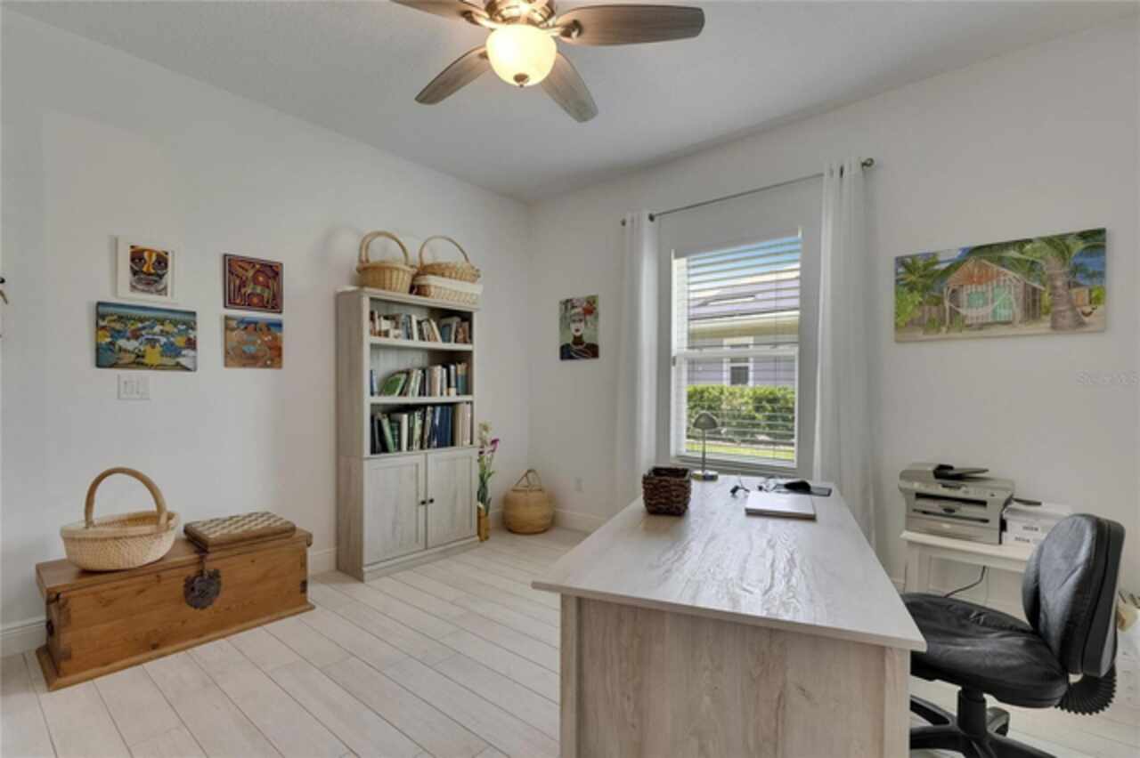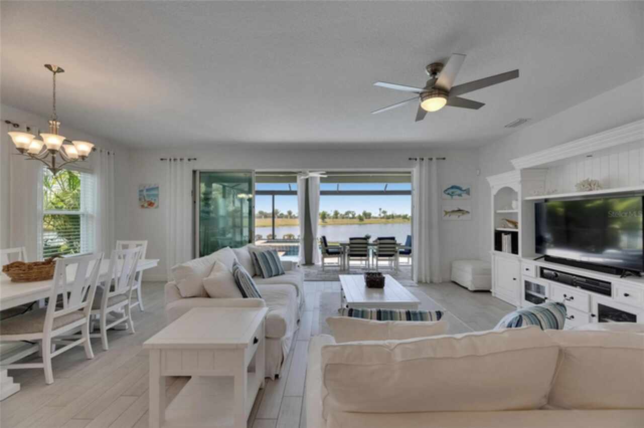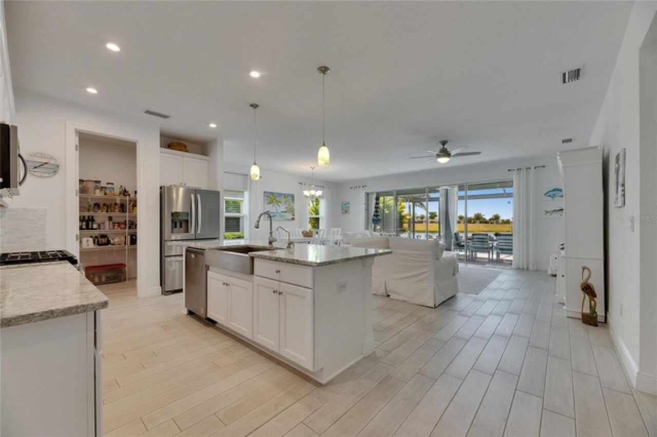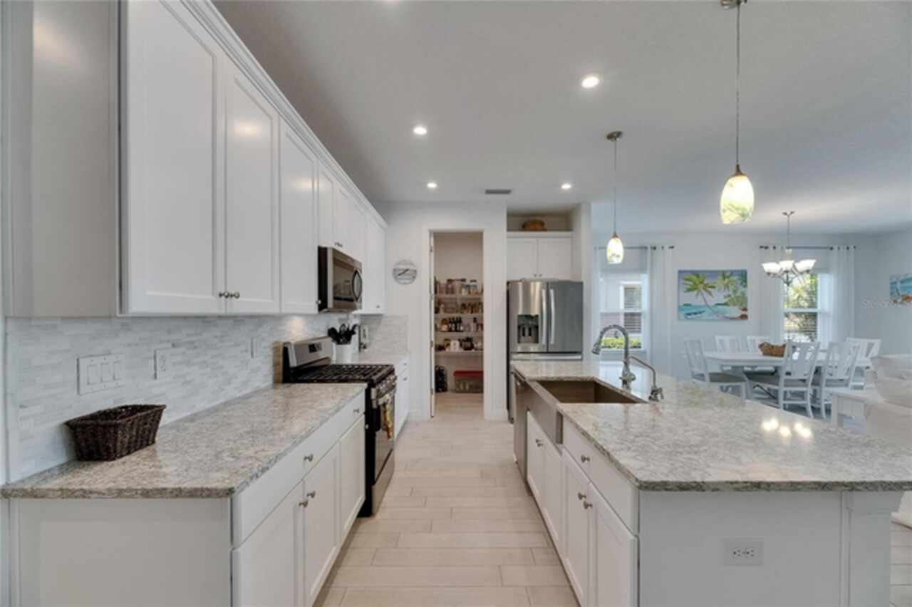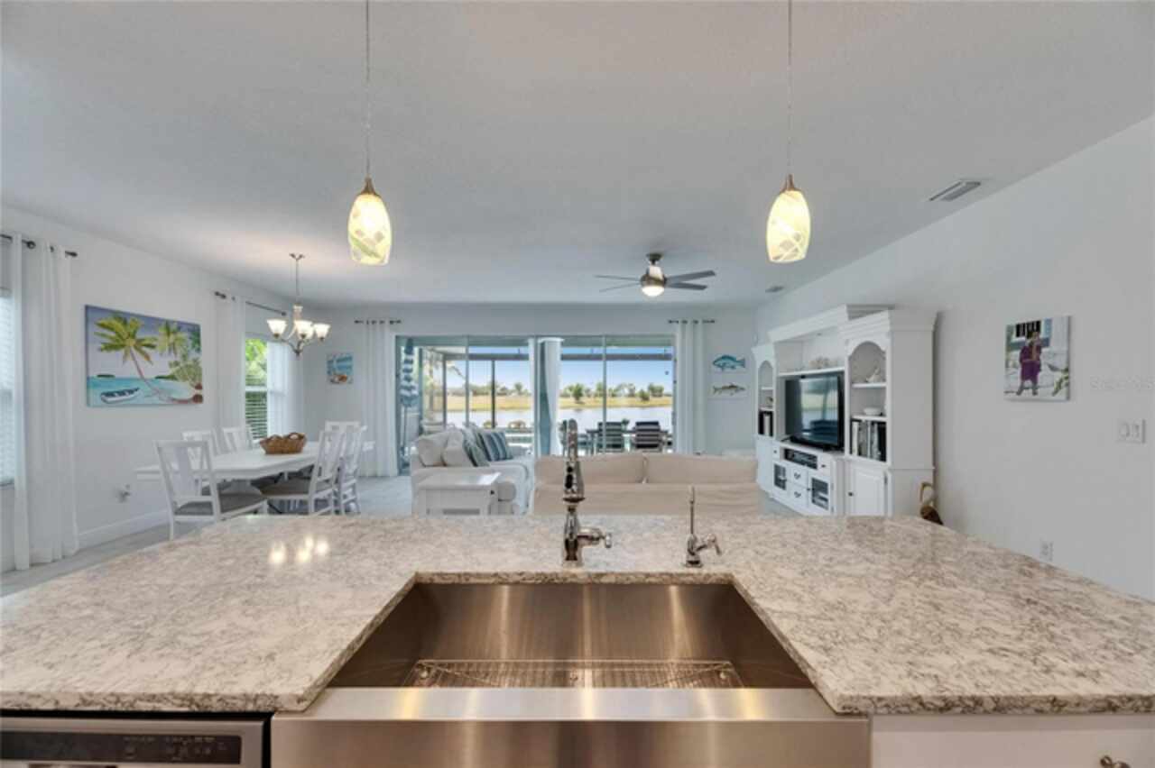 5814 Silver Sun Drive is a beautiful 4-bedroom, 3-bath plus office waterfront pool home located right in the heart of Apollo Beach. With 2, 774 square feet of living space, there’s plenty of room to stretch out and enjoy every part of this home. Built in 2020 by Cardel Homes, this highly popular Northwood II with a second-floor bonus room floorplan has been carefully maintained and feels fresh and ready for new memories. The home features stunning water views with greenspace beyond. The kitchen is open to the living and dining areas and includes light cabinets, quartz countertops, a gas stove, upgraded Whirlpool stainless steel appliances, a walk-in oversized pantry, and a large 8-foot island perfect for gathering. The main living space offers tall ceilings, tall doors, abundant natural light, and easy-to-care-for wood-look plank tile flooring. A true split floorplan, three bedrooms are located downstairs, including the spacious owner's suite, which features an oversized walk-in closet, a spacious shower, and double sinks. The office features glass French doors and is roomy enough for two. Upstairs, there’s a huge bonus room with a full bathroom and a walk-in closet—ideal for guests, a playroom, or a second living space—with breathtaking views overlooking the pond. The backyard is one of the best parts of this home. Step outside to your private pool and spa, surrounded by a panoramic screen enclosure with no beams to obstruct your view. The pool overlooks a peaceful pond with west facing views, making it a perfect spot to relax at the end of the day while you watch the sunset over the water. The extended lanai offers plenty of space for outdoor dining and entertaining. There’s also plenty of room to add a fence and dog run, creating a perfect outdoor haven for your four-legged friends. Additional features include a 2-car garage with epoxy flooring. Family-owned Cardel Homes offers far more quality standard features than most other builders, such as upgraded cabinetry, upgraded quartz and granite, level 2 17”x17” tile, RedGard coating applied under all tile, Bora-Care termite treatment on interior walls, double-glazed low-E windows, 30-year dimensional shingles, pest control tubes in walls, decorative coach lights, vapor barrier steel-reinforced concrete foundation, structurally engineered roof trusses secured with high-strength galvanized steel hurricane straps, and masonry block wall construction with engineered poured concrete cells with steel reinforcement. Waterset is one of Apollo Beach’s favorite neighborhoods, and one of the most highly sought after neighborhoods in the entire county. Packed with community amenities like multiple pools, water slides, a splash park, dog parks, playgrounds, fitness centers, tennis, basketball and pickleball courts, and miles of walking trails. Plus, this home is just a short stroll from one of the neighborhood’s newest parks and pool areas, as well as the newly opened 20-acre outdoor recreation center. Come see why so many are making the move to Waterset — 5814 Silver Sun Drive is ready for you to call it home.