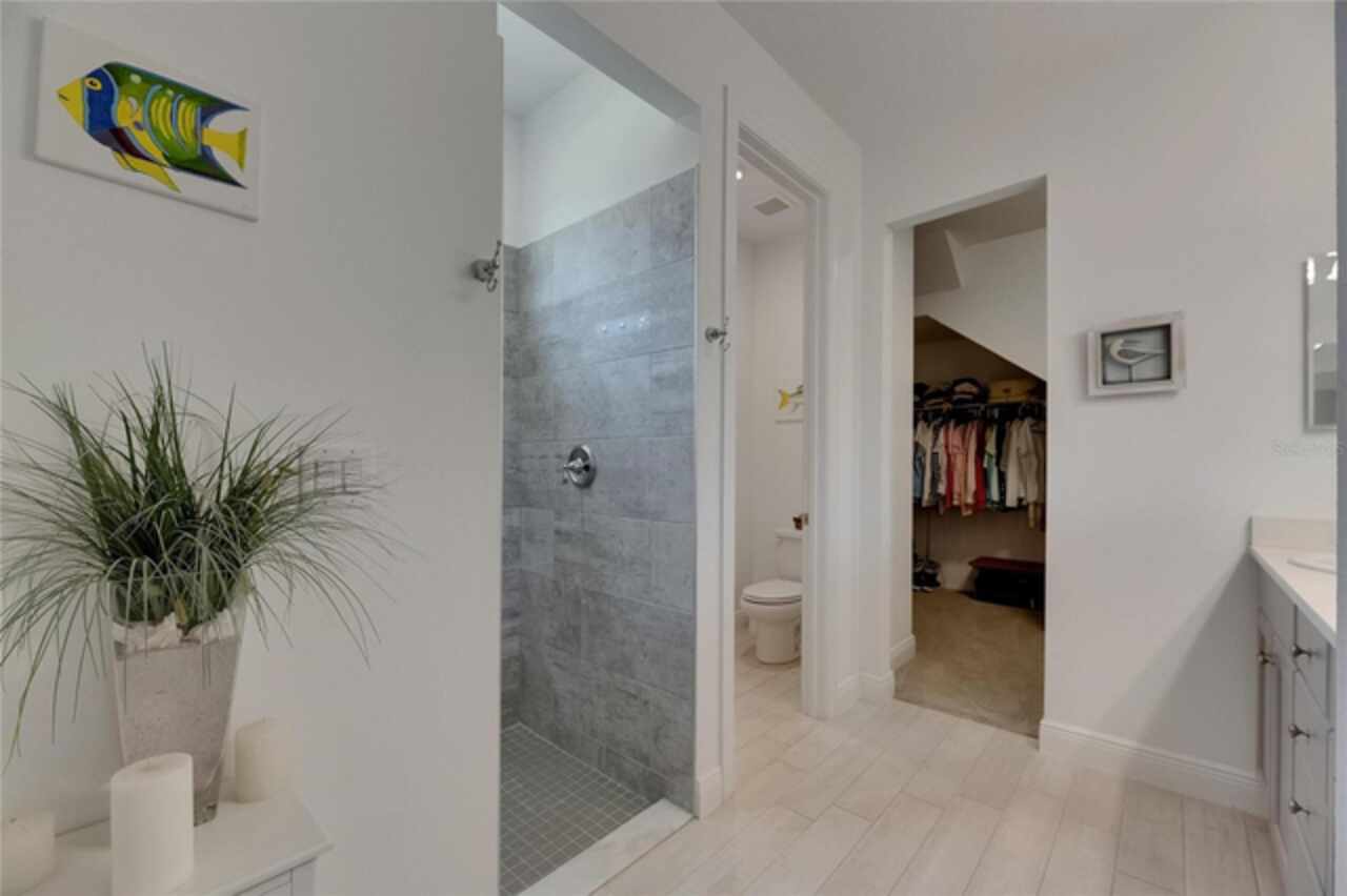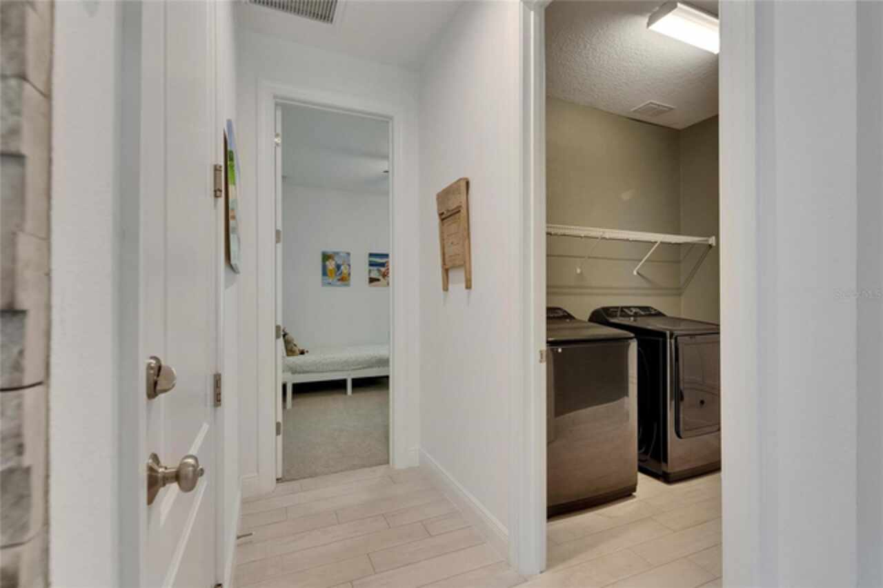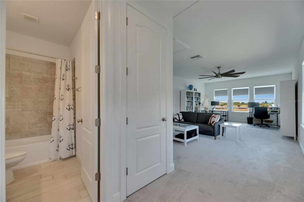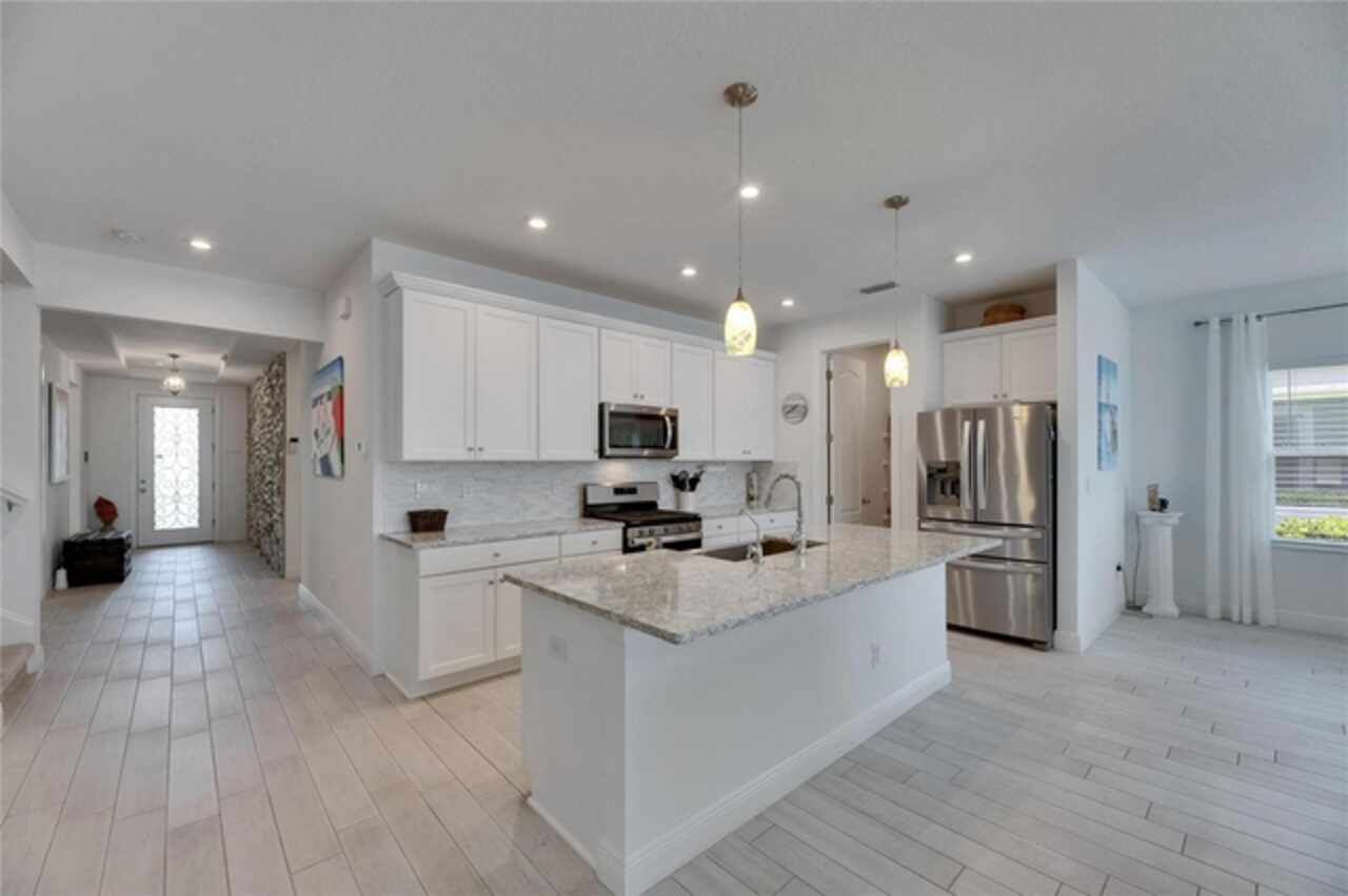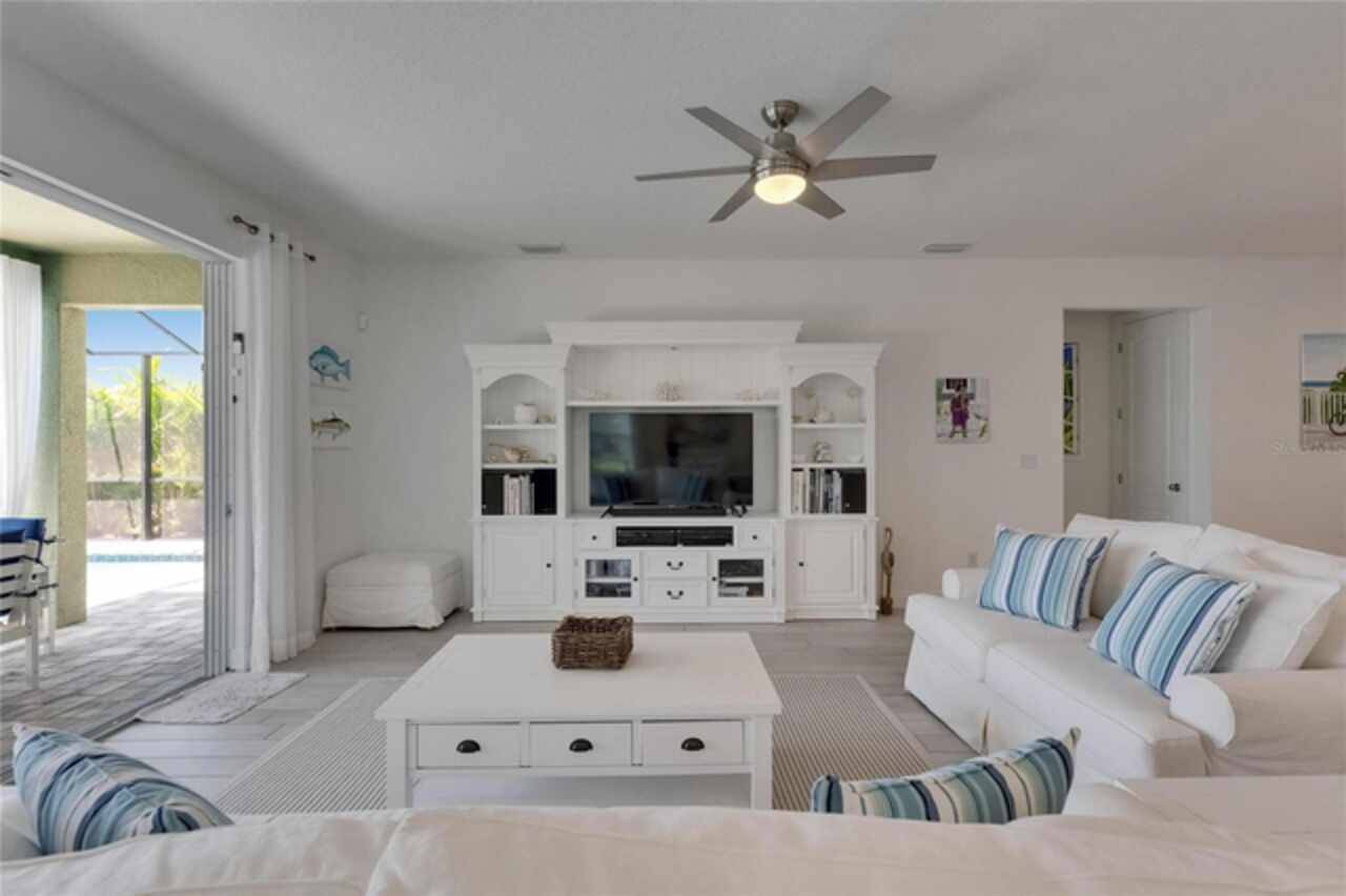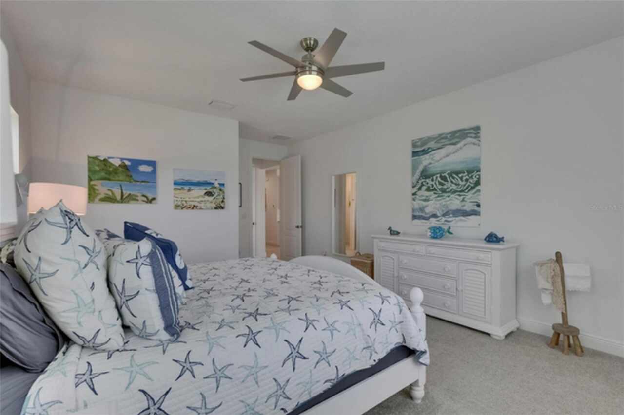 5814 Silver Sun Drive is a beautiful 4-bedroom, 3-bath plus office waterfront pool home located right in the heart of Apollo Beach. With 2, 774 square feet of living space, there’s plenty of room to stretch out and enjoy every part of this home. Built in 2020 by Cardel Homes, this highly popular Northwood II with a second-floor bonus room floorplan has been carefully maintained and feels fresh and ready for new memories. The home features stunning water views with greenspace beyond. The kitchen is open to the living and dining areas and includes light cabinets, quartz countertops, a gas stove, upgraded Whirlpool stainless steel appliances, a walk-in oversized pantry, and a large 8-foot island perfect for gathering. The main living space offers tall ceilings, tall doors, abundant natural light, and easy-to-care-for wood-look plank tile flooring. A true split floorplan, three bedrooms are located downstairs, including the spacious owner's suite, which features an oversized walk-in closet, a spacious shower, and double sinks. The office features glass French doors and is roomy enough for two. Upstairs, there’s a huge bonus room with a full bathroom and a walk-in closet—ideal for guests, a playroom, or a second living space—with breathtaking views overlooking the pond. The backyard is one of the best parts of this home. Step outside to your private pool and spa, surrounded by a panoramic screen enclosure with no beams to obstruct your view. The pool overlooks a peaceful pond with west facing views, making it a perfect spot to relax at the end of the day while you watch the sunset over the water. The extended lanai offers plenty of space for outdoor dining and entertaining. There’s also plenty of room to add a fence and dog run, creating a perfect outdoor haven for your four-legged friends. Additional features include a 2-car garage with epoxy flooring. Family-owned Cardel Homes offers far more quality standard features than most other builders, such as upgraded cabinetry, upgraded quartz and granite, level 2 17”x17” tile, RedGard coating applied under all tile, Bora-Care termite treatment on interior walls, double-glazed low-E windows, 30-year dimensional shingles, pest control tubes in walls, decorative coach lights, vapor barrier steel-reinforced concrete foundation, structurally engineered roof trusses secured with high-strength galvanized steel hurricane straps, and masonry block wall construction with engineered poured concrete cells with steel reinforcement. Waterset is one of Apollo Beach’s favorite neighborhoods, and one of the most highly sought after neighborhoods in the entire county. Packed with community amenities like multiple pools, water slides, a splash park, dog parks, playgrounds, fitness centers, tennis, basketball and pickleball courts, and miles of walking trails. Plus, this home is just a short stroll from one of the neighborhood’s newest parks and pool areas, as well as the newly opened 20-acre outdoor recreation center. Come see why so many are making the move to Waterset — 5814 Silver Sun Drive is ready for you to call it home.