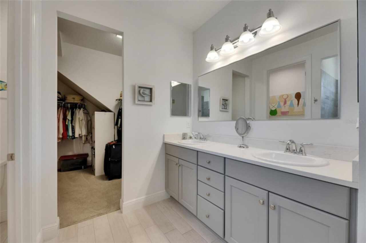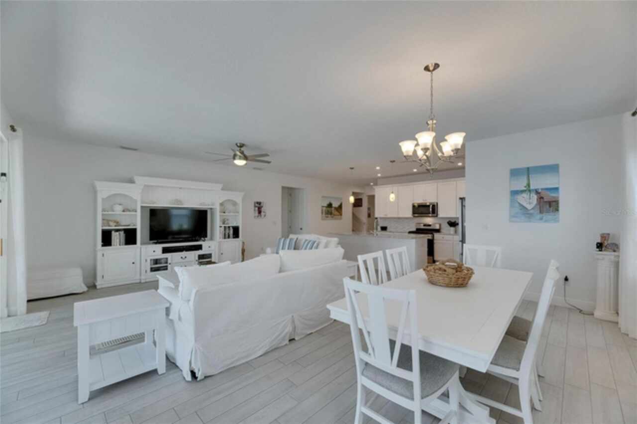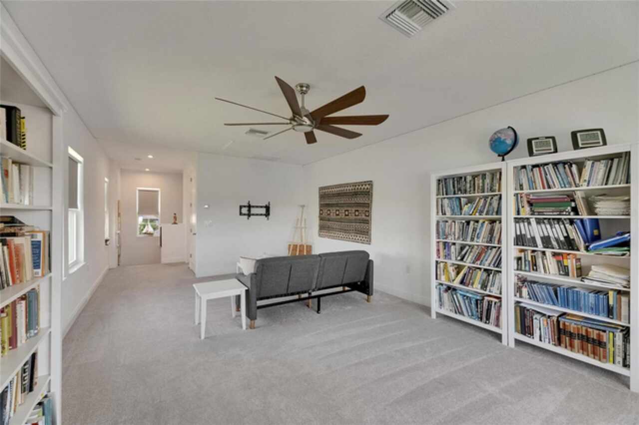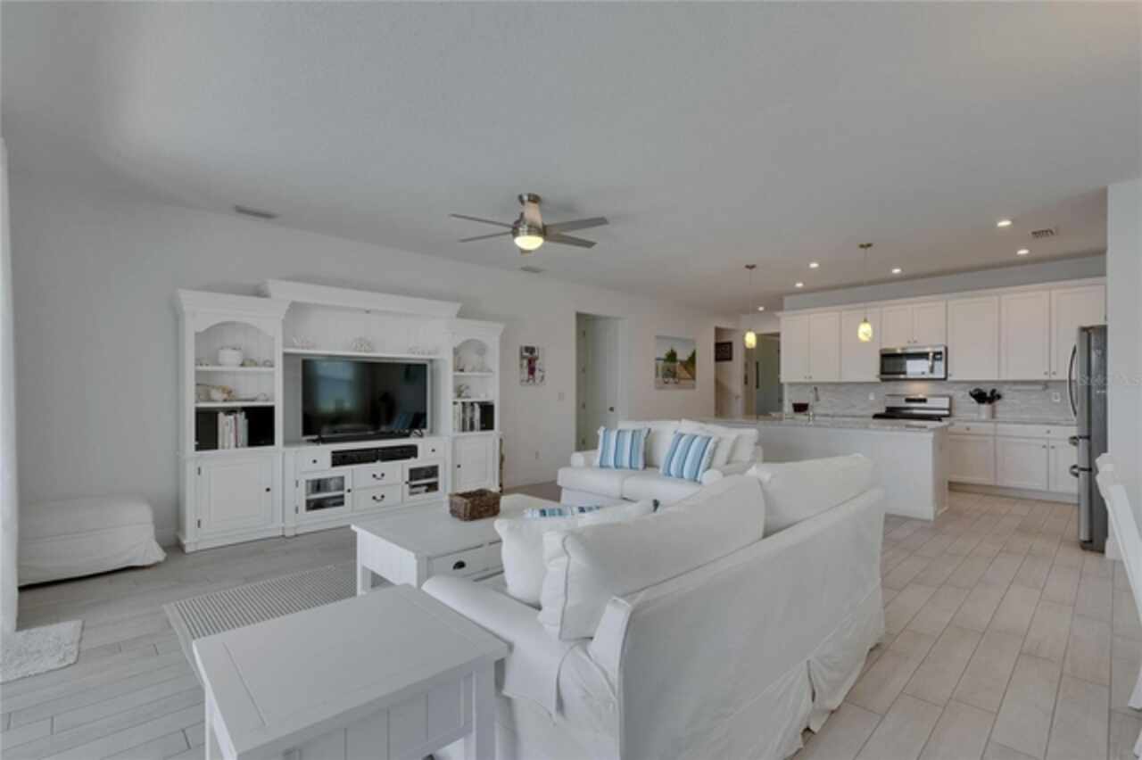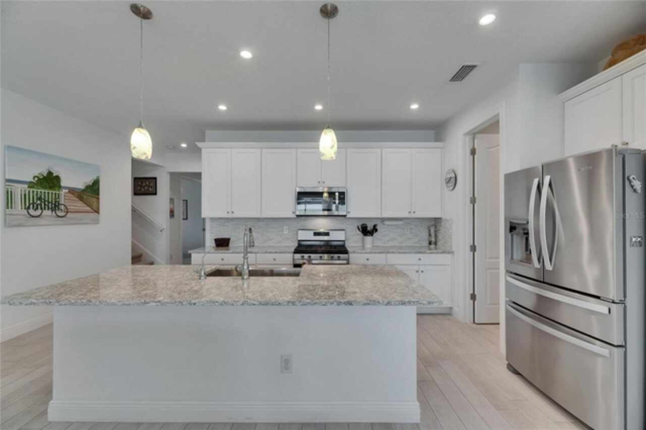 5814 Silver Sun Drive is a beautiful 4-bedroom, 3-bath plus office waterfront pool home located right in the heart of Apollo Beach. With 2, 774 square feet of living space, there’s plenty of room to stretch out and enjoy every part of this home. Built in 2020 by Cardel Homes, this highly popular Northwood II with a second-floor bonus room floorplan has been carefully maintained and feels fresh and ready for new memories. The home features stunning water views with greenspace beyond. The kitchen is open to the living and dining areas and includes light cabinets, quartz countertops, a gas stove, upgraded Whirlpool stainless steel appliances, a walk-in oversized pantry, and a large 8-foot island perfect for gathering. The main living space offers tall ceilings, tall doors, abundant natural light, and easy-to-care-for wood-look plank tile flooring. A true split floorplan, three bedrooms are located downstairs, including the spacious owner's suite, which features an oversized walk-in closet, a spacious shower, and double sinks. The office features glass French doors and is roomy enough for two. Upstairs, there’s a huge bonus room with a full bathroom and a walk-in closet—ideal for guests, a playroom, or a second living space—with breathtaking views overlooking the pond. The backyard is one of the best parts of this home. Step outside to your private pool and spa, surrounded by a panoramic screen enclosure with no beams to obstruct your view. The pool overlooks a peaceful pond with west facing views, making it a perfect spot to relax at the end of the day while you watch the sunset over the water. The extended lanai offers plenty of space for outdoor dining and entertaining. There’s also plenty of room to add a fence and dog run, creating a perfect outdoor haven for your four-legged friends. Additional features include a 2-car garage with epoxy flooring. Family-owned Cardel Homes offers far more quality standard features than most other builders, such as upgraded cabinetry, upgraded quartz and granite, level 2 17”x17” tile, RedGard coating applied under all tile, Bora-Care termite treatment on interior walls, double-glazed low-E windows, 30-year dimensional shingles, pest control tubes in walls, decorative coach lights, vapor barrier steel-reinforced concrete foundation, structurally engineered roof trusses secured with high-strength galvanized steel hurricane straps, and masonry block wall construction with engineered poured concrete cells with steel reinforcement. Waterset is one of Apollo Beach’s favorite neighborhoods, and one of the most highly sought after neighborhoods in the entire county. Packed with community amenities like multiple pools, water slides, a splash park, dog parks, playgrounds, fitness centers, tennis, basketball and pickleball courts, and miles of walking trails. Plus, this home is just a short stroll from one of the neighborhood’s newest parks and pool areas, as well as the newly opened 20-acre outdoor recreation center. Come see why so many are making the move to Waterset — 5814 Silver Sun Drive is ready for you to call it home.