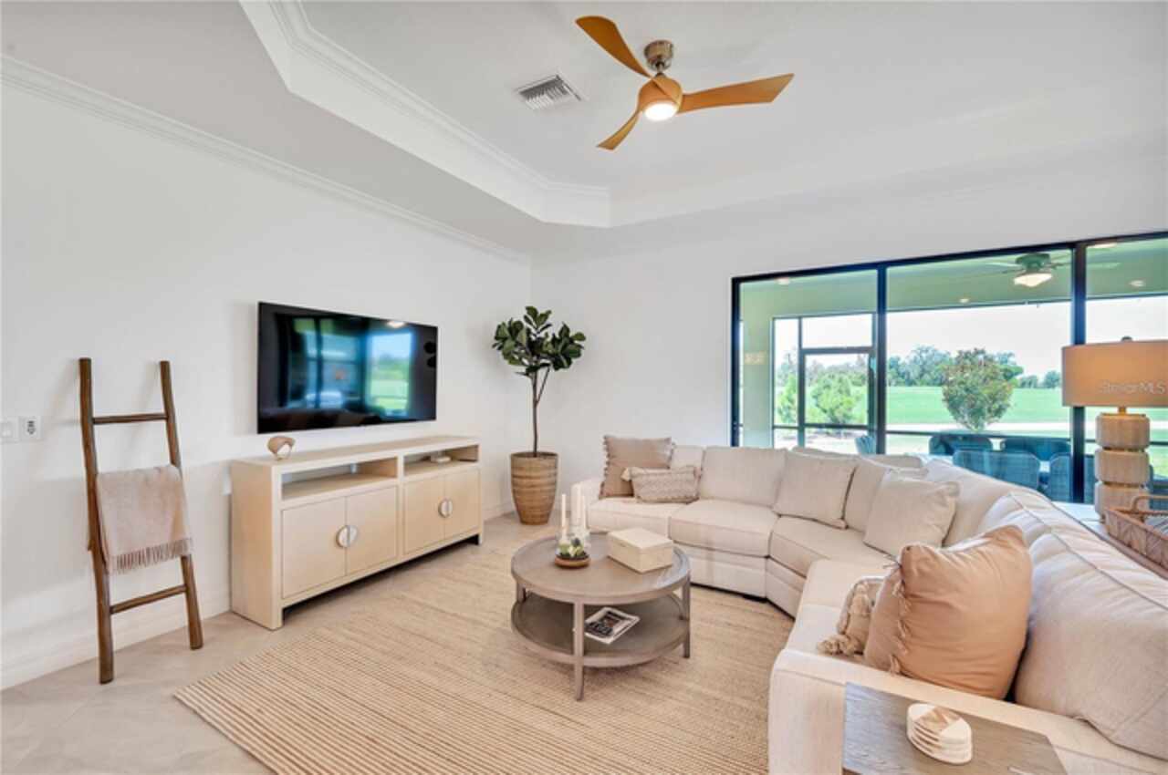 One of the lowest-priced single-family homes in Lakewood National. This quaint but elegant TURNKEY FURNISHED executive home has three bedrooms and two and a half bathrooms, with custom details throughout. The primary bedroom is a tranquil retreat, complete with a spacious walk-in closet and an en-suite bathroom featuring dual sinks and a luxurious walk-in shower. The third bedroom could be used as a bedroom, den, or office. The gourmet kitchen is a chef’s dream, offering granite countertops, a spacious granite island, a wall oven, a microwave, and a cooktop. If you have been waiting for a single-family home with unique finishes and designer touches that has been meticulously maintained, look no further! This is the home you have been waiting for. This Victoria floor plan offers an open-concept living space and efficiently utilizes the area, which has been strikingly enhanced. The living space is comfortable yet provides a warm and inviting space for both entertaining and relaxation. Once inside, you will immediately notice the tastefully and professionally designed and decorated home, which is carried throughout the entire space. The open floor plan is great for entertaining family and friends while overlooking the GOLF COURSE. The Outdoor area, complete with a summer kitchen, is perfect for enjoying after a round of golf. This home is the only model home in Lakewood National that has a dedicated outdoor pool bath. Lakewood National is a gated community with a 24-hour manned guard gate, a 36-hole Arnold Palmer-designed golf course, a luxurious clubhouse with fine dining, a tiki bar, and a state-of-the-art fitness center. Residents have access to luxury spa services as well as tennis, Pickleball, and bocce courts. The location has easy access to downtown Lakewood Ranch, sports facilities, shopping, dining, and top-rated schools. Lakewood Ranch has been the #1 multi-generational master-planned community for six years running. This home is also conveniently located a short drive from Sarasota and Tampa airports, as well as some of the nation’s most beautiful beaches. This isn’t just a home—it’s the ultimate lifestyle experience. OWNER IS ALSO OFFERING A LEASE WITH AN OPTION TO PURCHASE THE HOME or OWNER FINANCING WITH 5/Y Balloon FOR THE RIGHT BUYER (NEGOTIABLE TERMS). Home is also available for rent. Ask for details.