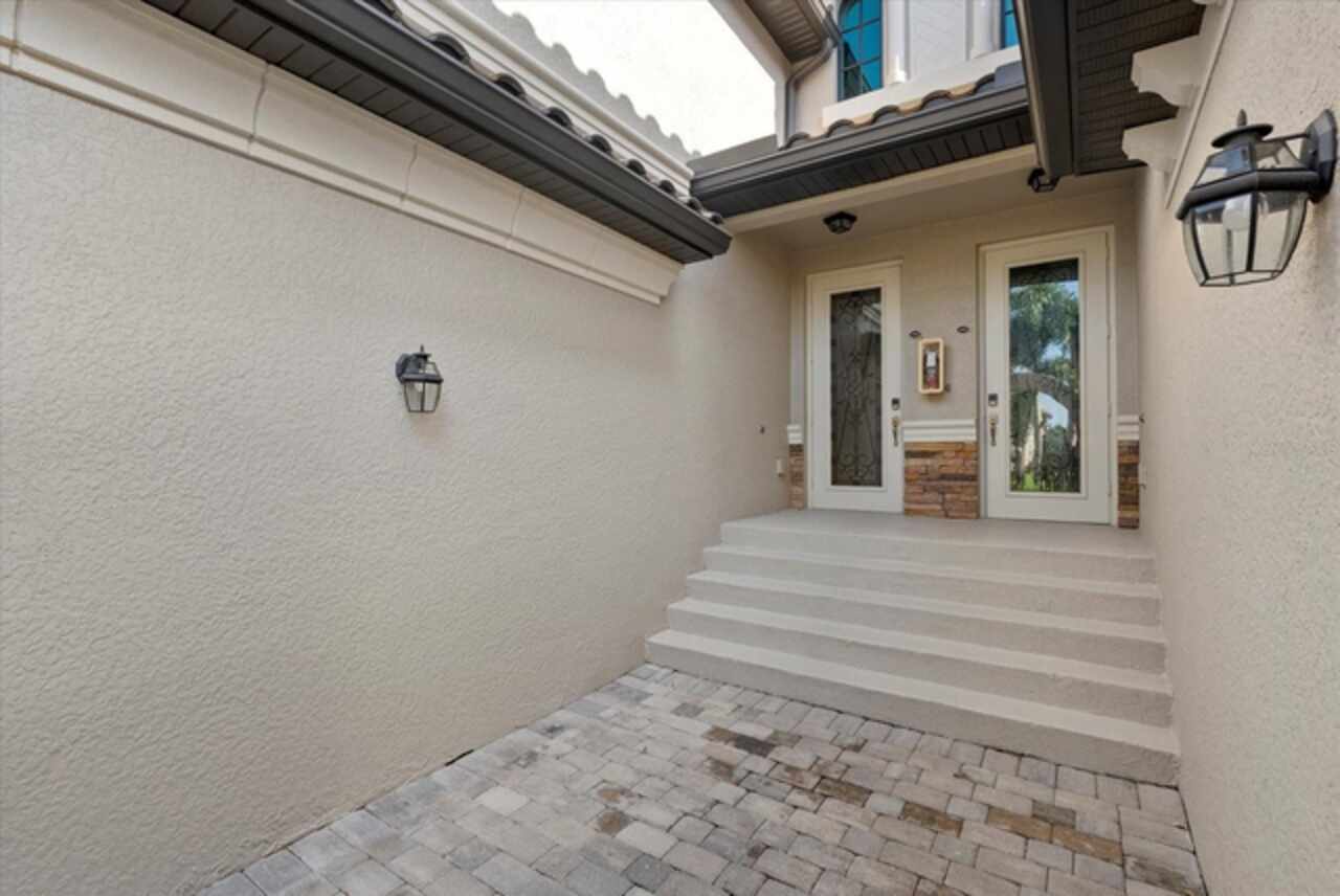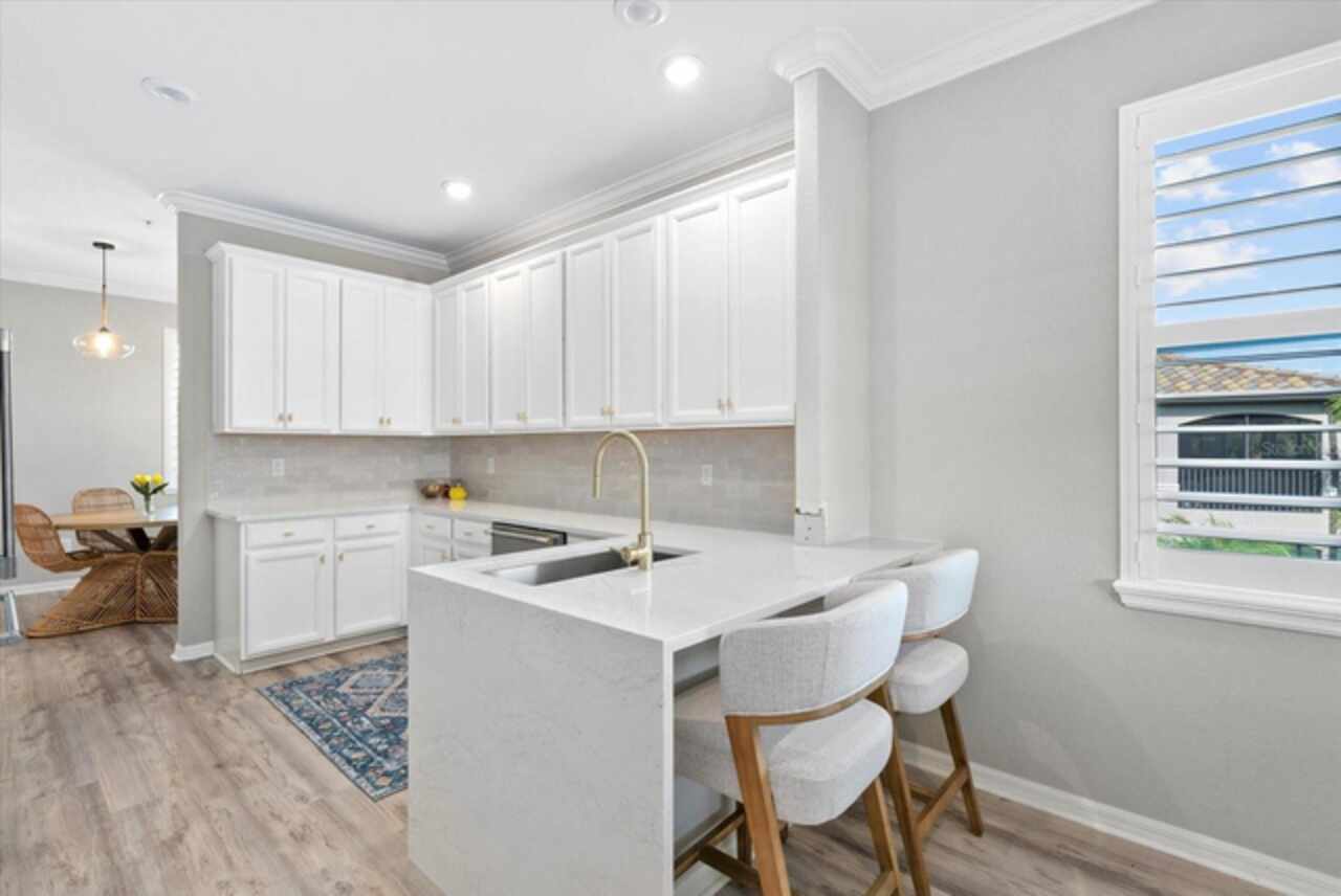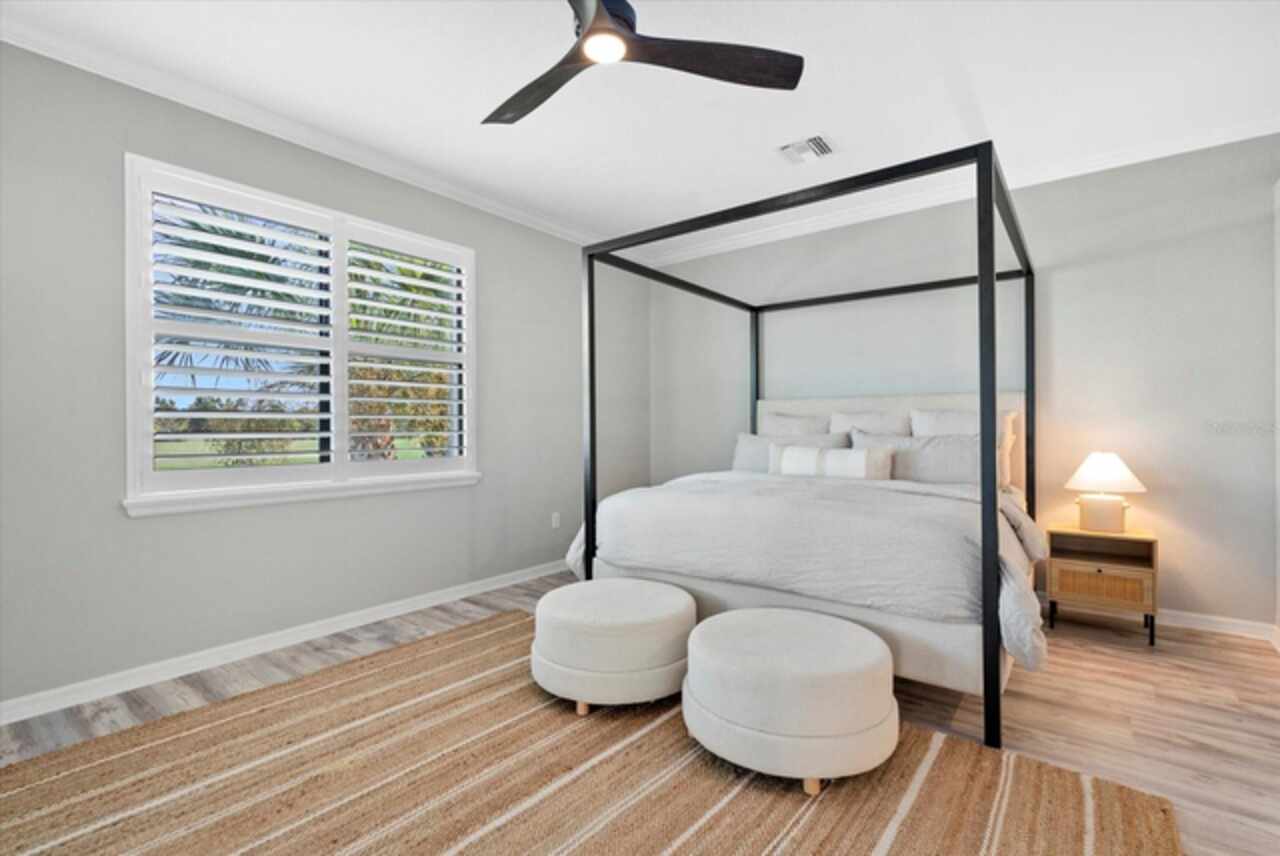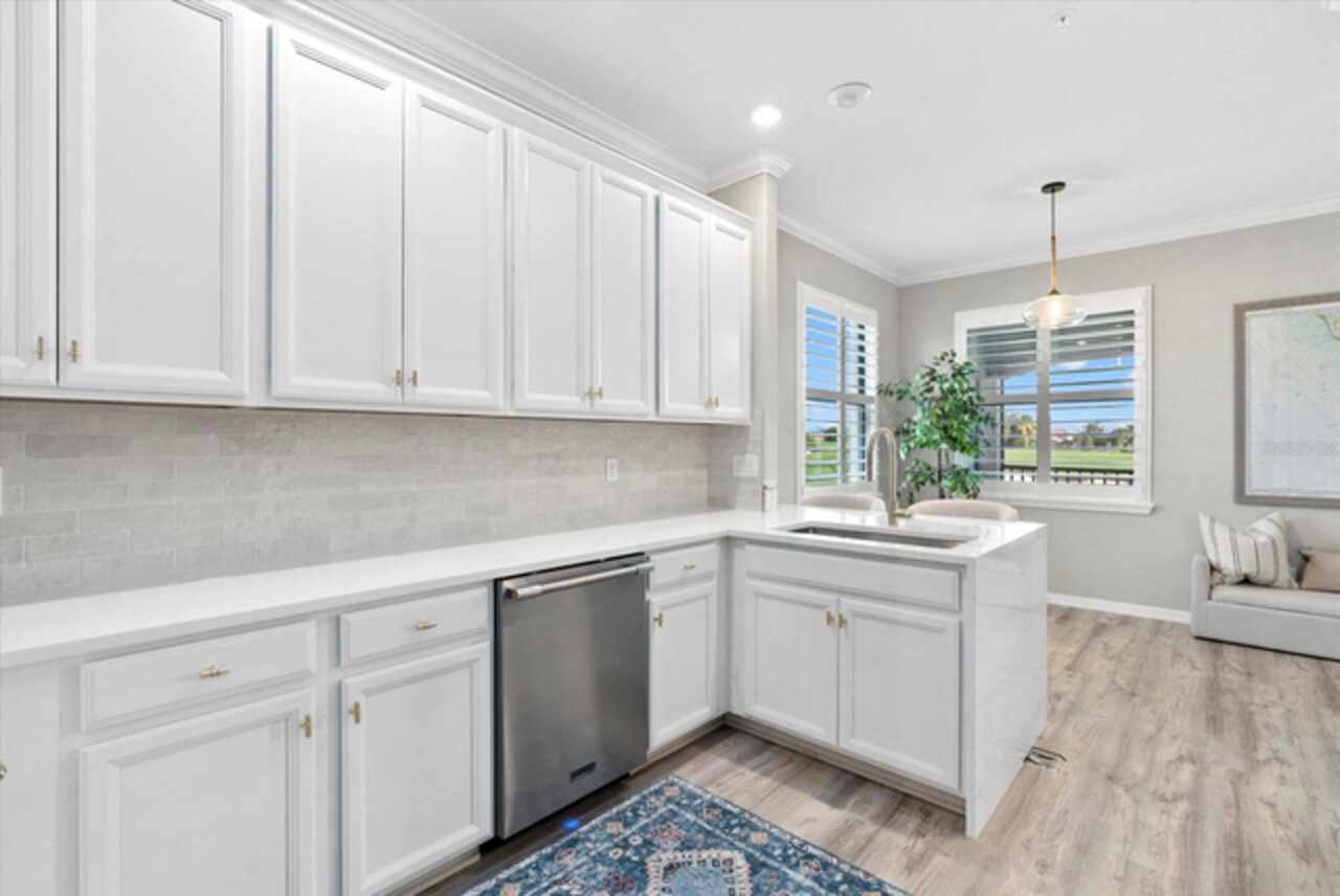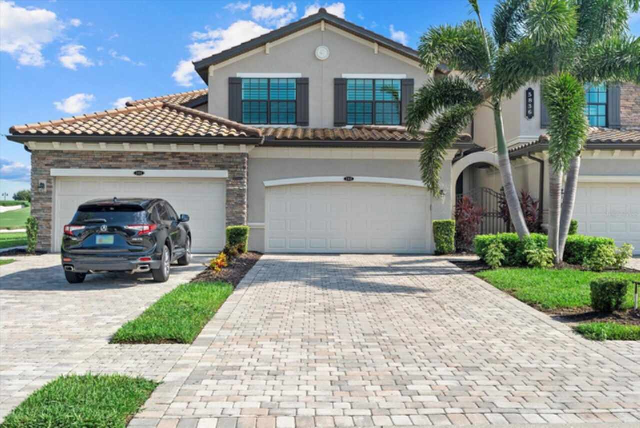 Enjoy luxury living in this beautifully renovated 3-bed, 2-bath home in the gated community of Lakewood National Golf Club. Perfectly positioned on the 18th hole of the Commander Course, this residence combines elegance with resort-style living. Recent upgrades include a renovated kitchen with Thermador range and new stainless appliances (2025), a complete second bathroom remodel, LVP flooring throughout, plantation shutters, and a custom TV wall in the living room. Additional highlights: upgraded washer/dryer, remodeled stairway and entry, and epoxy-coated garage floor with tandem space ideal for a golf cart or workshop. Residents enjoy access to two Arnold Palmer-designed golf courses, a resort pool with waterfalls and dining, a full-service spa, fitness center, tennis, pickleball, and a grand clubhouse with fine dining and social events. Whether full-time or seasonal, this home offers the perfect blend of comfort, style, and community.
