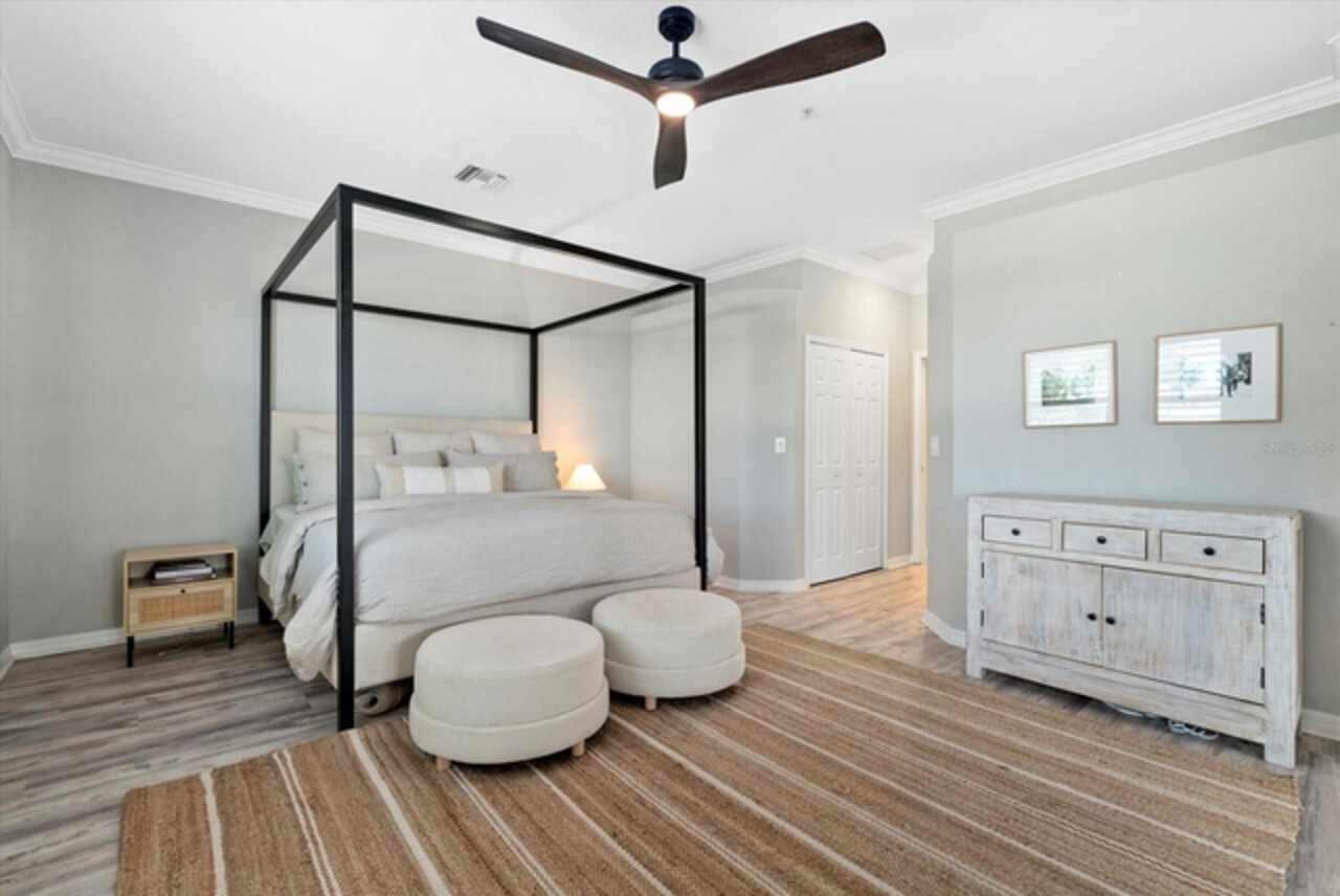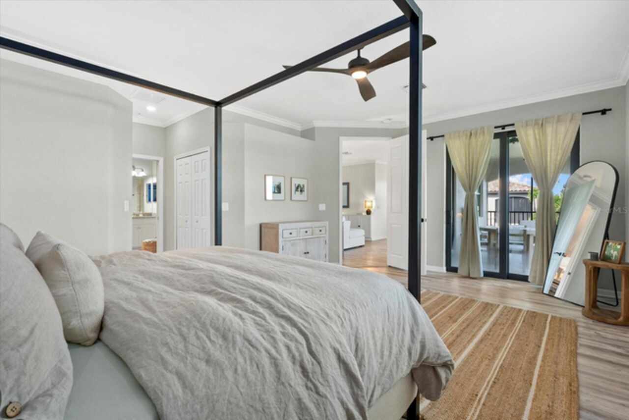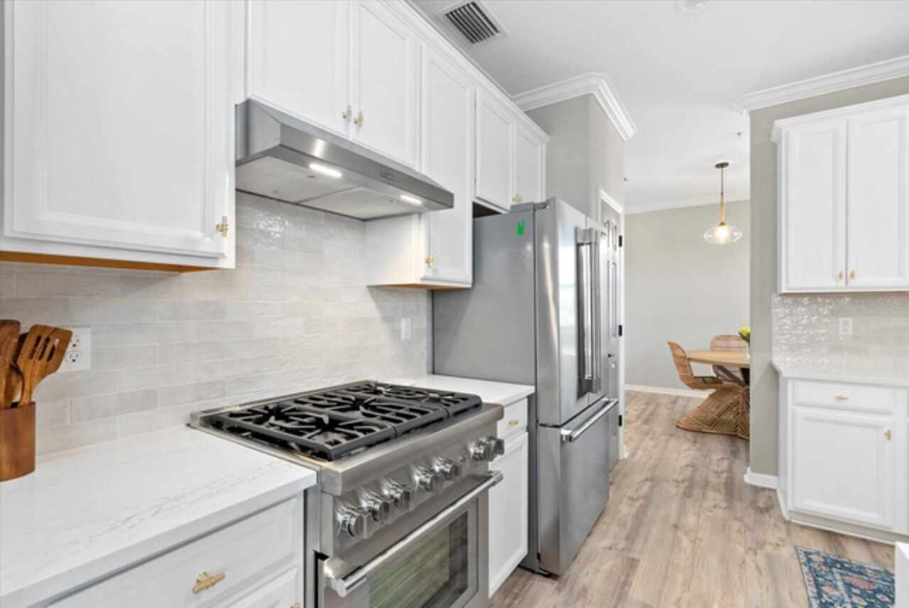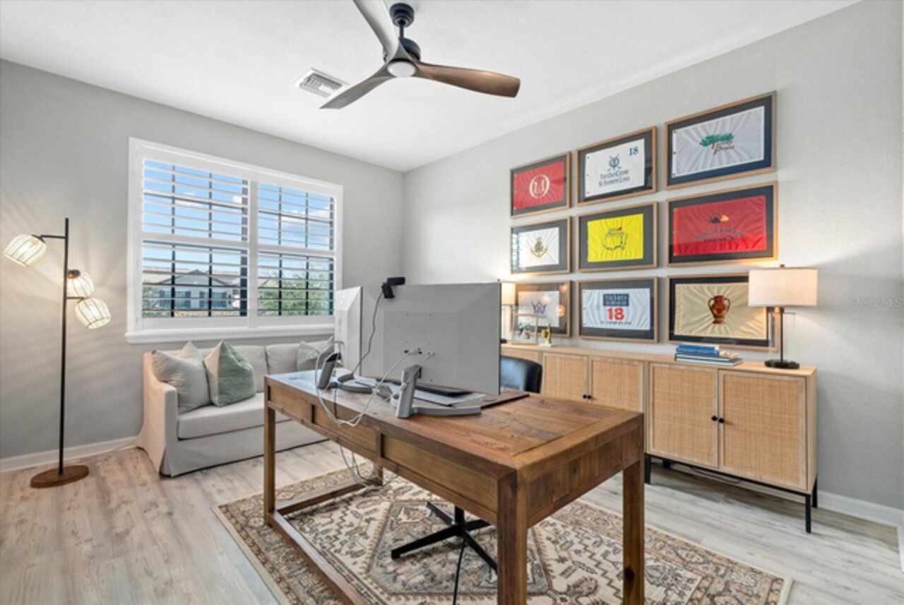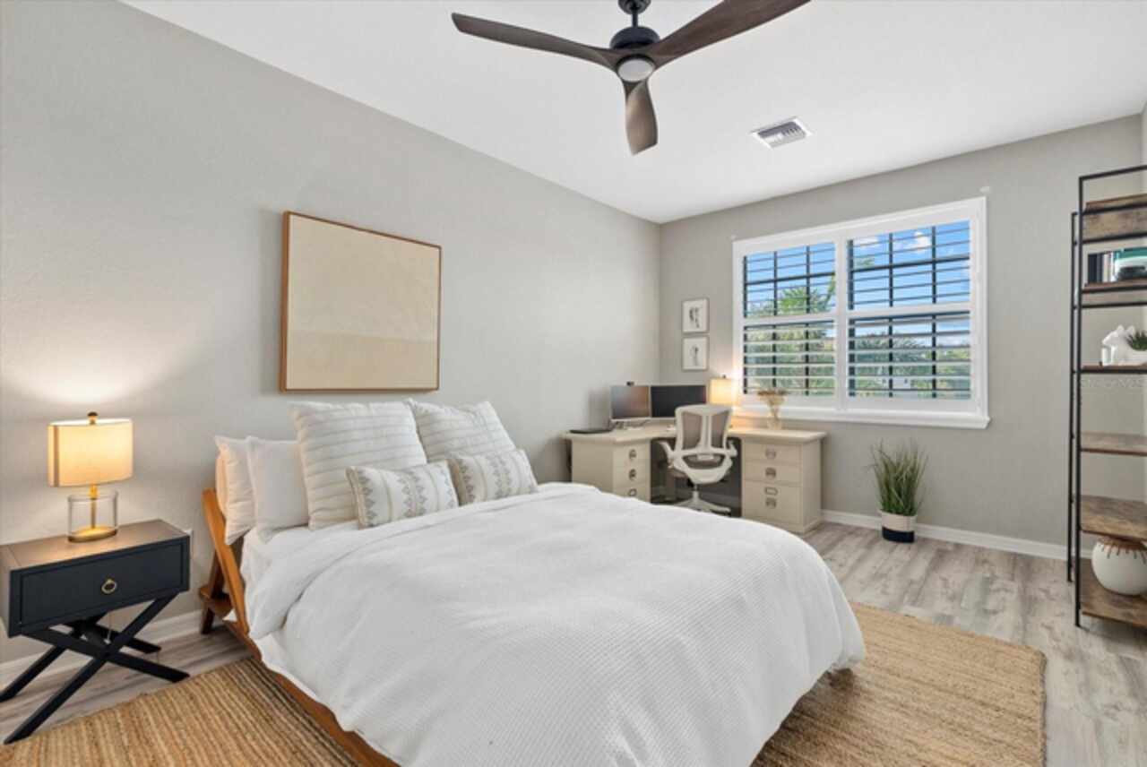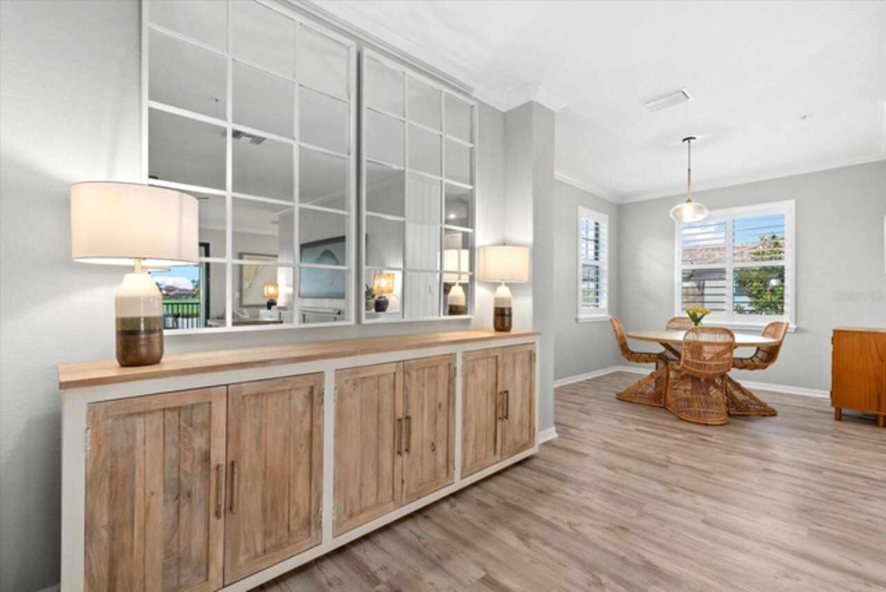 Enjoy luxury living in this beautifully renovated 3-bed, 2-bath home in the gated community of Lakewood National Golf Club. Perfectly positioned on the 18th hole of the Commander Course, this residence combines elegance with resort-style living. Recent upgrades include a renovated kitchen with Thermador range and new stainless appliances (2025), a complete second bathroom remodel, LVP flooring throughout, plantation shutters, and a custom TV wall in the living room. Additional highlights: upgraded washer/dryer, remodeled stairway and entry, and epoxy-coated garage floor with tandem space ideal for a golf cart or workshop. Residents enjoy access to two Arnold Palmer-designed golf courses, a resort pool with waterfalls and dining, a full-service spa, fitness center, tennis, pickleball, and a grand clubhouse with fine dining and social events. Whether full-time or seasonal, this home offers the perfect blend of comfort, style, and community.