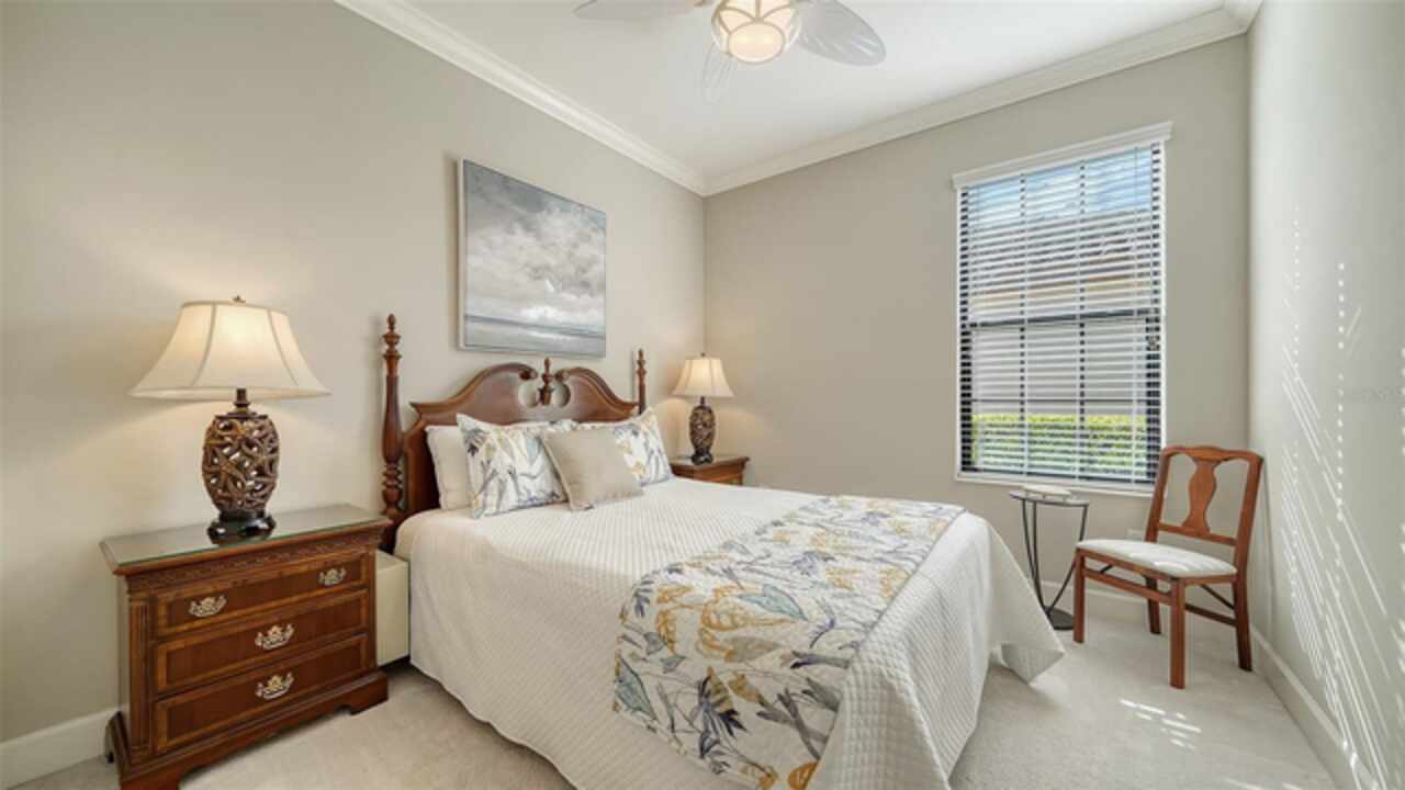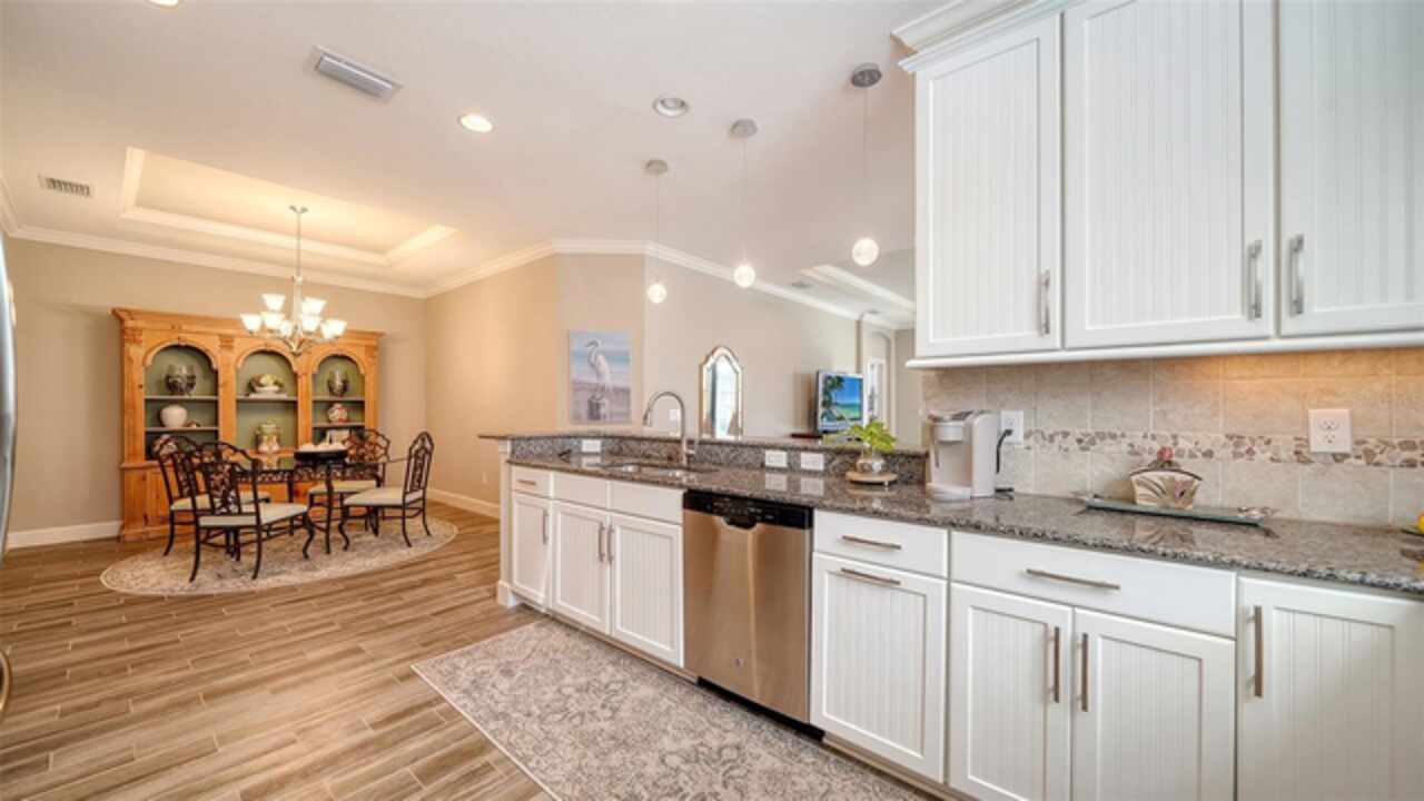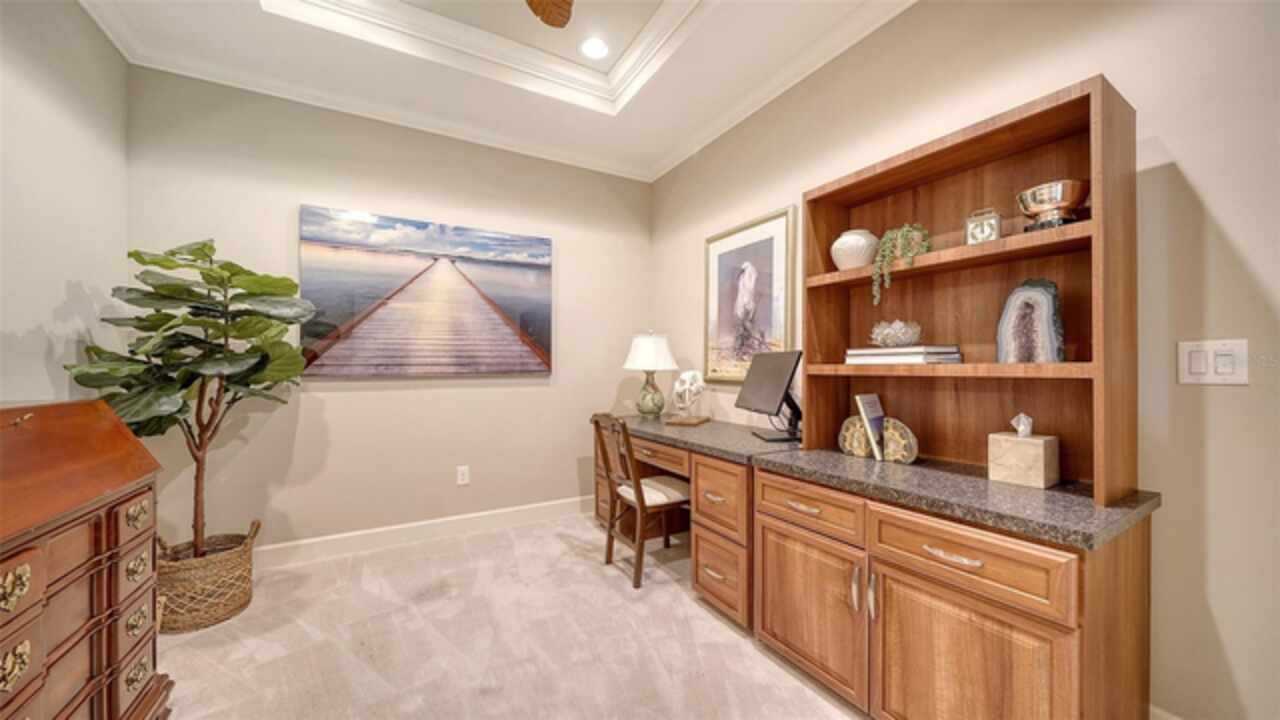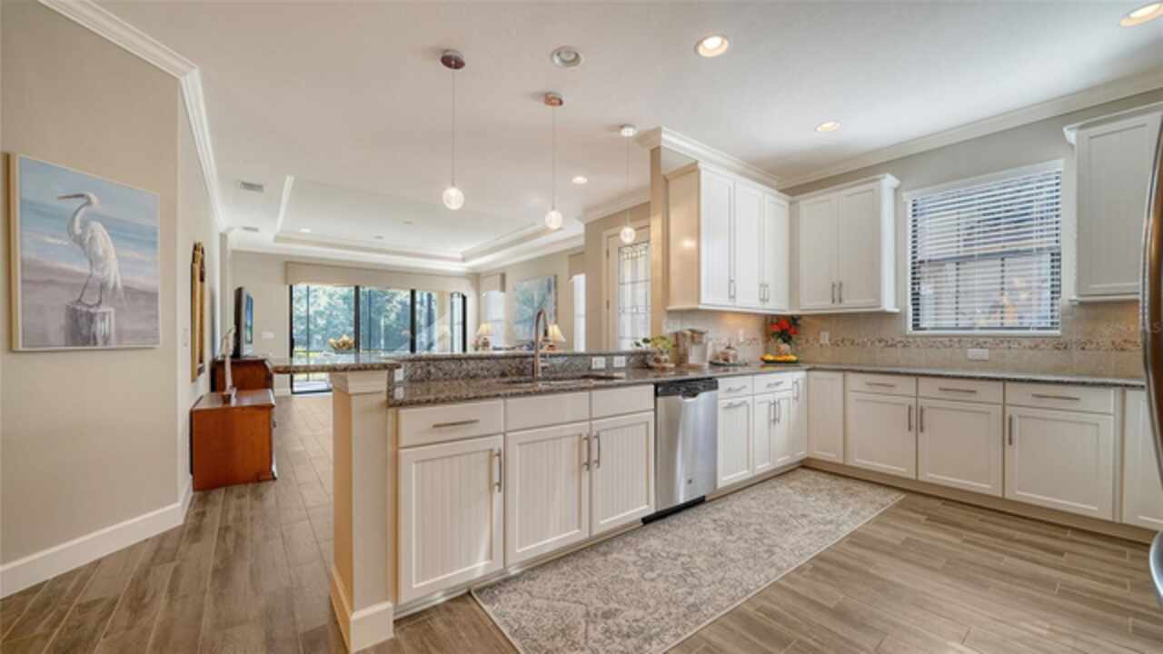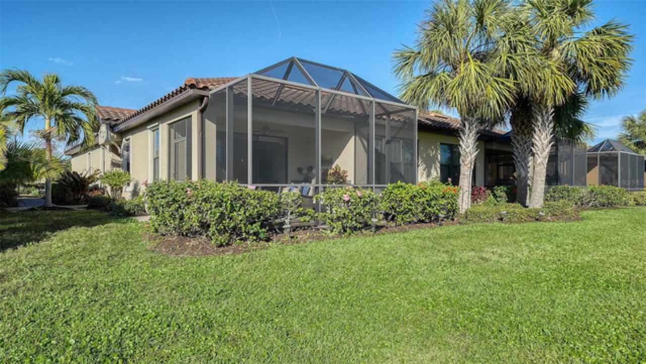 Minutes to world-famous SIESTA KEY BEACH. Discover relaxed, resort-style living in this beautifully maintained 3-bedroom + den residence with tranquil lake and tree-lined views. Offering nearly 1, 900 sq. ft., this home is tucked within a gated, maintenance-free community and the perfect set of amenities. Elegant details abound—tray ceilings, crown molding, recessed lighting, and porcelain plank tile flooring throughout. A new A/C (2024) ensures year-round comfort. The open great room flows seamlessly to the extended screened lanai, designed for easy entertaining with a fully equipped outdoor kitchen featuring a built-in BBQ, sink, and mini fridge. Wake up to peaceful water views from the primary suite, complete with a generous walk-in closet, dual vanities, a walk-in shower with bench, and a private water closet. A versatile den with pocket doors is perfect for a home office, media room, or additional guest space. The split-bedroom layout offers ideal privacy for family or guests. Esplanade by Siesta Key delivers a true resort lifestyle with a clubhouse, heated zero-entry pool and spa, fitness center, tennis and pickleball courts, bocce ball, and dog park. HOA fees include exterior maintenance, landscaping, and roof care, plus the benefit of an on-site manager and lifestyle coordinator. Immaculate condition, ideal location, and furnishings available separately—this is the total package.