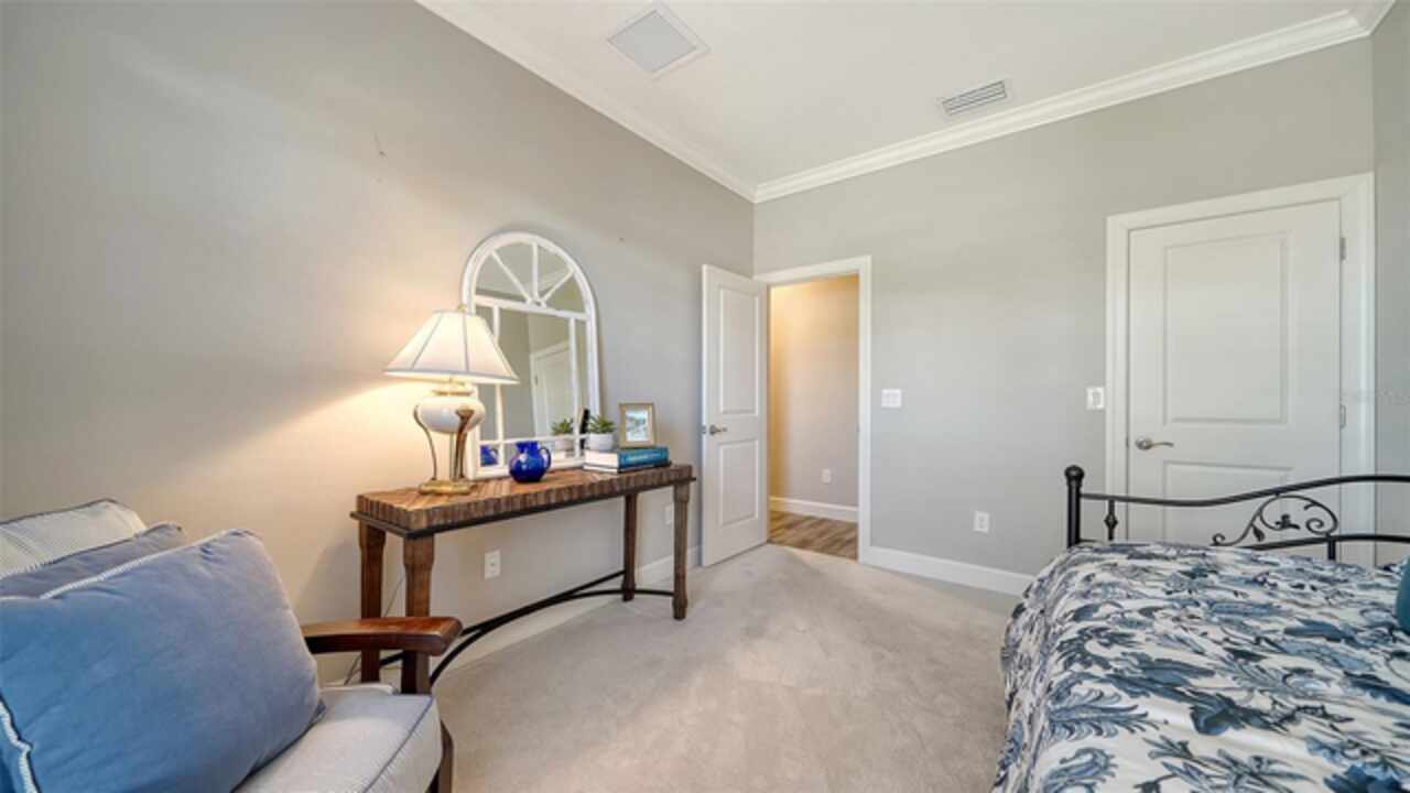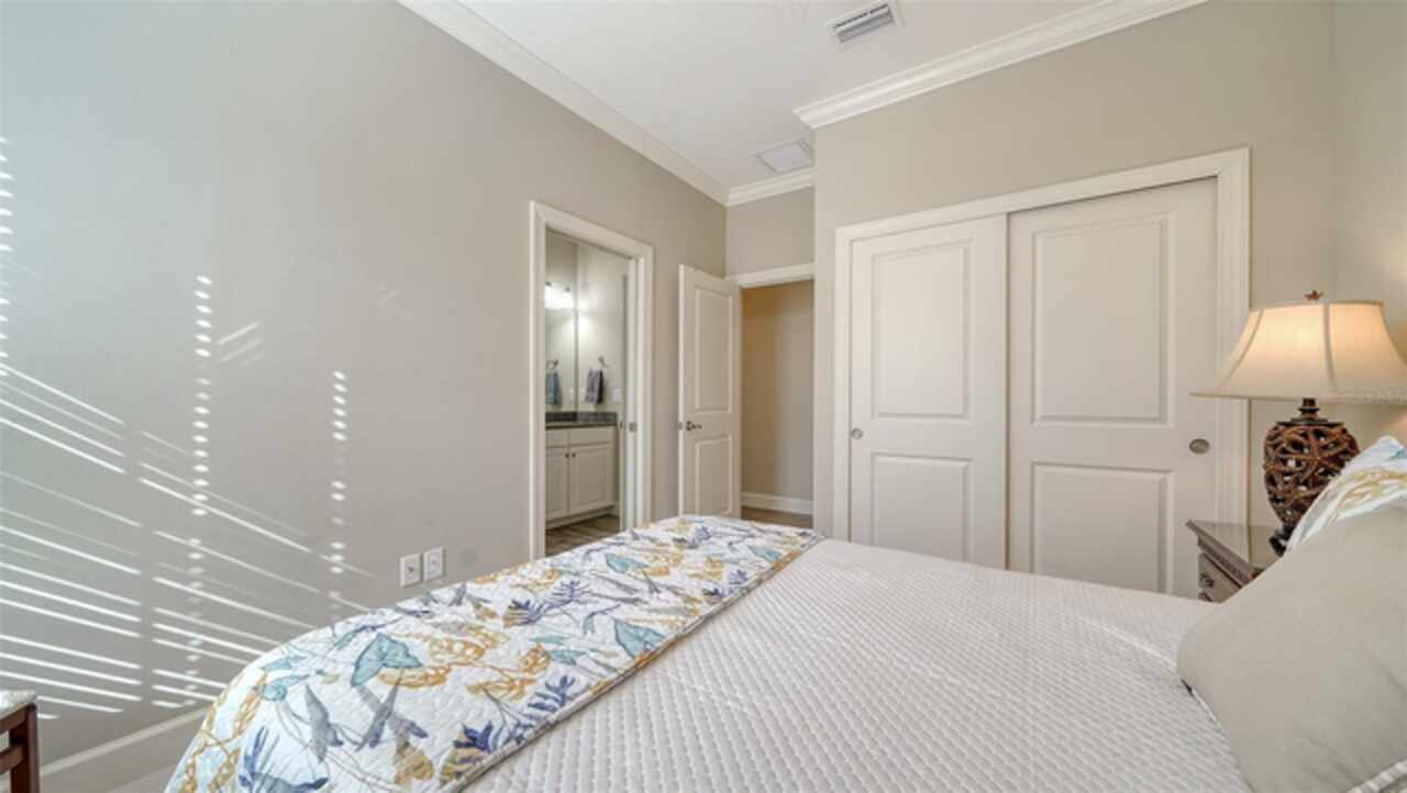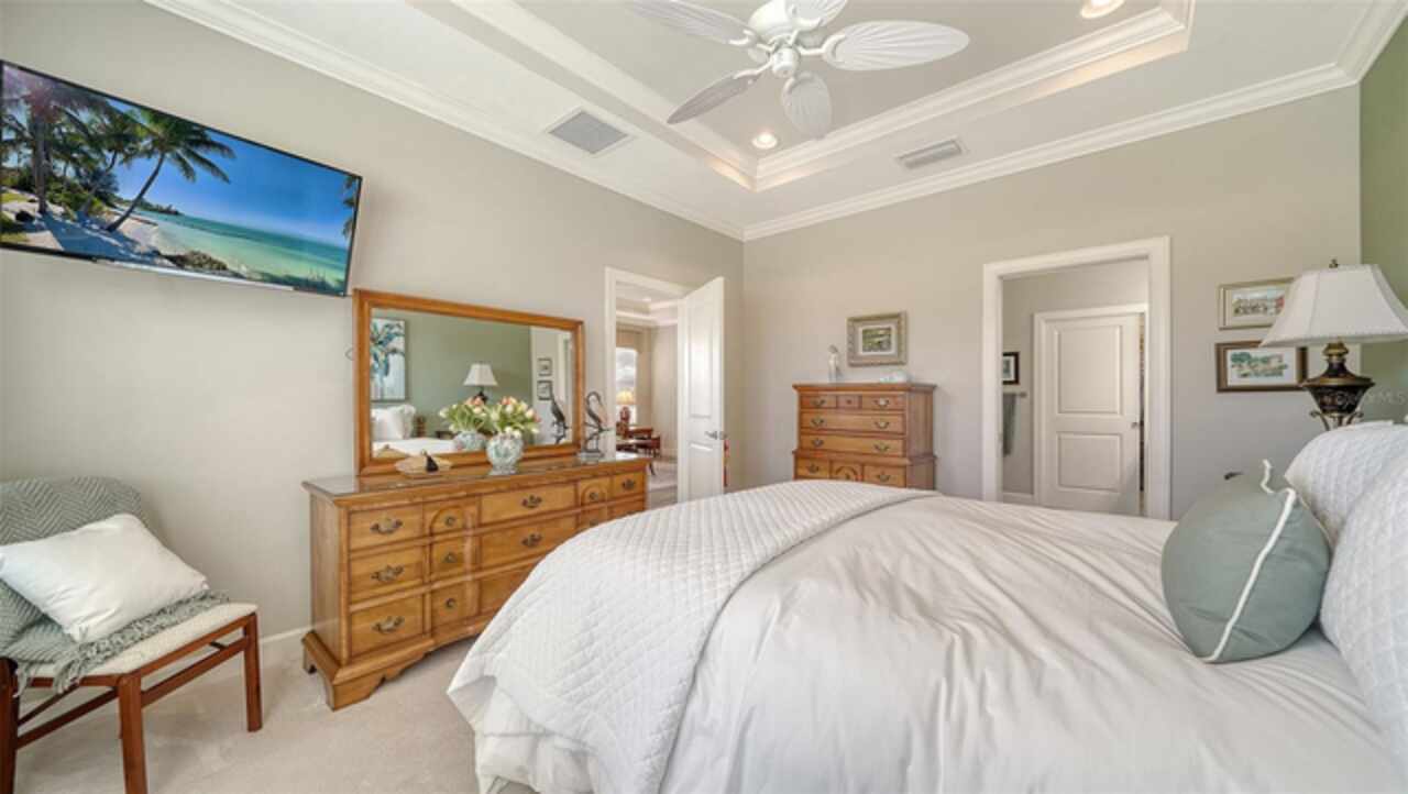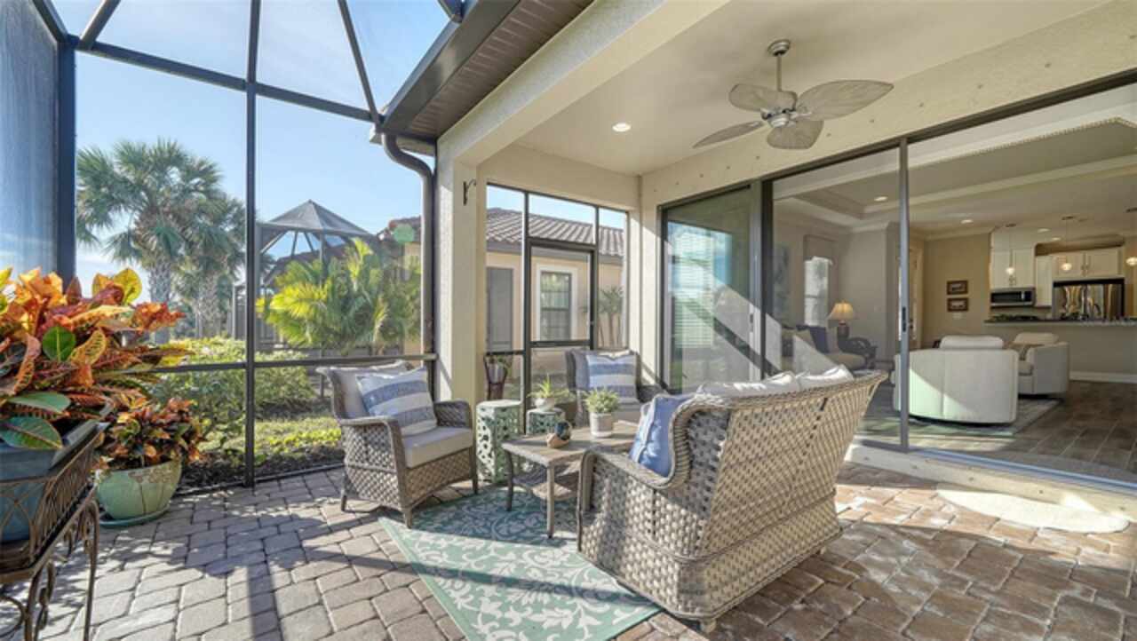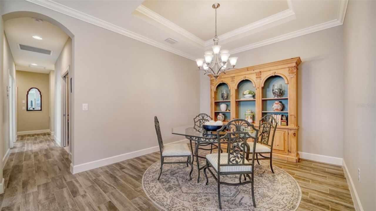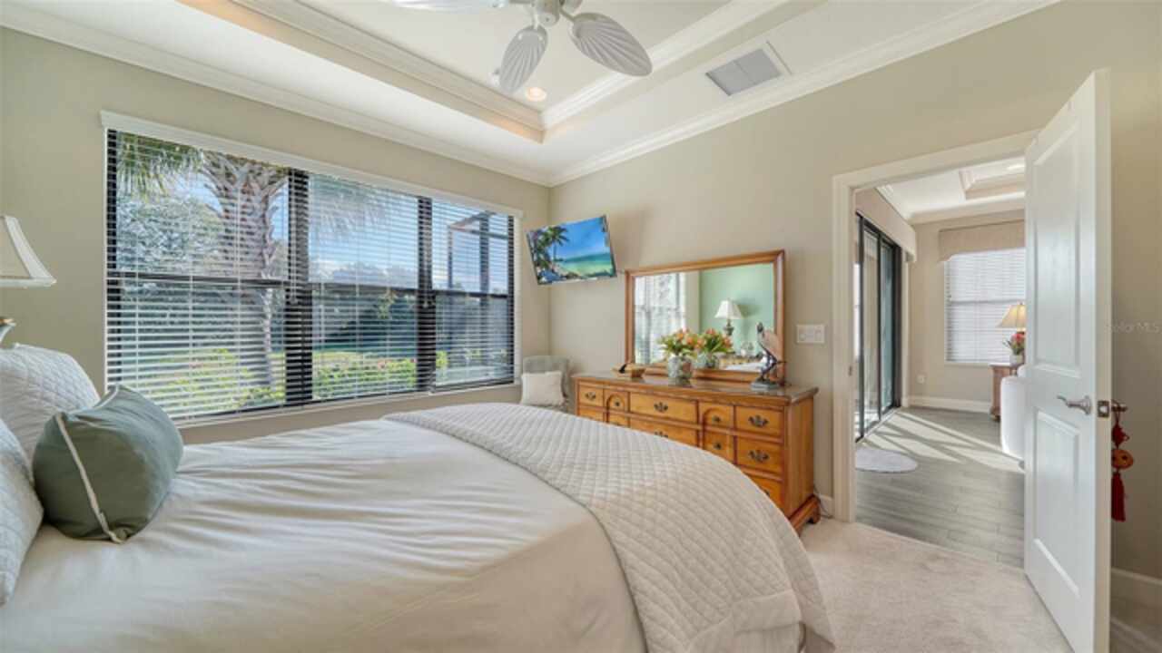 Minutes to world-famous SIESTA KEY BEACH. Discover relaxed, resort-style living in this beautifully maintained 3-bedroom + den residence with tranquil lake and tree-lined views. Offering nearly 1, 900 sq. ft., this home is tucked within a gated, maintenance-free community and the perfect set of amenities. Elegant details abound—tray ceilings, crown molding, recessed lighting, and porcelain plank tile flooring throughout. A new A/C (2024) ensures year-round comfort. The open great room flows seamlessly to the extended screened lanai, designed for easy entertaining with a fully equipped outdoor kitchen featuring a built-in BBQ, sink, and mini fridge. Wake up to peaceful water views from the primary suite, complete with a generous walk-in closet, dual vanities, a walk-in shower with bench, and a private water closet. A versatile den with pocket doors is perfect for a home office, media room, or additional guest space. The split-bedroom layout offers ideal privacy for family or guests. Esplanade by Siesta Key delivers a true resort lifestyle with a clubhouse, heated zero-entry pool and spa, fitness center, tennis and pickleball courts, bocce ball, and dog park. HOA fees include exterior maintenance, landscaping, and roof care, plus the benefit of an on-site manager and lifestyle coordinator. Immaculate condition, ideal location, and furnishings available separately—this is the total package.