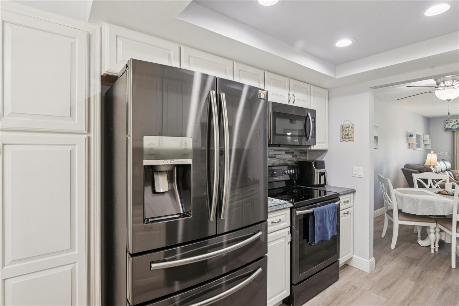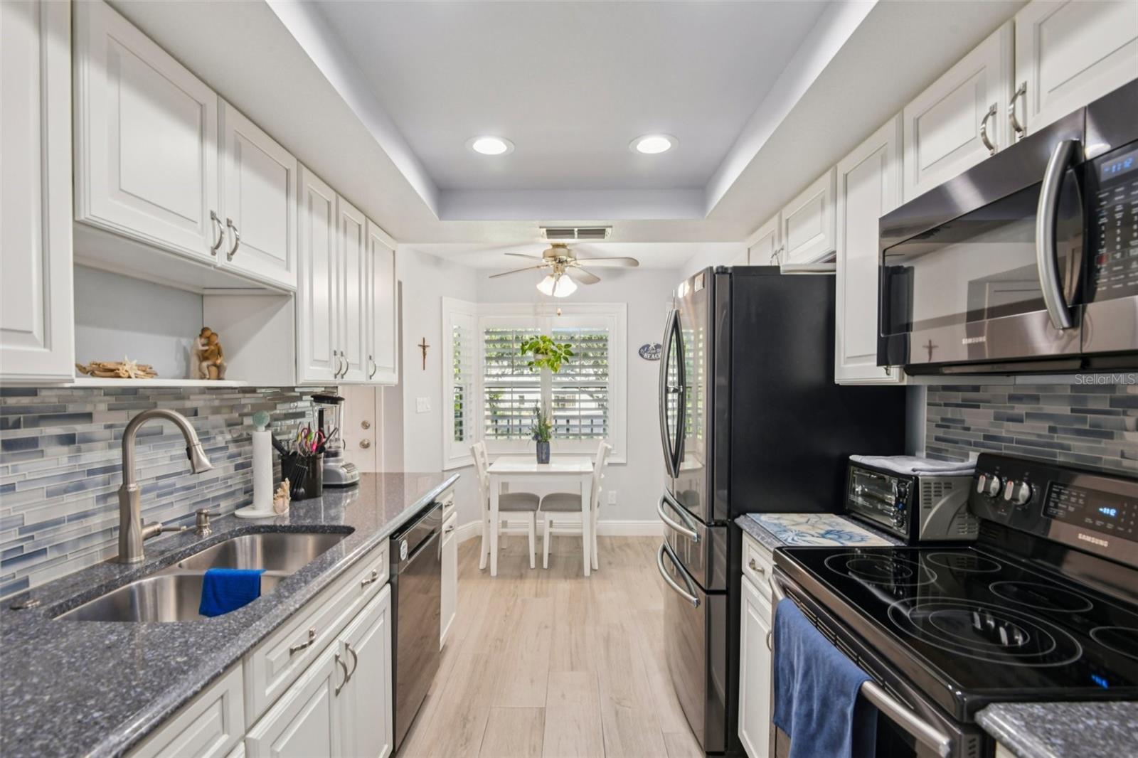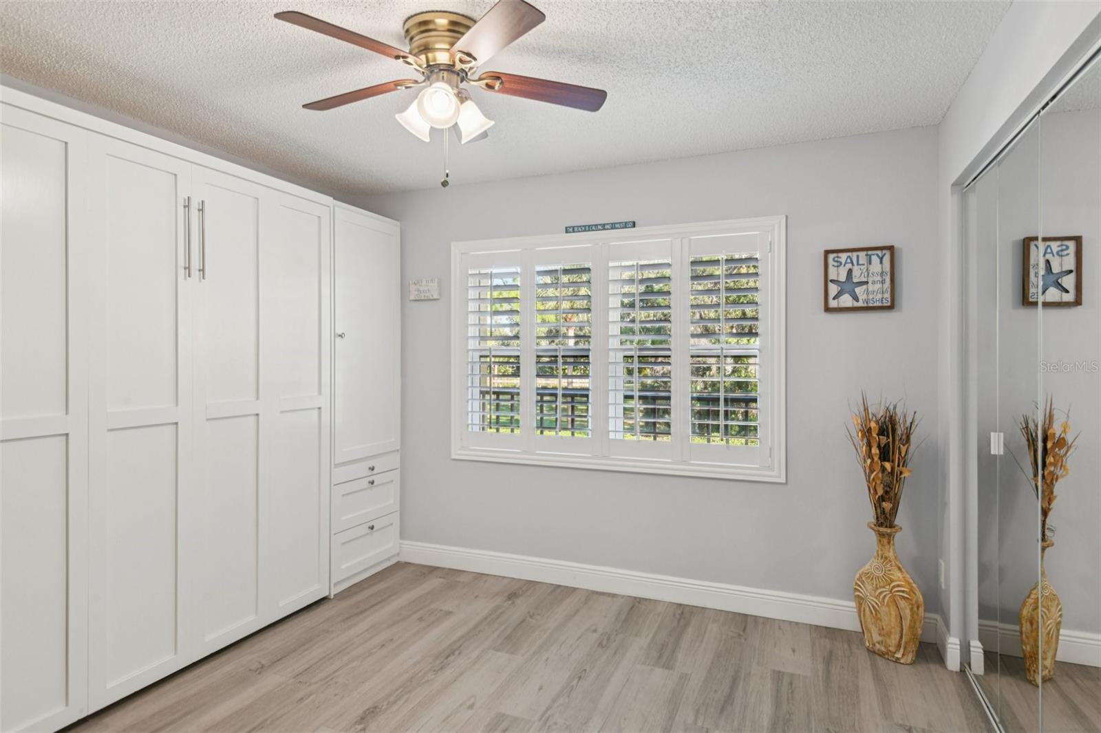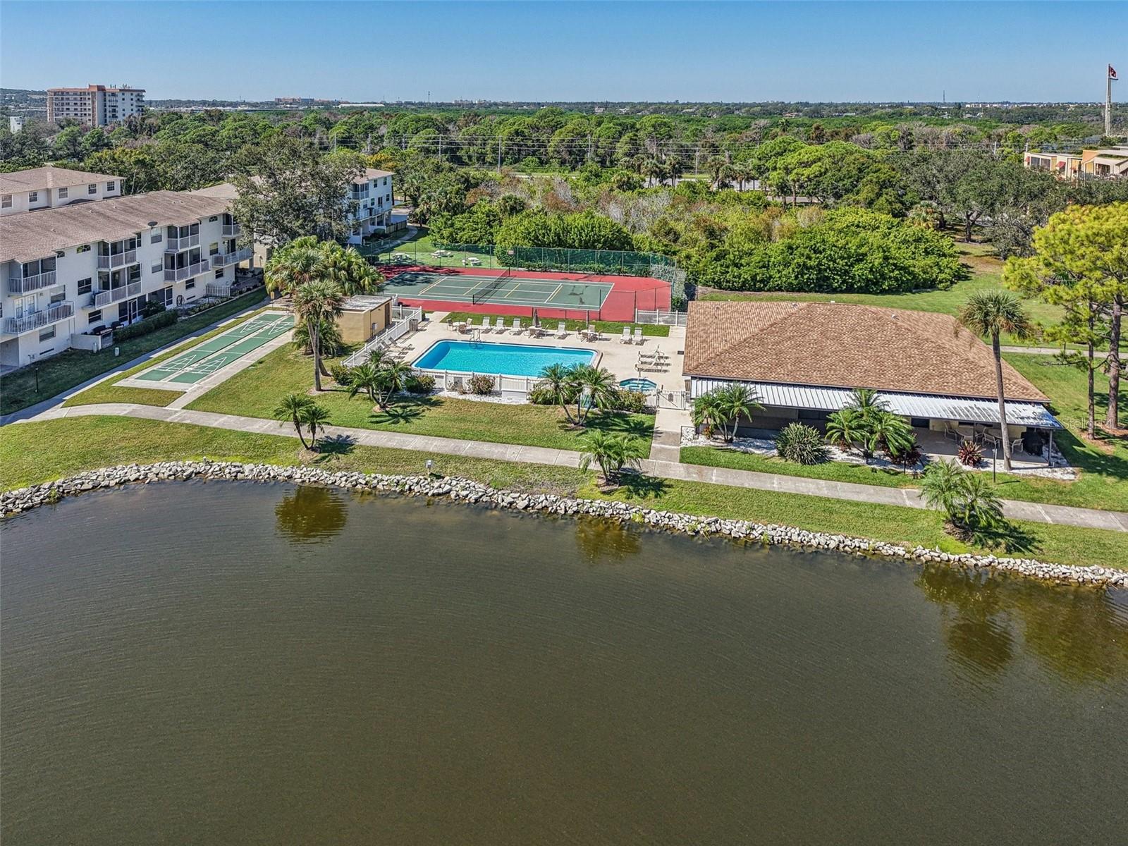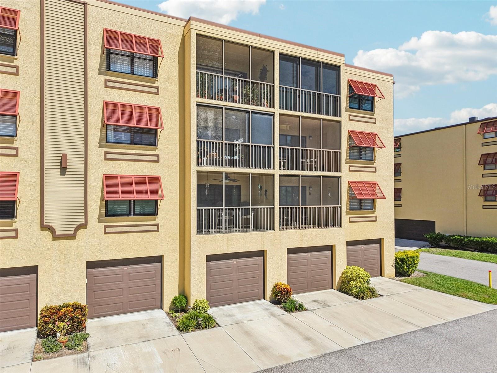 Exceptional Waterfront Condo with Garage and Amenities – 6000 Park Place Condo. Step into this bright and spacious 2-bedroom, 2-bathroom condo in St. Petersburg, where luxury and convenience meet. The first level features a private, one-car garage with updated interlocking flooring and ample storage space—a rare and valuable asset! The main living level welcomes you with light grey ceramic tile flooring flowing throughout, bathed in natural light. The highlight is the screened-in lanai offering a beautiful water view through the glass sliding door, perfect for relaxing mornings or evening cocktails. The updated kitchen boasts elegant wood cabinets and sleek stainless steel appliances, and is perfectly situated to overlook the breakfast nook, dining area, and living room, making entertaining a breeze. Combining practical luxury with smart design, all lower cabinets in the unit have roll-out drawers. The Primary Suite is a true retreat, featuring an en suite bathroom with a separate shower and water closet, plus a custom walk-in closet. The second large bedroom offers privacy and versatility, featuring a custom Murphy bed with a built-in cabinet and desk, generous closet space, and easy access to the second full bathroom. A dedicated laundry room and impact windows completes this fantastic unit. Enjoy the resort-style living with an impressive list of community amenities, including a pool, sauna, tennis courts, shuffleboard, a well-equipped fitness center, and a clubhouse with a kitchen, great hall, and library. This home offers the perfect blend of comfort, style, and community!
