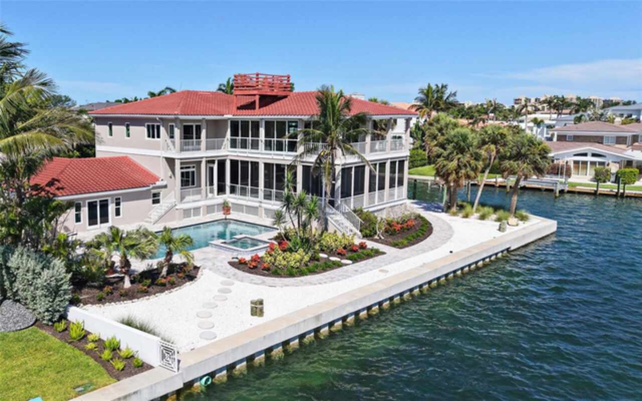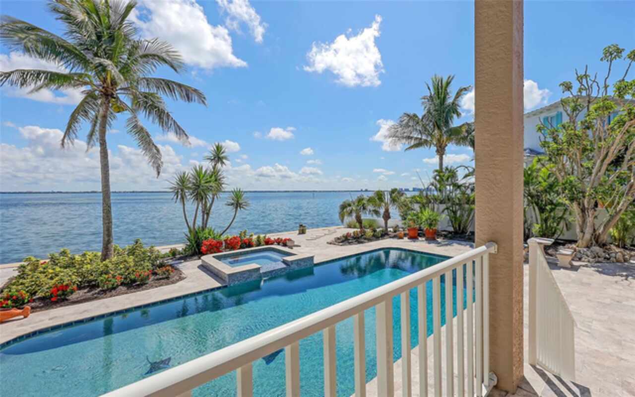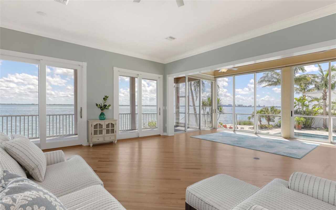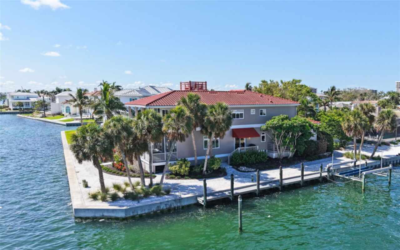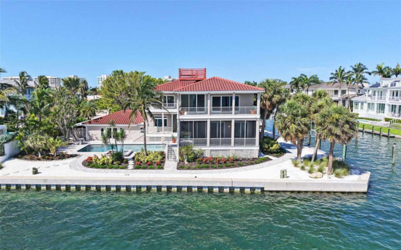Welcome to 585 Gunwale Lane, a rare, full-bayfront offering in the desirable community of Country Club Shores on southern end of Longboat Key. On a .36-acre bayfront parcel with 117 feet on Sarasota Bay and 123 feet on a deepwater canal, this residence is a boater’s paradise. A newer seawall and 58-foot dock (2022) with a 24, 000-pound boat lift assure easy access to Sarasota Bay and the Gulf of Mexico. On the bay side, Ghost Island sandbar emerges at low tide, creating a natural haven that attracts abundant wildlife and offers fantastic shelling. It also serves as a natural barrier, providing protection during storms. On the Gulf side, deeded access to an exclusive community beach is just a half-mile away. Whether you’re heading out for a day on the water or popping over to St. Armands Circle for dinner and shopping, this home puts you in the center of it all. The residence spans 4, 733 square feet and includes three bedrooms and three-and-a-half baths. A soaring 20-foot ceiling defines the living room, where wall-to-wall built-ins create a refined focal point. The dining room opens to a remodeled kitchen outfitted with Graber wood cabinetry and professional-grade Frigidaire appliances. The primary bedroom is on the second floor, featuring a private bayfront balcony, dual walk-in closets, and an adjoining 270-square-foot bonus room ideal for a home office or wellness retreat. Outdoor amenities include a bayfront pool and spa for enjoying Florida sunsets. Additional highlights include impact-resistant windows and doors, and a two-car garage. For those who want to design and build their dream home, this property offers a spectacular location. Imagine a custom rooftop deck with breathtaking 360-degree views of the bay, Gulf, and downtown Sarasota. This is an opportunity to create something extraordinary. This exceptional property presents a rare opportunity to park your boat in the backyard and join the privileged few who call this well-established neighborhood home. By land or by sea, welcome to your fabulous Florida lifestyle!