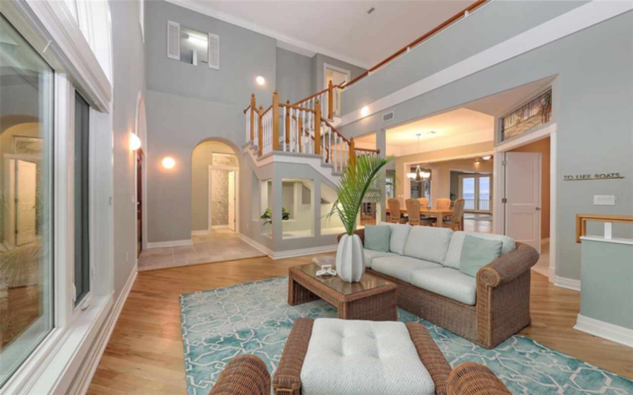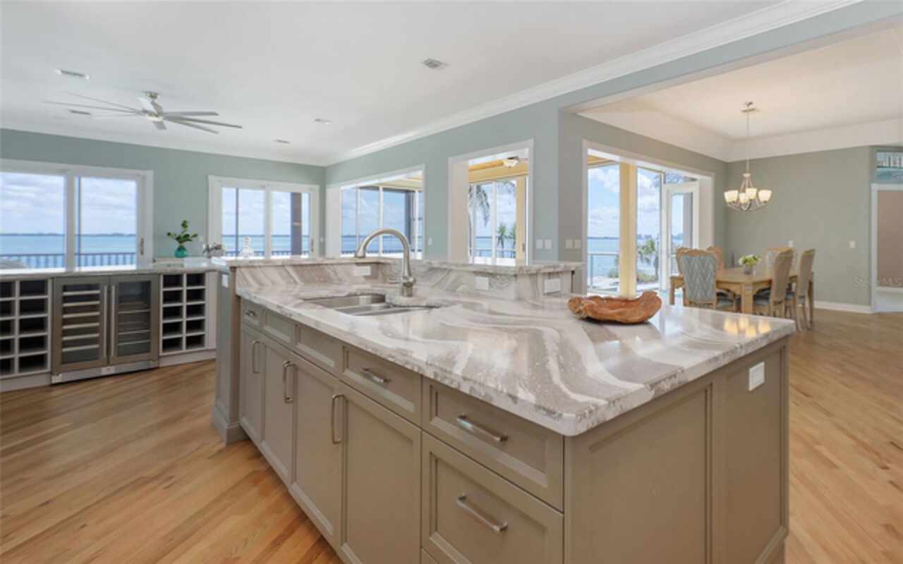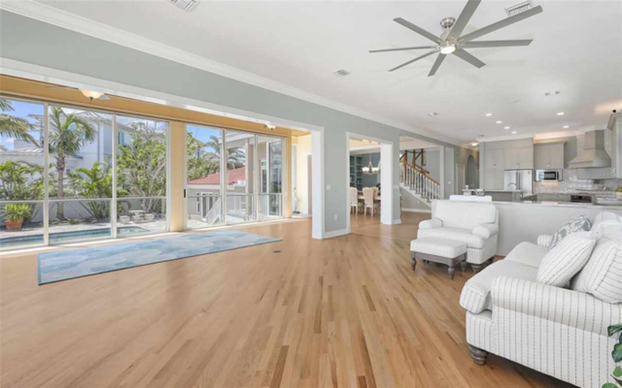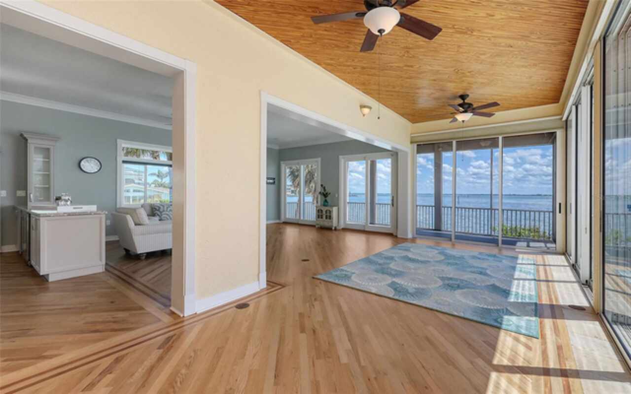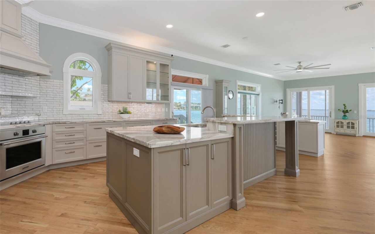 Welcome to 585 Gunwale Lane, a rare, full-bayfront offering in the desirable community of Country Club Shores on southern end of Longboat Key. On a .36-acre bayfront parcel with 117 feet on Sarasota Bay and 123 feet on a deepwater canal, this residence is a boater’s paradise. A newer seawall and 58-foot dock (2022) with a 24, 000-pound boat lift assure easy access to Sarasota Bay and the Gulf of Mexico. On the bay side, Ghost Island sandbar emerges at low tide, creating a natural haven that attracts abundant wildlife and offers fantastic shelling. It also serves as a natural barrier, providing protection during storms. On the Gulf side, deeded access to an exclusive community beach is just a half-mile away. Whether you’re heading out for a day on the water or popping over to St. Armands Circle for dinner and shopping, this home puts you in the center of it all. The residence spans 4, 733 square feet and includes three bedrooms and three-and-a-half baths. A soaring 20-foot ceiling defines the living room, where wall-to-wall built-ins create a refined focal point. The dining room opens to a remodeled kitchen outfitted with Graber wood cabinetry and professional-grade Frigidaire appliances. The primary bedroom is on the second floor, featuring a private bayfront balcony, dual walk-in closets, and an adjoining 270-square-foot bonus room ideal for a home office or wellness retreat. Outdoor amenities include a bayfront pool and spa for enjoying Florida sunsets. Additional highlights include impact-resistant windows and doors, and a two-car garage. For those who want to design and build their dream home, this property offers a spectacular location. Imagine a custom rooftop deck with breathtaking 360-degree views of the bay, Gulf, and downtown Sarasota. This is an opportunity to create something extraordinary. This exceptional property presents a rare opportunity to park your boat in the backyard and join the privileged few who call this well-established neighborhood home. By land or by sea, welcome to your fabulous Florida lifestyle!