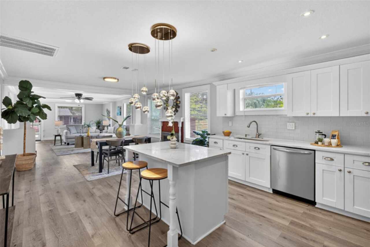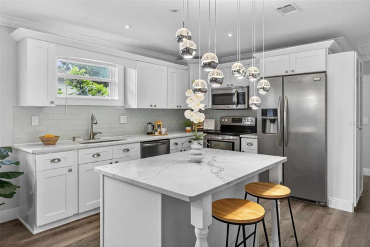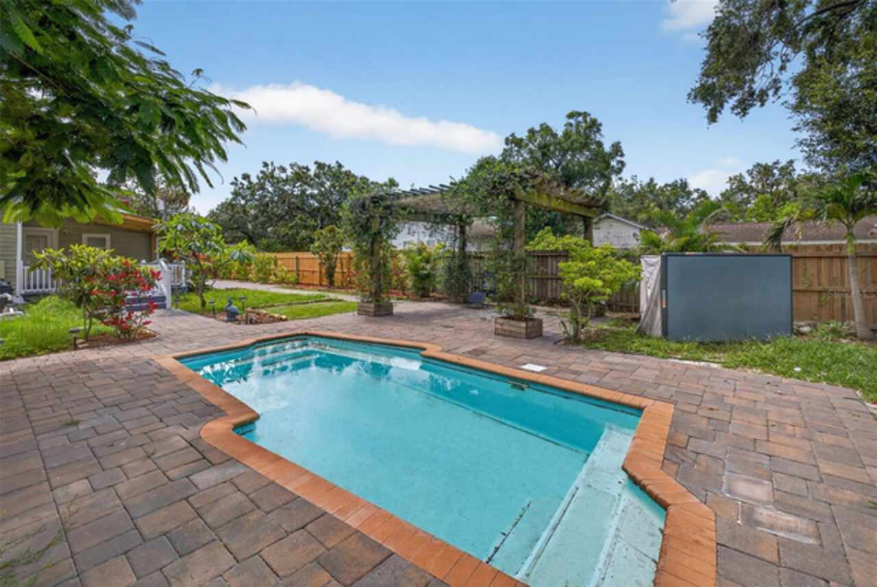 Under contract-accepting backup offers. Welcome to this charming, fully updated bungalow nestled in the heart of Seminole Heights! This beautifully maintained 3-bedroom, 2-bath pool home seamlessly blends historic character with modern updates, making it truly move-in ready. Enjoy peace of mind with a newer roof and A/C (2025), and delight in the stylish kitchen featuring white shaker cabinets, quartz countertops, stainless steel appliances, a central island, and a spacious pantry—perfect for both everyday living and entertaining. The primary bedroom offers a generous closet, while the versatile third bedroom is ideal as a home office, guest room, or creative space. Both bathrooms have been tastefully renovated with marble floors and classic subway tile. An oversized laundry room doubles as extra storage, providing plenty of space for organization and convenience. Step outside to your private backyard oasis, where you’ll find a beautifully landscaped, fully fenced yard with a covered deck and pergola—perfect for relaxing or hosting gatherings. The nearly quarter-acre lot (180 feet deep) provides ample room for play, gardening, or pets, and a handy shed is included for additional storage. This home’s prime location offers unbeatable walkability, just steps from Henry & Ola Park and a short stroll to Seminole Heights favorites like C House, Bodega, and Mandarin Heights. Commuting is a breeze with quick access to I-275, and you’re less than 15 minutes from Downtown Tampa, Armature Works, and the Tampa Riverwalk. Tampa International Airport, major shopping centers, USF, hospitals, and top-rated schools are all within easy reach. This is a rare opportunity to enjoy the best of Tampa Bay living in a vibrant, sought-after neighborhood—schedule your private showing today!