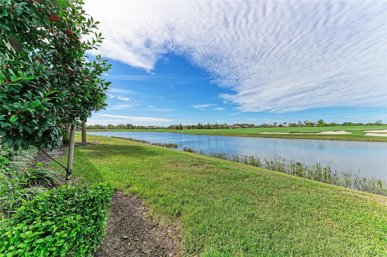Welcome to 5916 Wake Forest Run #104, a first-floor residence in the gated, maintenance-free community of Lakewood National Golf Club in Lakewood Ranch. This impeccably designed home offers 1, 786 square feet of sophisticated living space with three bedrooms, two full baths and a two-car garage. Crafted with precision and curated with high-end finishes, the residence surpasses model-home quality with its refined aesthetic and custom interior enhancements. The open-concept kitchen is a standout, featuring natural gas cooking, stainless steel appliances and quartz countertops with a waterfall-edge island. Custom-built pantry shelving, new cabinet hardware, and dramatic lighting create a culinary space that is functional and striking. The entry, dining and living areas showcase shiplap detailing, while the dining room includes a custom feature wall with built-in lighting, grass cloth wallpaper and integrated storage. The spacious primary bedroom accommodates a king-sized bed and includes dual closets, a Murphy bed that converts to a desk and custom shades. The en-suite bath offers a large step-in shower, coastal grass cloth wallpaper, upgraded vanity mirrors and new fixtures. Two additional bedrooms include custom closets and newer carpet, with one offering a built-in queen Murphy bed with cabinetry and additional storage. The guest bath is equipped with a bidet and a shower-over-tub configuration. Additional interior highlights include newer front-load washer and dryer, a folding counter with overhead storage, and consistent designer lighting and fixtures throughout. The garage features an upgraded epoxy floor, a Kinetico Premier water softener and a tankless water heater. The west-facing lanai is a showpiece, featuring a tongue-and-groove wood ceiling, dual ceiling fans, a custom-painted floor, and unobstructed views of the 18th hole on the Arnold Palmer-designed Commander Course. Enjoy sunsets, morning coffee, or a glass of wine while overlooking one of Florida’s acclaimed golf courses. Recognized by Golf Advisor as Florida’s top-ranked course and listed No. 1 in multiple national categories, the Commander Course elevates the home’s lifestyle appeal for golf enthusiasts and investors alike. Enjoy maintenance-free living at Lakewood National Golf Club with extraordinary amenities that include a zero-entry heated pool with cascading waterfalls and lap lanes, poolside tiki bar and café, fitness center with group exercise classes, an on-site full-service spa, eight lighted Har-Tru tennis courts, bocce, pickleball, several satellite pools, and a stunning 28, 000-square-foot clubhouse which offers fine and casual dining, an expansive bar and lounge, men’s and ladies lounges and locker rooms, conference and meeting space, a full-time lifestyle director who keeps residents’ social life fun and active with trivia night, karaoke night, live concerts on the green, extravagant holiday parties, wine-tasting dinners and more. Lakewood National Golf Club hosts the annual Korn Ferry Tour’s LECOM Suncoast Classic. Lakewood National offers a vibrant, amenity-rich lifestyle, making this residence ideal as a primary home, seasonal retreat or potential income-producing asset. Schedule your private showing today.