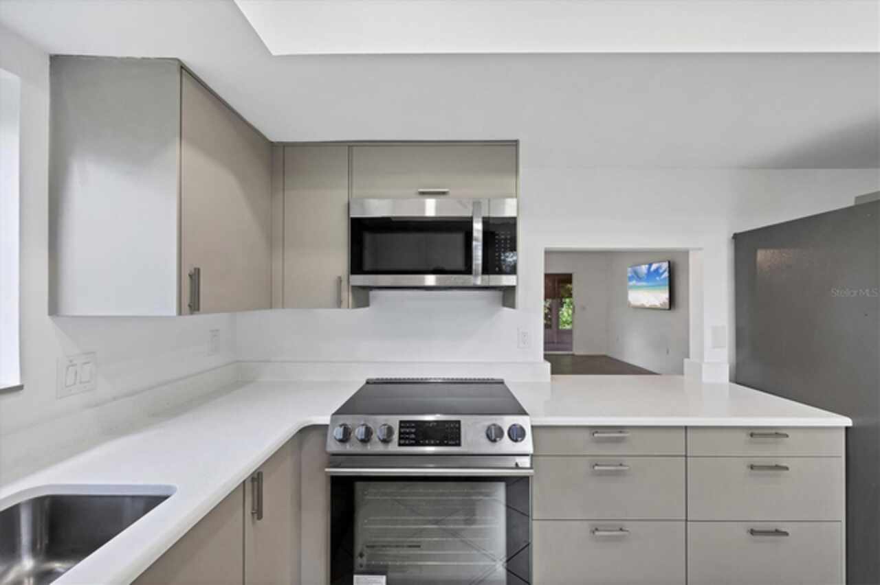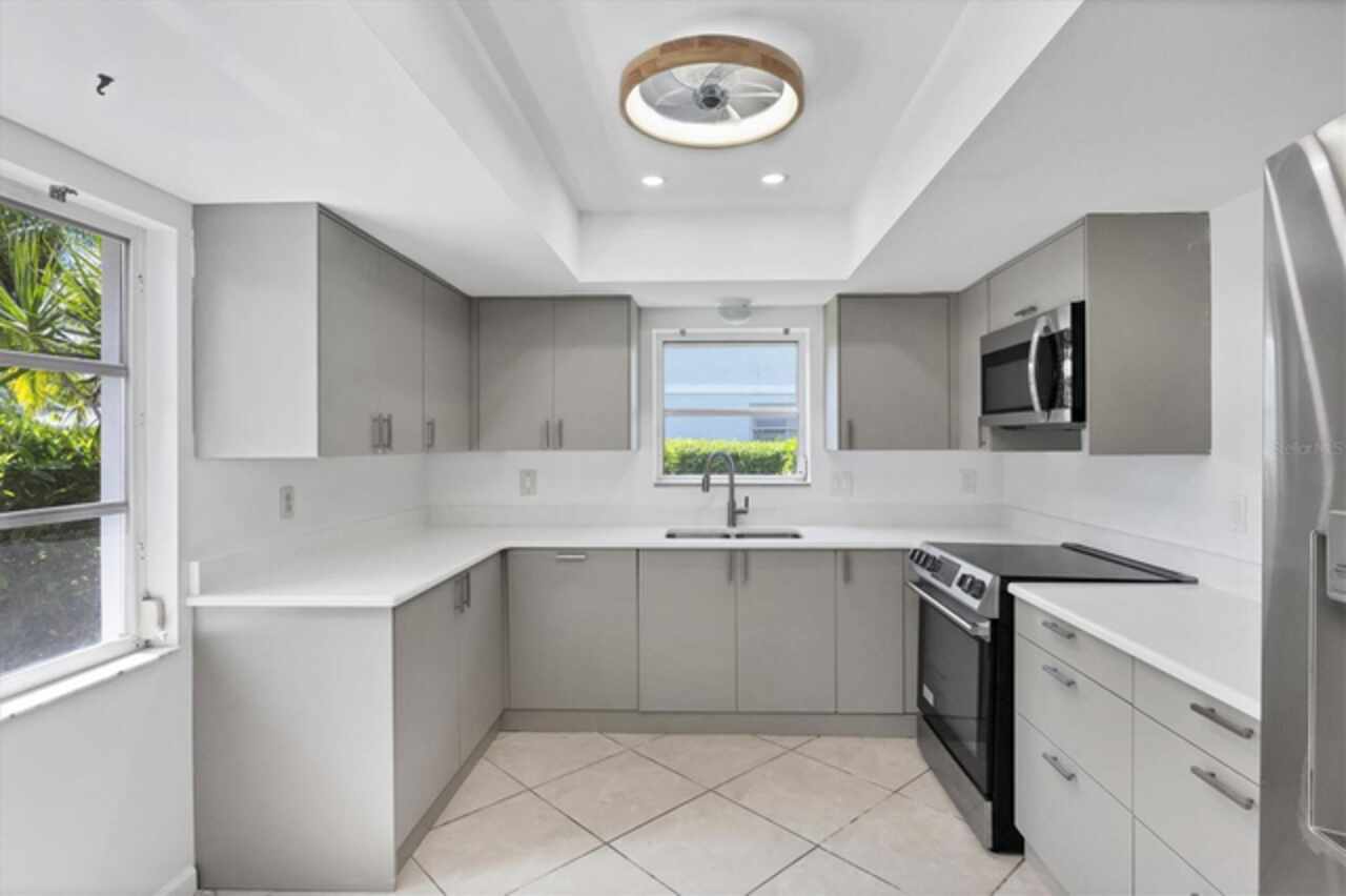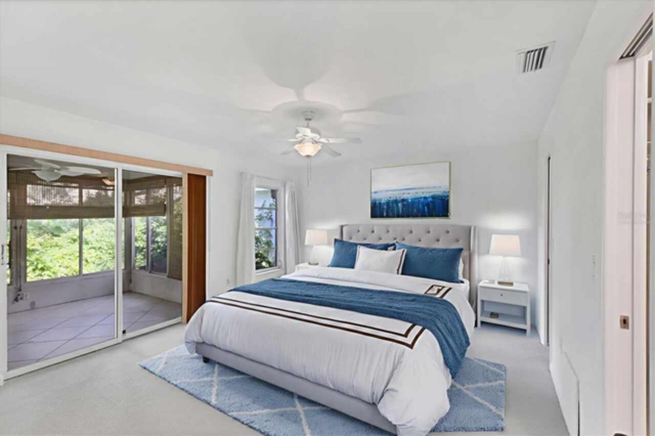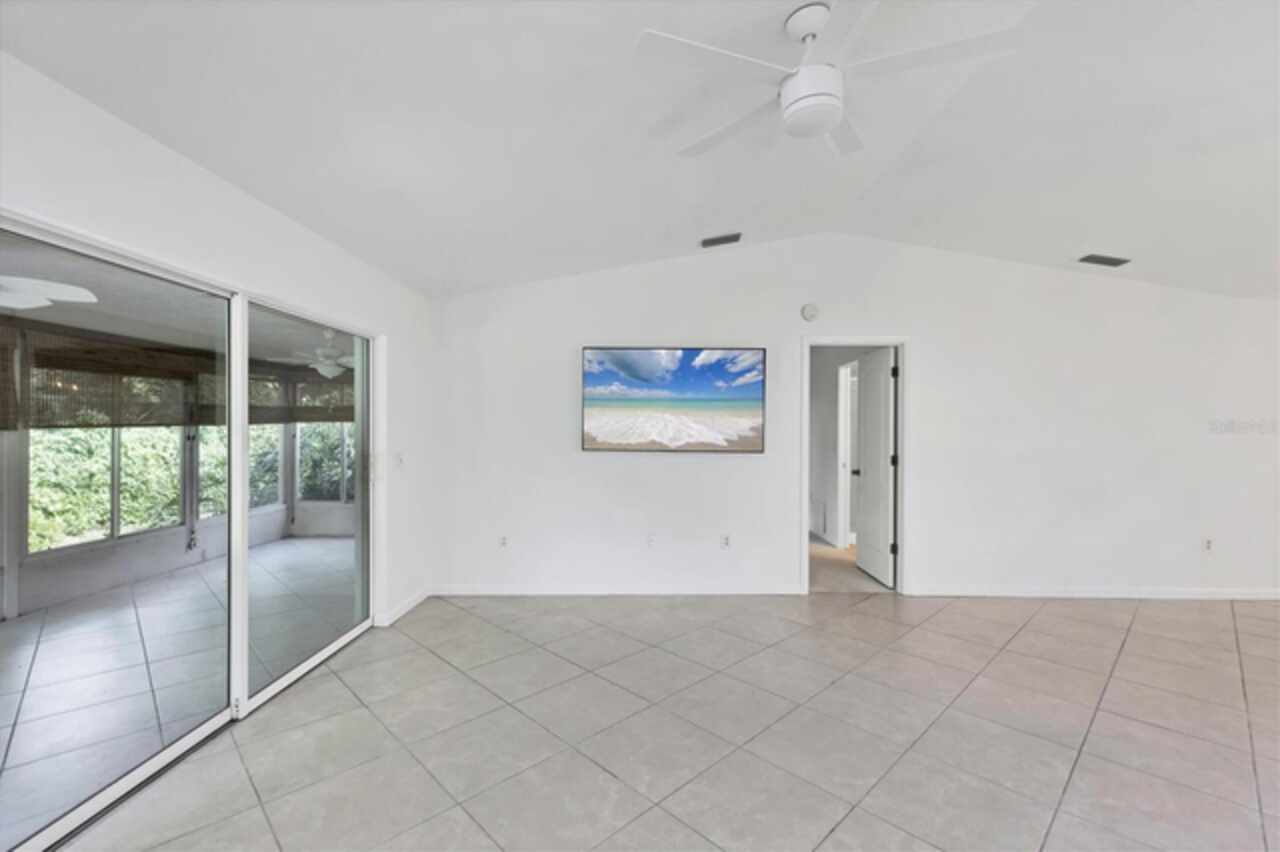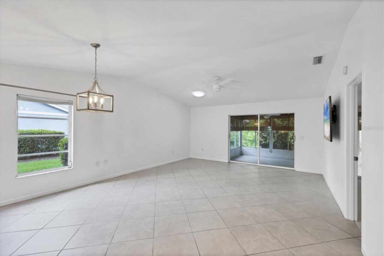 Effortless Florida living awaits in The Villas of Cedar Creek. Unbeatable location just off University Parkway. This spacious 2-bedroom, 2-bath villa with a 2-car garage offers maintenance-free comfort and a refreshed interior. NEW kitchen just completed NEW bedroom carpet and freshly painted interior, plus ceramic tile flooring in the main living areas. NEW ROOF (August 2023), NEW A/C (2024), NEW WATER HEATER (2024) provide peace of mind. The spacious, open great room features a vaulted ceiling and flows seamlessly into the enclosed Florida sunroom, offering additional living space. Overlooking lush, natural landscape provides serene views. The updated kitchen includes modern cabinetry, stainless steel appliances, a cozy dining nook with front yard views, and a convenient pass-through window to the dining room. The primary suite offers private access to the Florida sunroom, a walk-in closet with built-ins, and an ensuite bath with walk-in shower and granite counters. The second bedroom is conveniently located near a stylish guest bath. The two-car garage provides in-home laundry with LG washer and dryer, built-in storage and a utility sink. Located in a quiet, pet-friendly community with a screen-enclosed heated pool and spa, clubhouse, and included lawn care, irrigation, and exterior pest control. Just minutes to UTC, I-75, shopping, dining, hospitals, and world-class beaches. Perfect for year-round living, a seasonal retreat, or rental income.