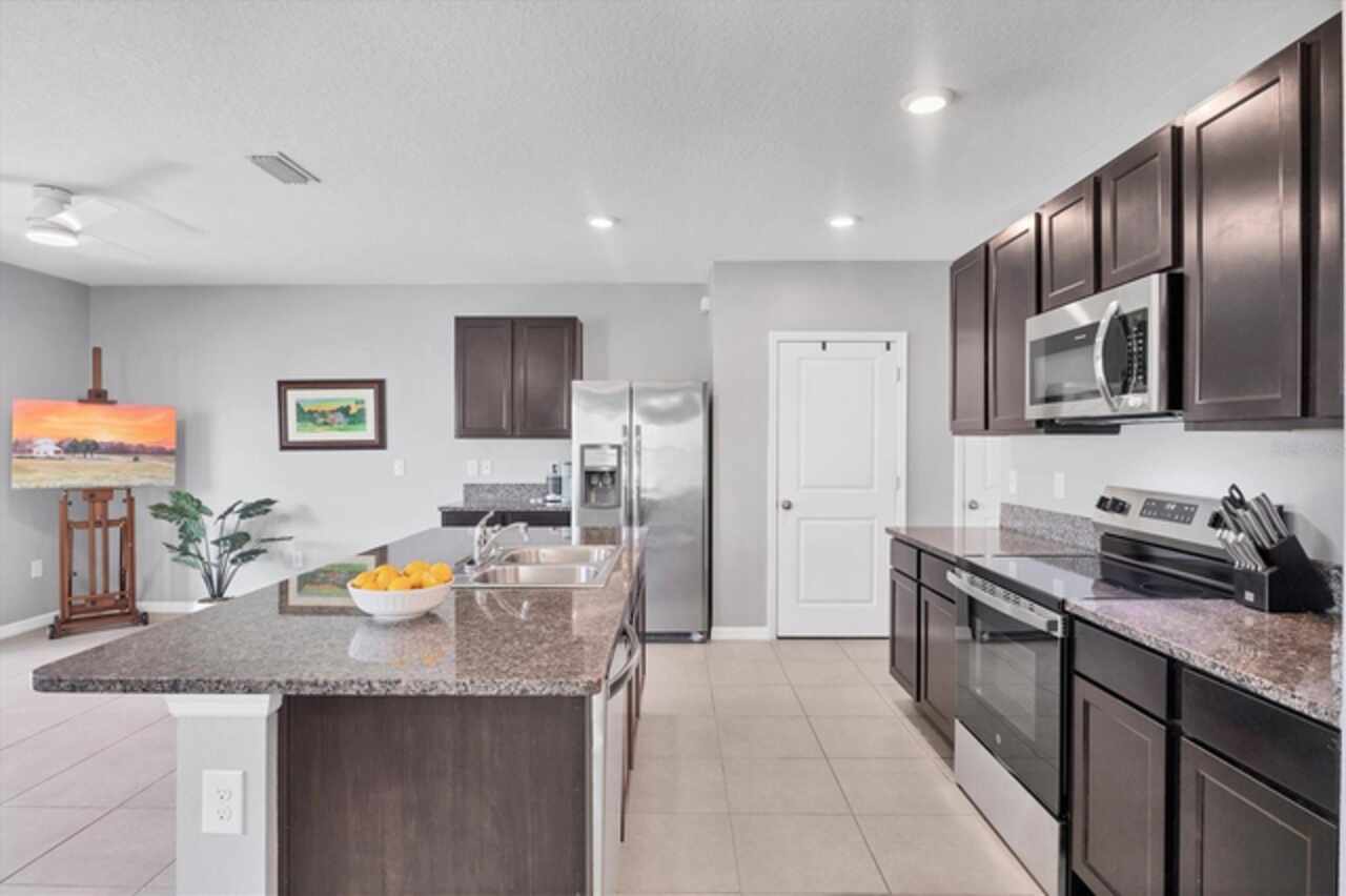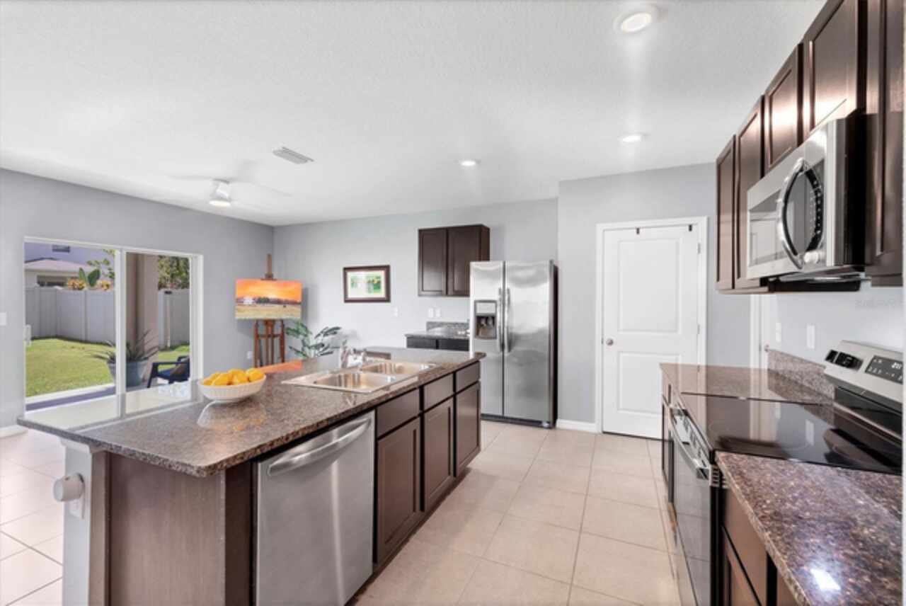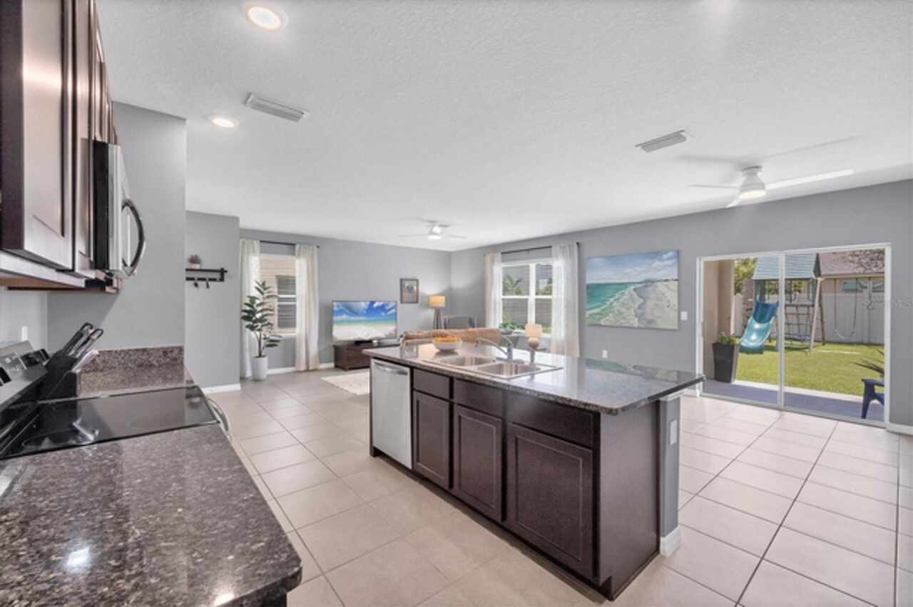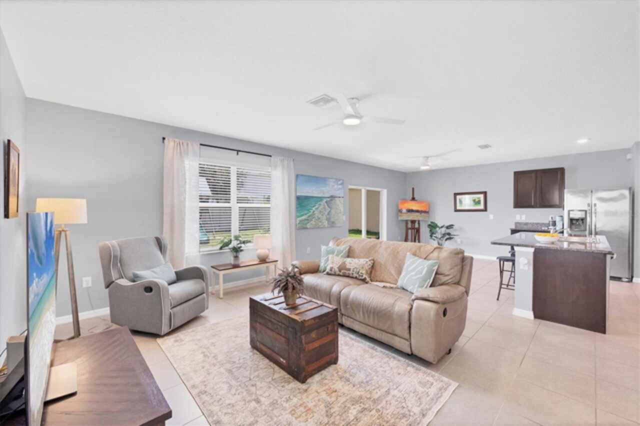 Ceiling Fans(s), Kitchen/Family Room Combo, Open Floorplan, Solid Wood Cabinets, Stone Counters, Walk-In Closet(s), Window Treatments