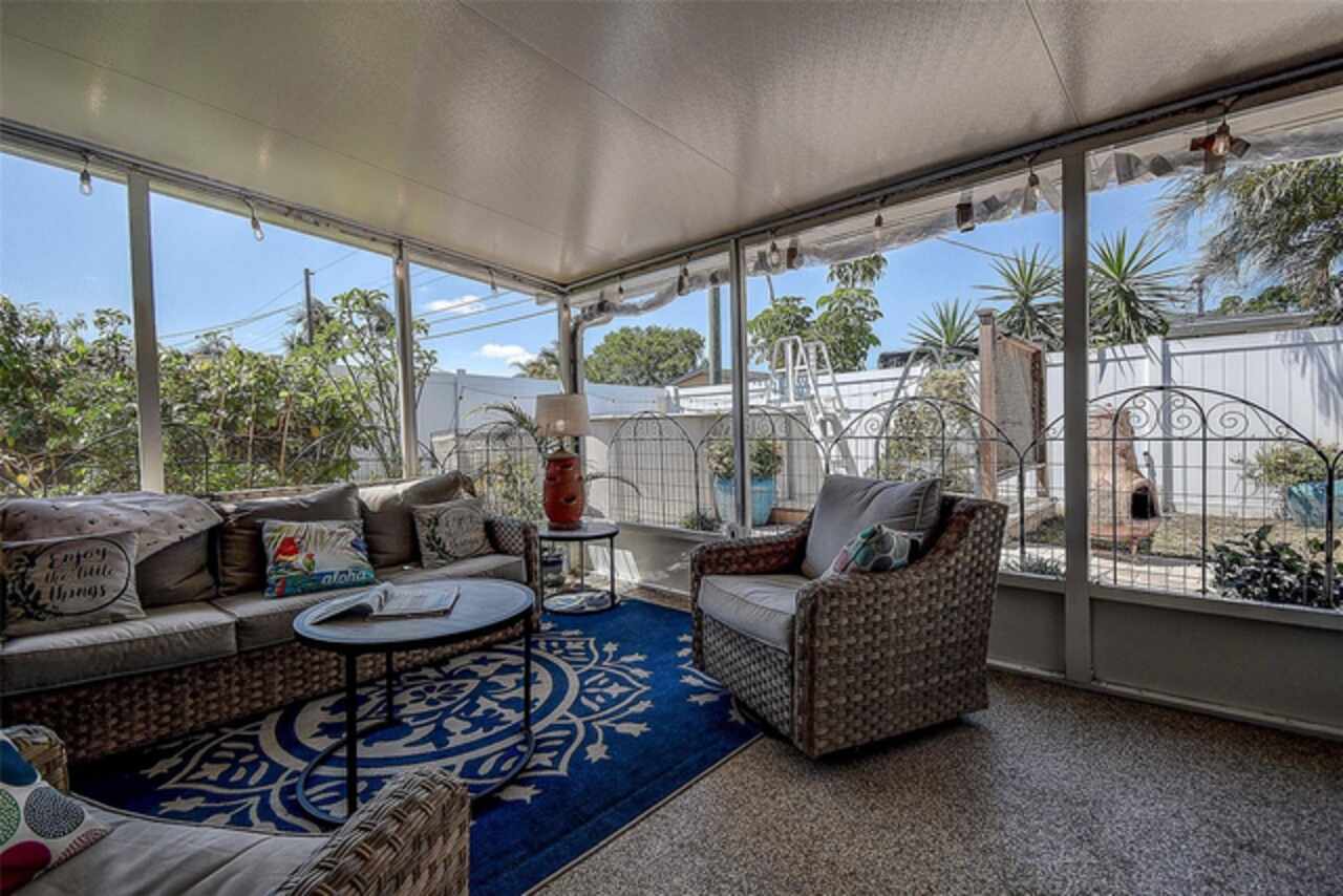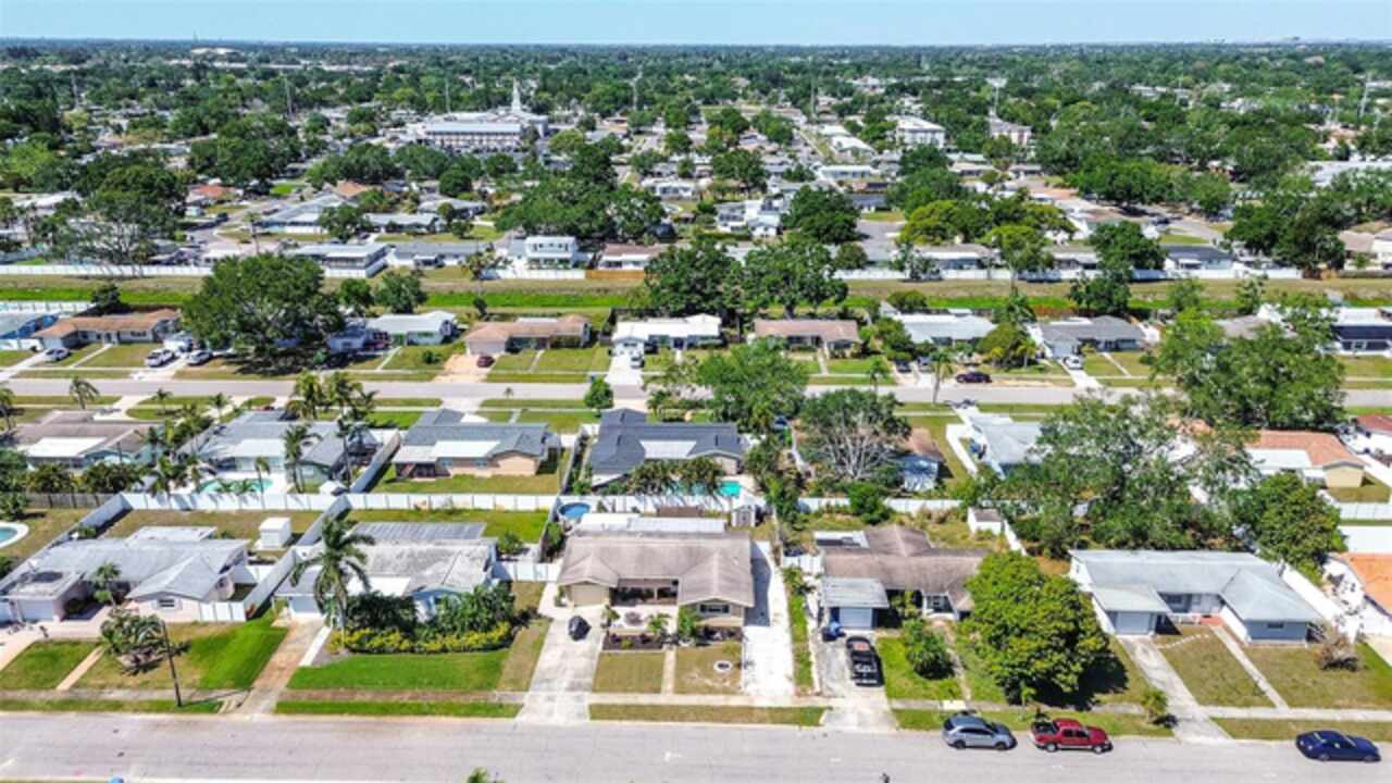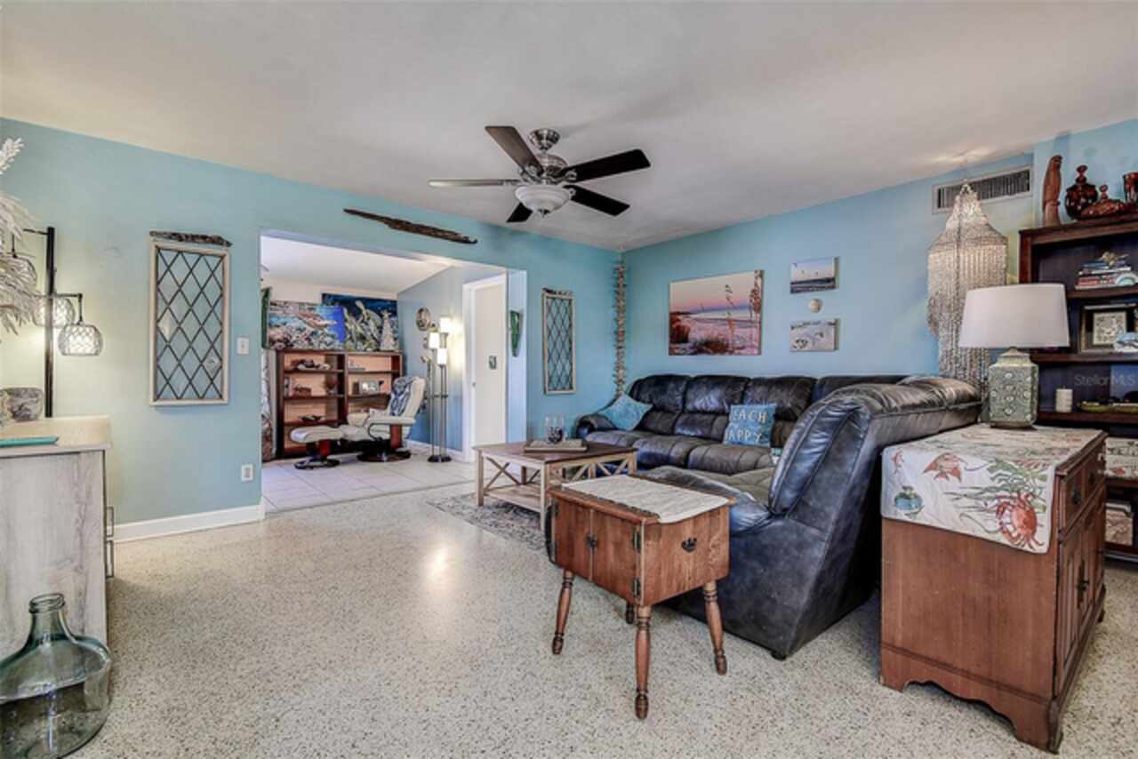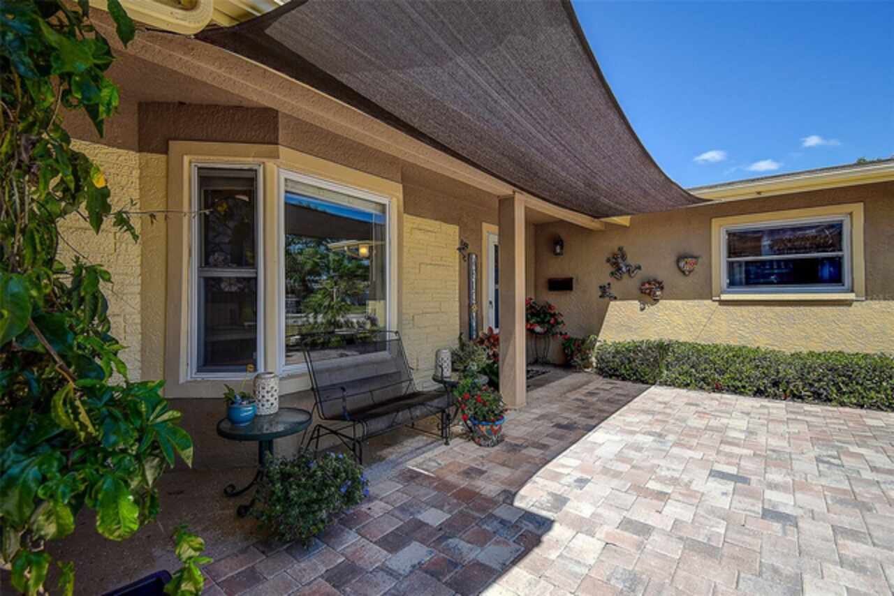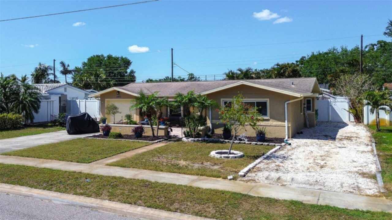 Welcome to this beautifully updated, Mid-Century Home in Sheryl Manor. This quiet, family friendly neighborhood is just minutes from the beaches as well as Downtown St Petersburg. This home was not affected by the hurricanes and received no water damage. The curb appeal is enhanced by a charming front courtyard the you can enjoy with a beautiful bay window. Open concept design welcomes you with sparkling Terrazo floors. The kitchen has top of the line stainless steel appliances and stunning stone countertops with plenty of cabinets for storage. The bathrooms have been completely remodeled, showcasing beautiful craftsmanship. The third bedroom is just off the family room, currently being used as an office. Enjoy peaceful mornings and cozy evenings on the back screened in porch while overlooking the thoughtfully designed backyard. The back deck gives this backyard the perfect backdrop for countless memories. A detached shed provides convenient storage for gardening tools and sports gear.