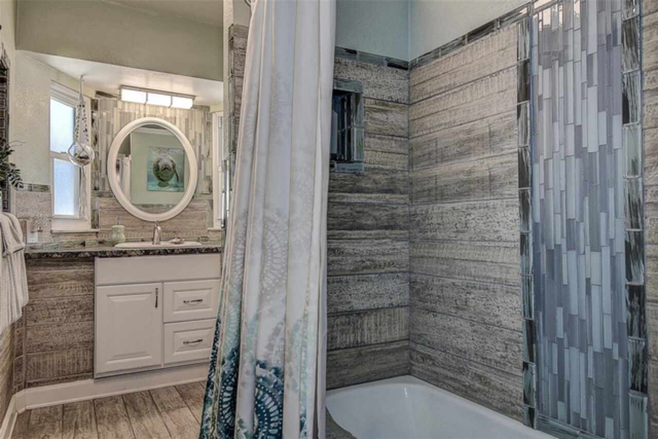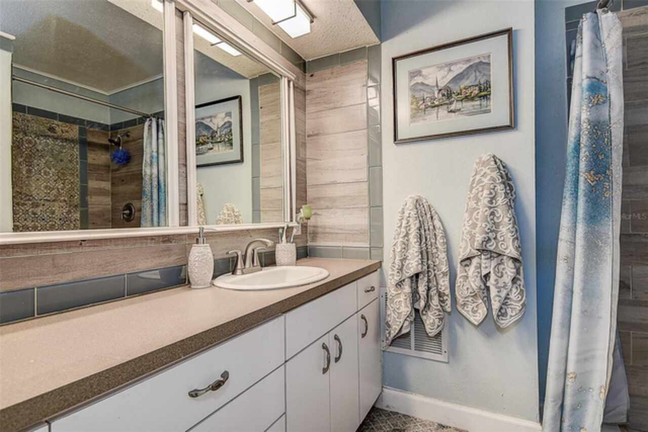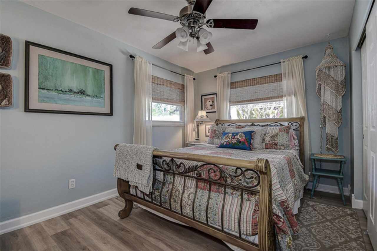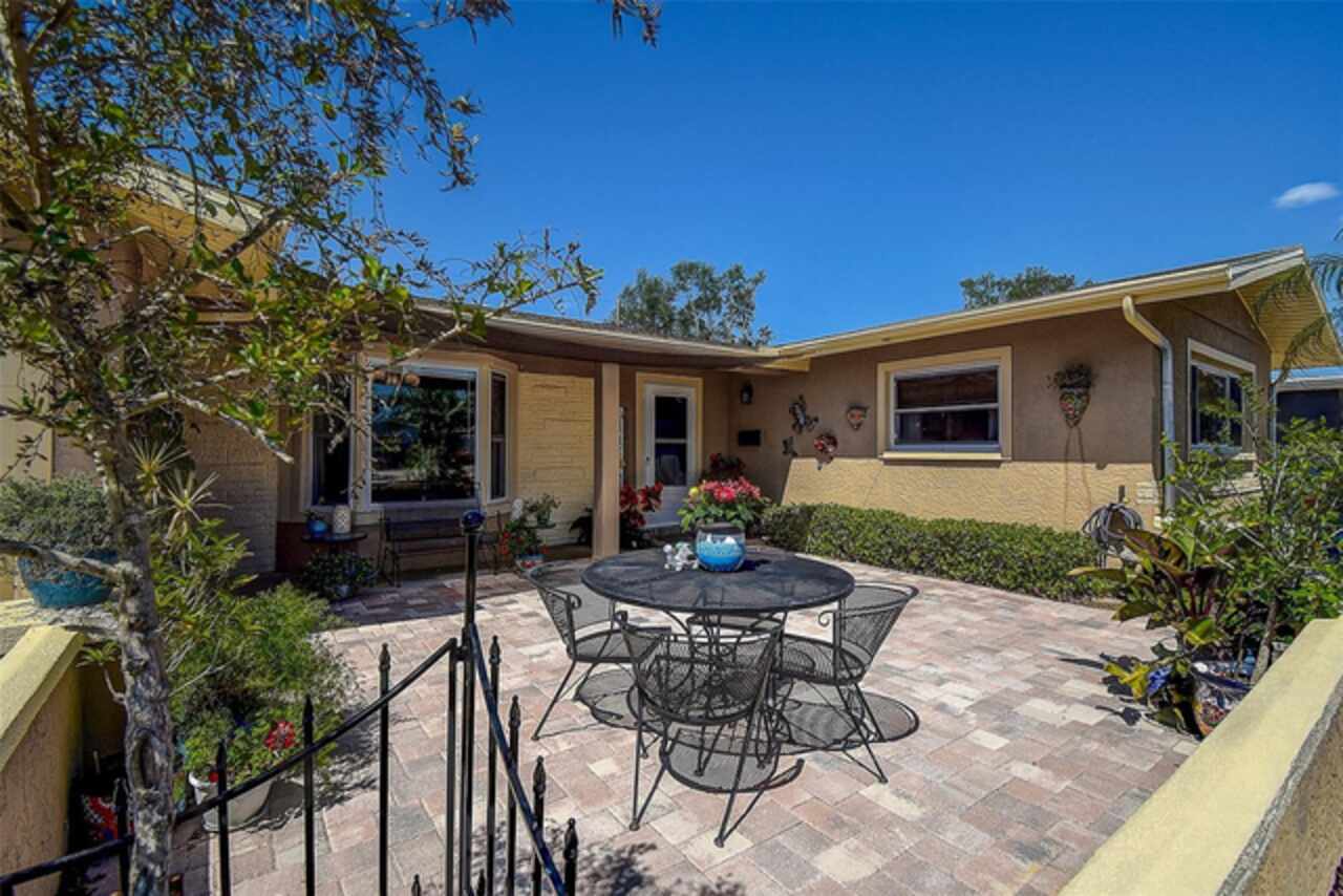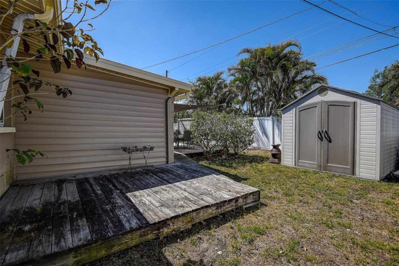 Welcome to this beautifully updated, Mid-Century Home in Sheryl Manor. This quiet, family friendly neighborhood is just minutes from the beaches as well as Downtown St Petersburg. This home was not affected by the hurricanes and received no water damage. The curb appeal is enhanced by a charming front courtyard the you can enjoy with a beautiful bay window. Open concept design welcomes you with sparkling Terrazo floors. The kitchen has top of the line stainless steel appliances and stunning stone countertops with plenty of cabinets for storage. The bathrooms have been completely remodeled, showcasing beautiful craftsmanship. The third bedroom is just off the family room, currently being used as an office. Enjoy peaceful mornings and cozy evenings on the back screened in porch while overlooking the thoughtfully designed backyard. The back deck gives this backyard the perfect backdrop for countless memories. A detached shed provides convenient storage for gardening tools and sports gear.