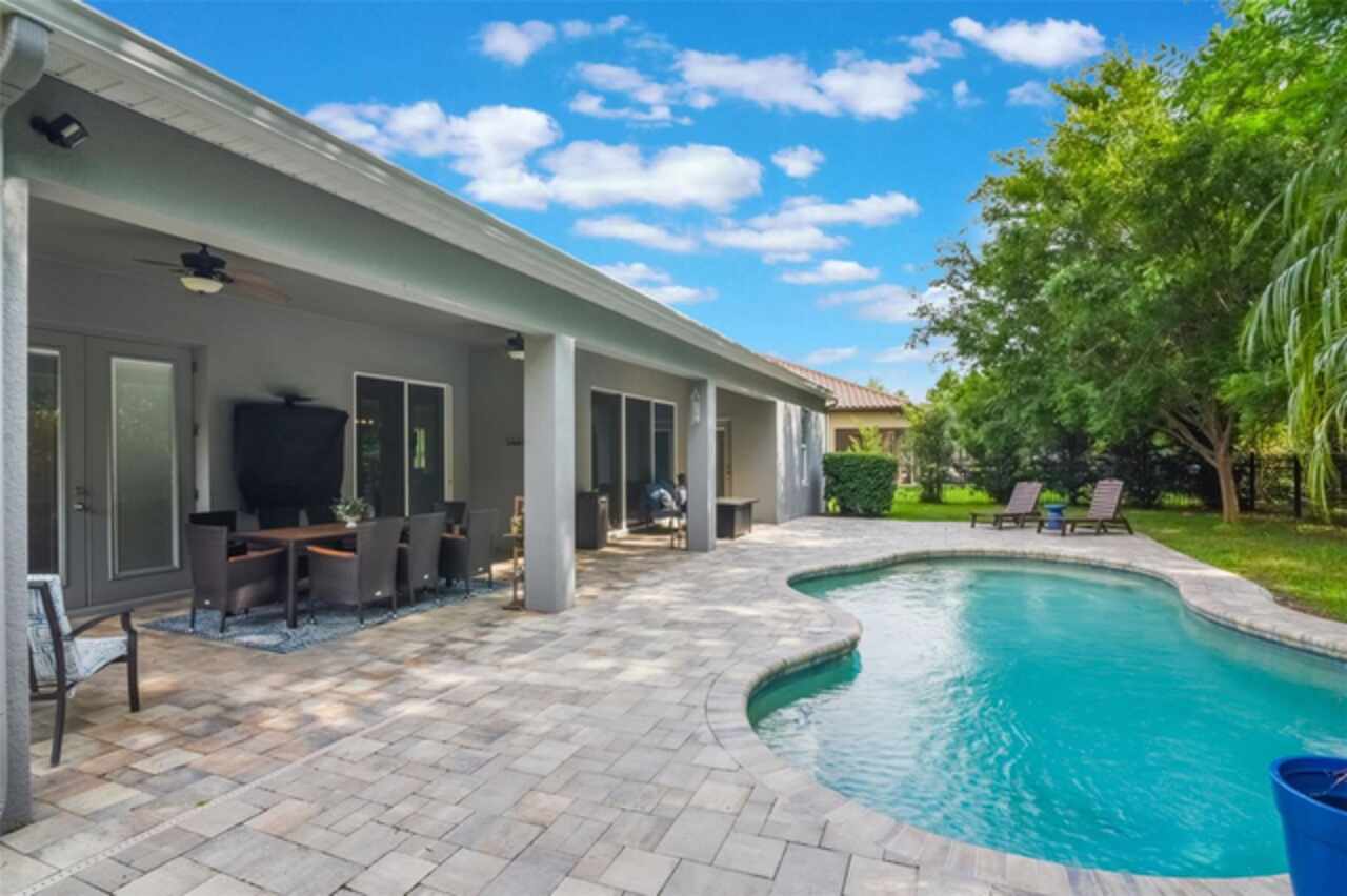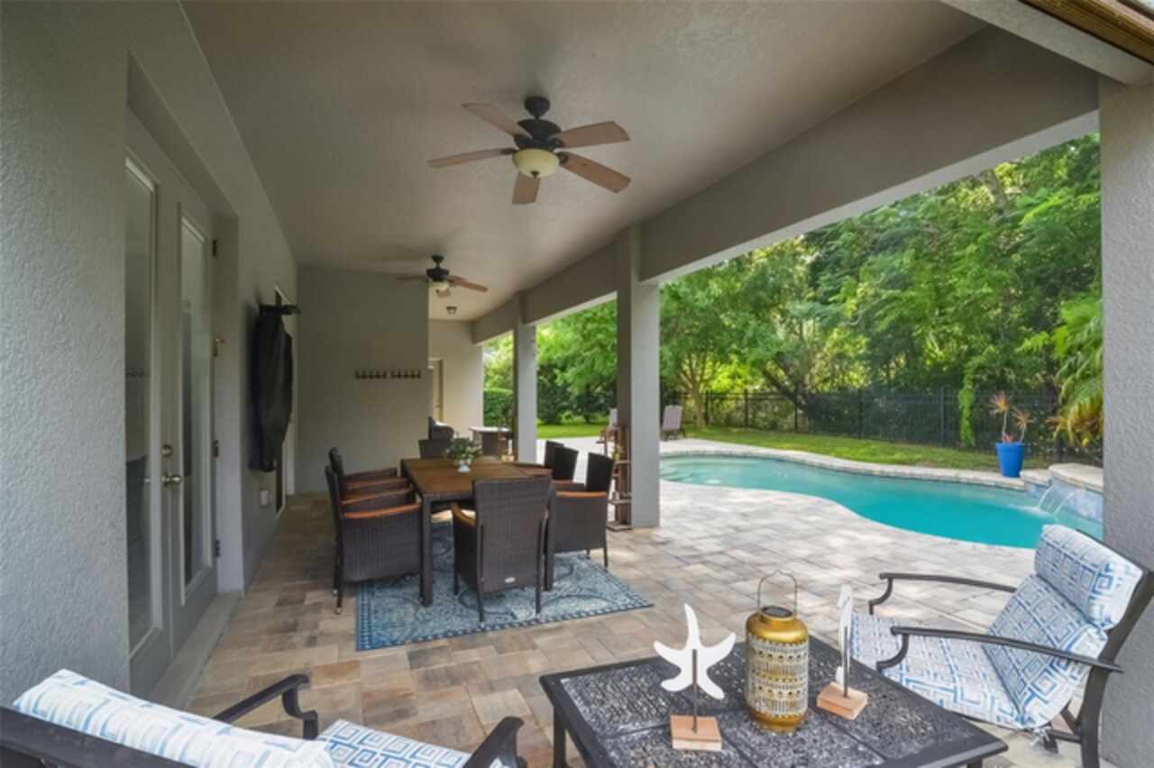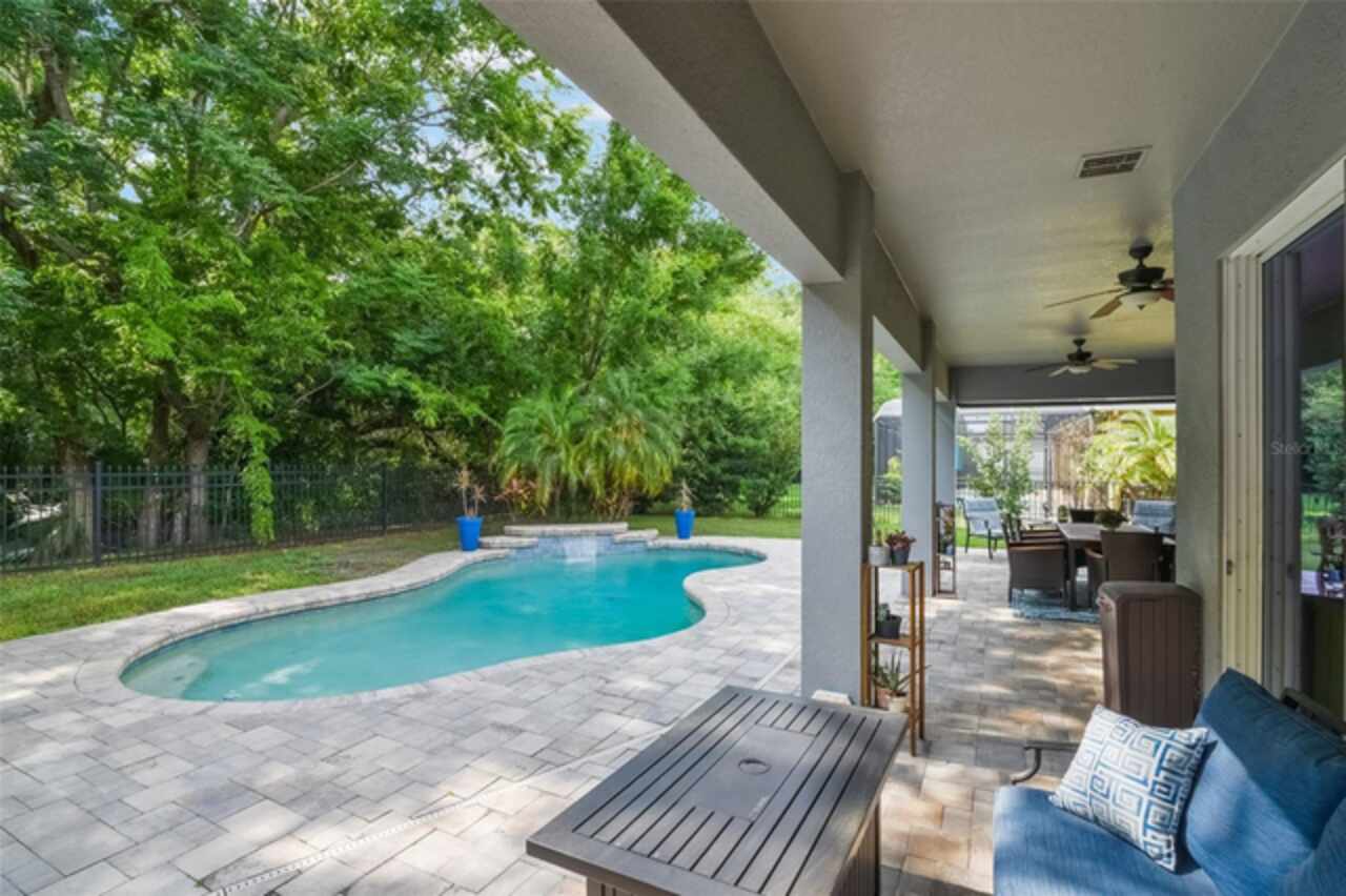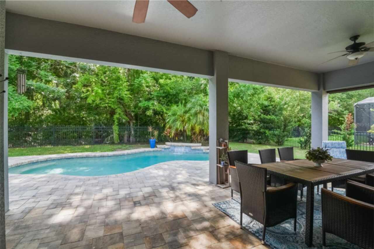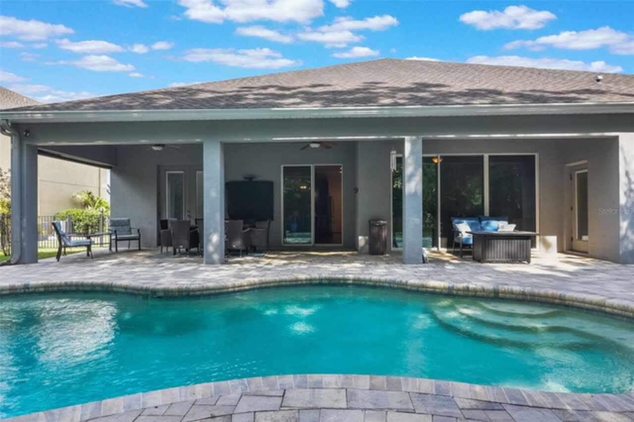 Under contract-accepting backup offers. Welcome to the Florida lifestyle you’ve been waiting for—this impeccably maintained, single-story pool home in the gated community of Oviedo Garden offers the perfect blend of comfort, sophistication, and functionality. Privately positioned at the end of a quiet cul-de-sac with serene conservation views, this 4-bedroom, 3-bath home with a dedicated office and over 3, 000 square feet exudes model-home quality from the moment you arrive. High ceilings, crown molding, and luxury vinyl plank flooring throughout set a refined tone, while the open-concept layout provides seamless flow for everyday living and entertaining. The gourmet kitchen features stainless steel appliances, double ovens, an oversized center island, and a built-in breakfast nook—all connected to the formal dining and living areas by a convenient butler’s pantry. The family room is anchored by custom built-ins and a sleek electric fireplace, with two sets of doors leading to the extended lanai and private pool featuring a tranquil waterfall and optional saltwater system. A thoughtful split-bedroom layout ensures privacy for guests and family alike, while the serene primary suite opens directly to the lanai and offers a spa-inspired bath with soaking tub, dual vanities, a large walk-in shower, and an expansive walk-in closet. Additional highlights include a 3-car garage, full security system with Ring cameras, mature landscaping, and a fully fenced backyard. For peace of mind during storm season, the home is equipped with a built-in partial-home generator, ensuring the basic necessities are handled when power outages occur. Zoned for top-rated Seminole County schools and just minutes from parks, shopping, dining, and UCF, this move-in-ready gem captures the essence of upscale Florida living.