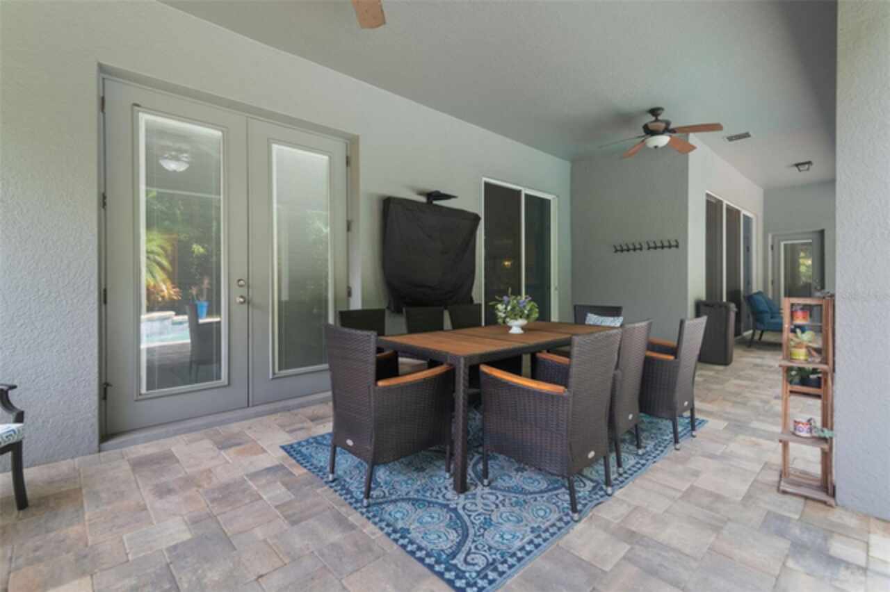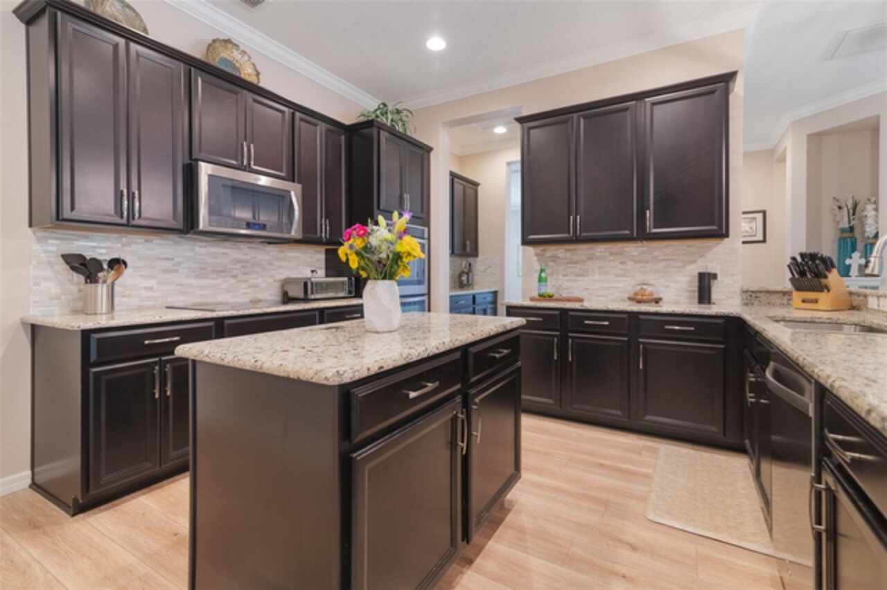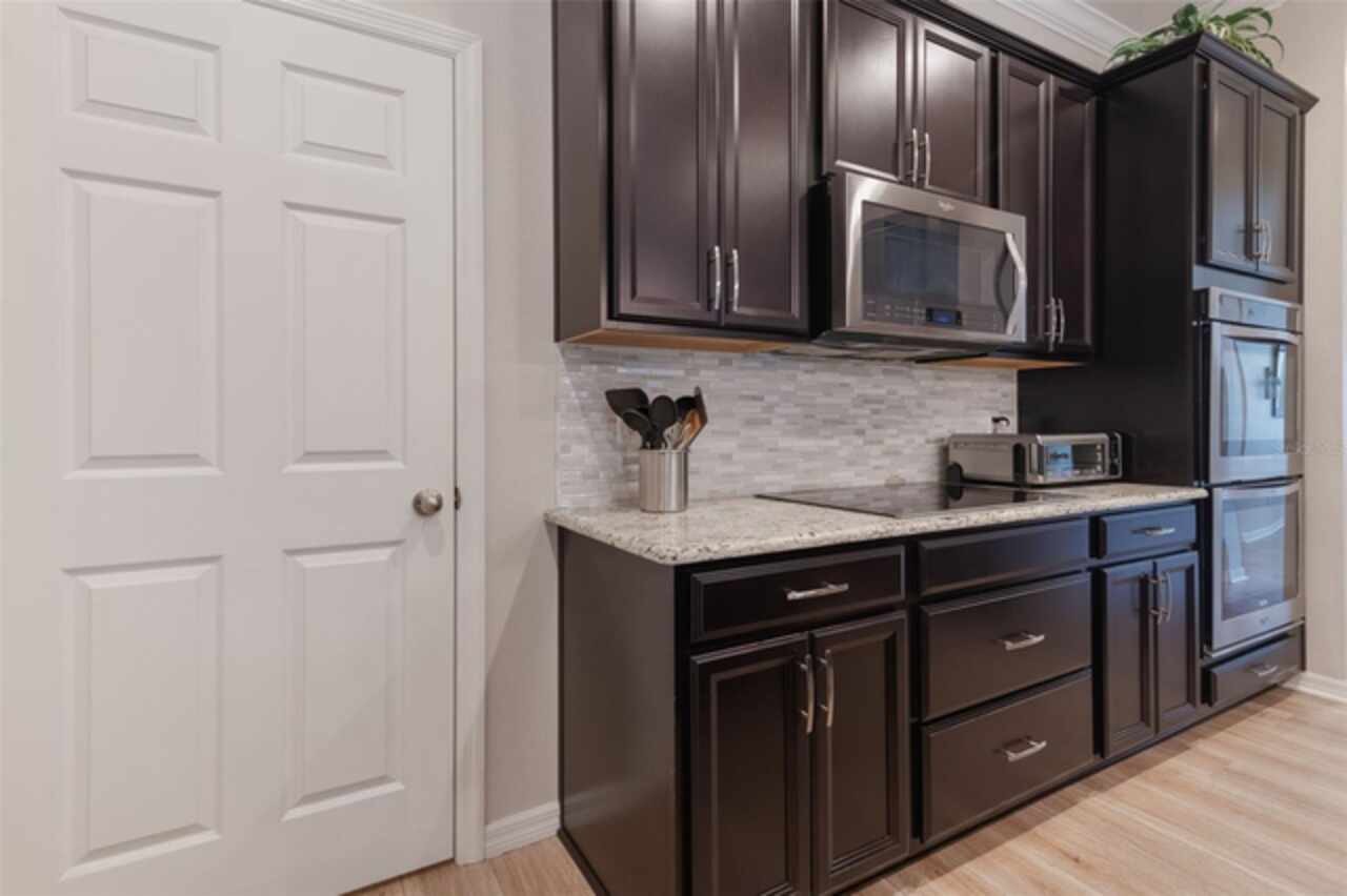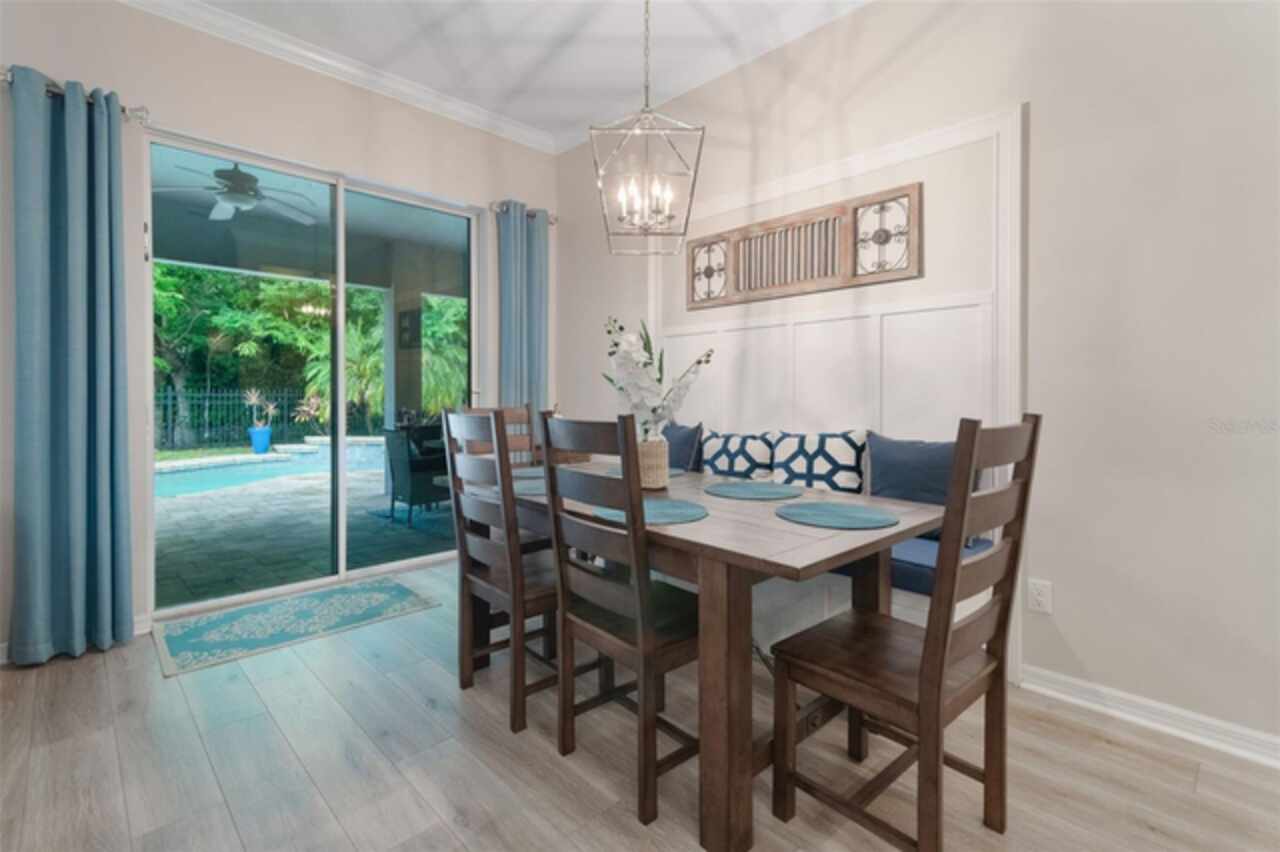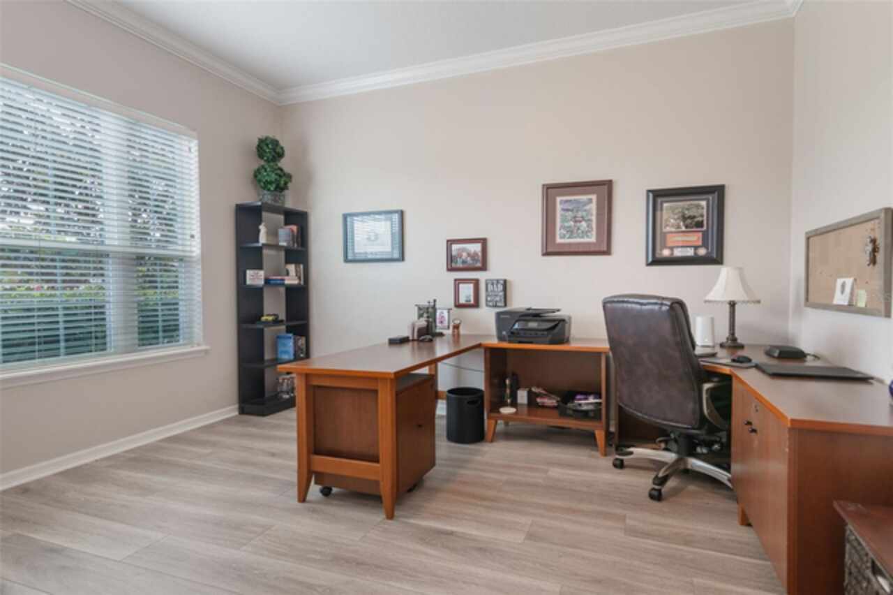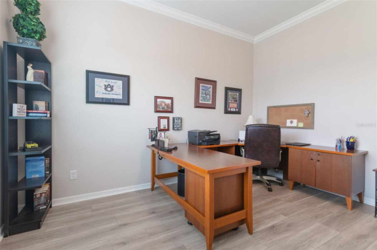 Under contract-accepting backup offers. Welcome to the Florida lifestyle you’ve been waiting for—this impeccably maintained, single-story pool home in the gated community of Oviedo Garden offers the perfect blend of comfort, sophistication, and functionality. Privately positioned at the end of a quiet cul-de-sac with serene conservation views, this 4-bedroom, 3-bath home with a dedicated office and over 3, 000 square feet exudes model-home quality from the moment you arrive. High ceilings, crown molding, and luxury vinyl plank flooring throughout set a refined tone, while the open-concept layout provides seamless flow for everyday living and entertaining. The gourmet kitchen features stainless steel appliances, double ovens, an oversized center island, and a built-in breakfast nook—all connected to the formal dining and living areas by a convenient butler’s pantry. The family room is anchored by custom built-ins and a sleek electric fireplace, with two sets of doors leading to the extended lanai and private pool featuring a tranquil waterfall and optional saltwater system. A thoughtful split-bedroom layout ensures privacy for guests and family alike, while the serene primary suite opens directly to the lanai and offers a spa-inspired bath with soaking tub, dual vanities, a large walk-in shower, and an expansive walk-in closet. Additional highlights include a 3-car garage, full security system with Ring cameras, mature landscaping, and a fully fenced backyard. For peace of mind during storm season, the home is equipped with a built-in partial-home generator, ensuring the basic necessities are handled when power outages occur. Zoned for top-rated Seminole County schools and just minutes from parks, shopping, dining, and UCF, this move-in-ready gem captures the essence of upscale Florida living.