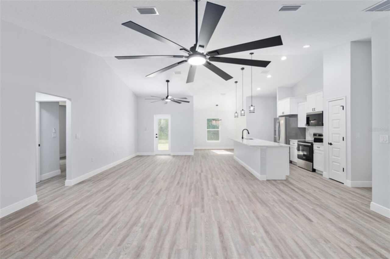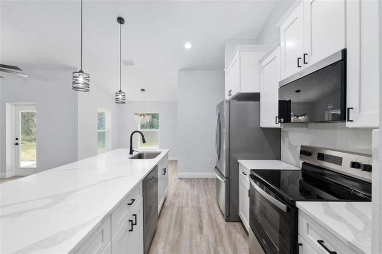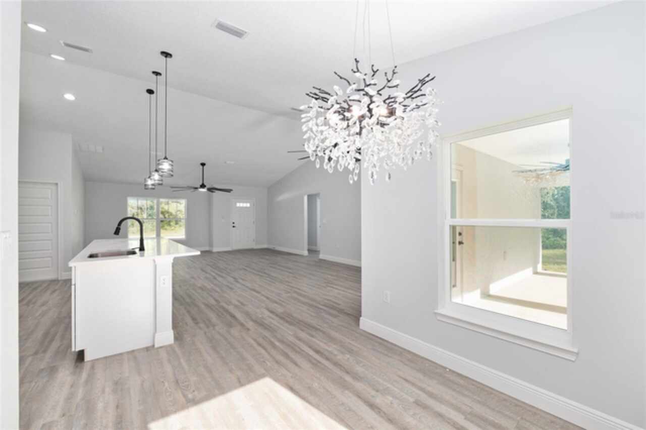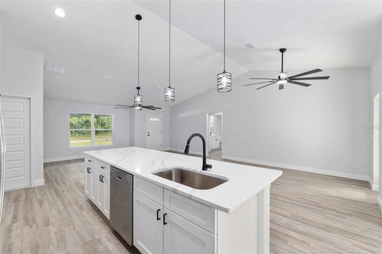 Fall in love with this beautifully upgraded 3-bedroom, 2-bath home featuring a spacious 2-car garage. The gourmet kitchen is a showstopper with quartz countertops, matching quartz backsplash, an oversized island, and modern light fixtures. Soaring 72-inch ceiling fans enhance the open-concept living area, creating both style and comfort. The master bedroom suite offers two walk-in closets and a luxurious en-suite bath with an expanded layout and a walk-in tiled shower. Enjoy Florida living at its best with a 20x8 covered lanai - perfect for relaxing or entertaining. This home truly combines elegance, function, and comfort in every detail. Just a short drive to Dunnellon, Crystal River and many local springs. Don't miss out, schedule your showing today.