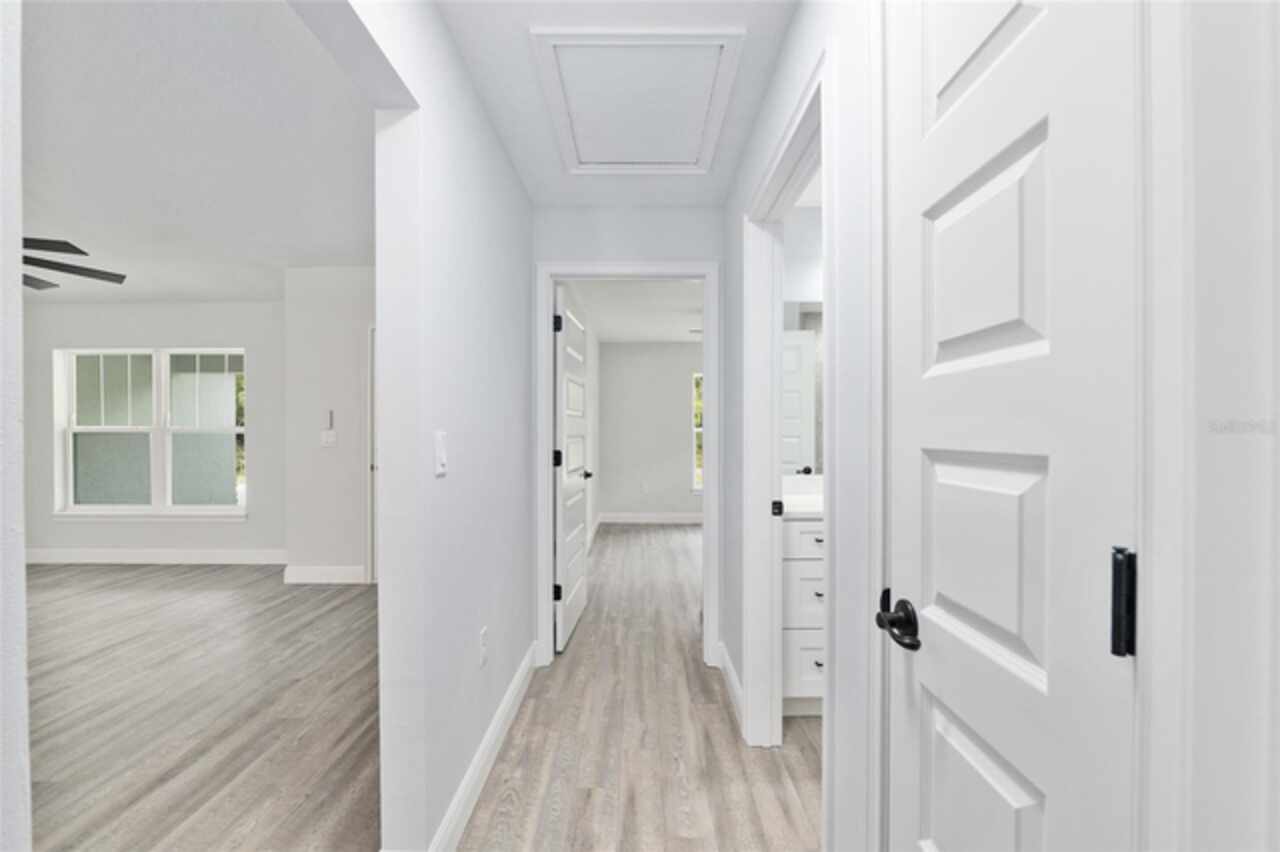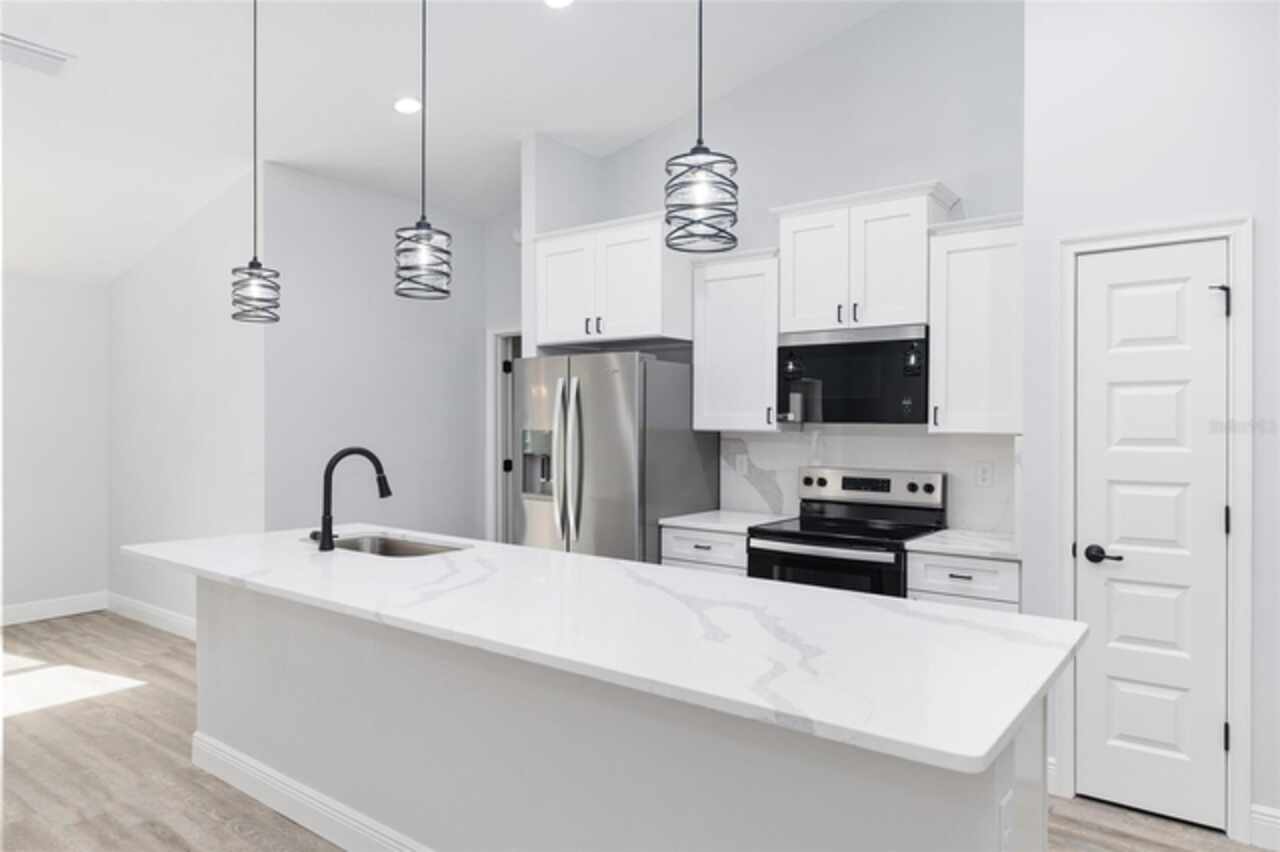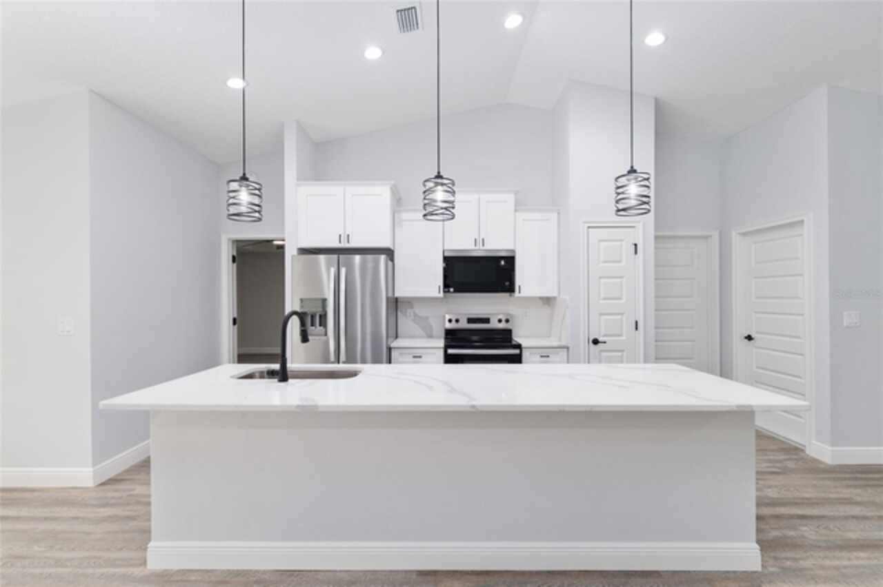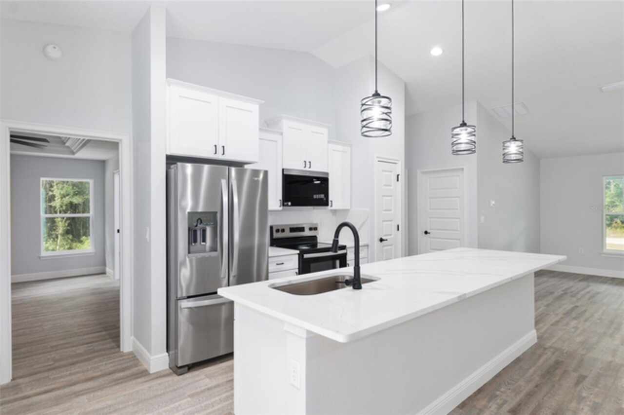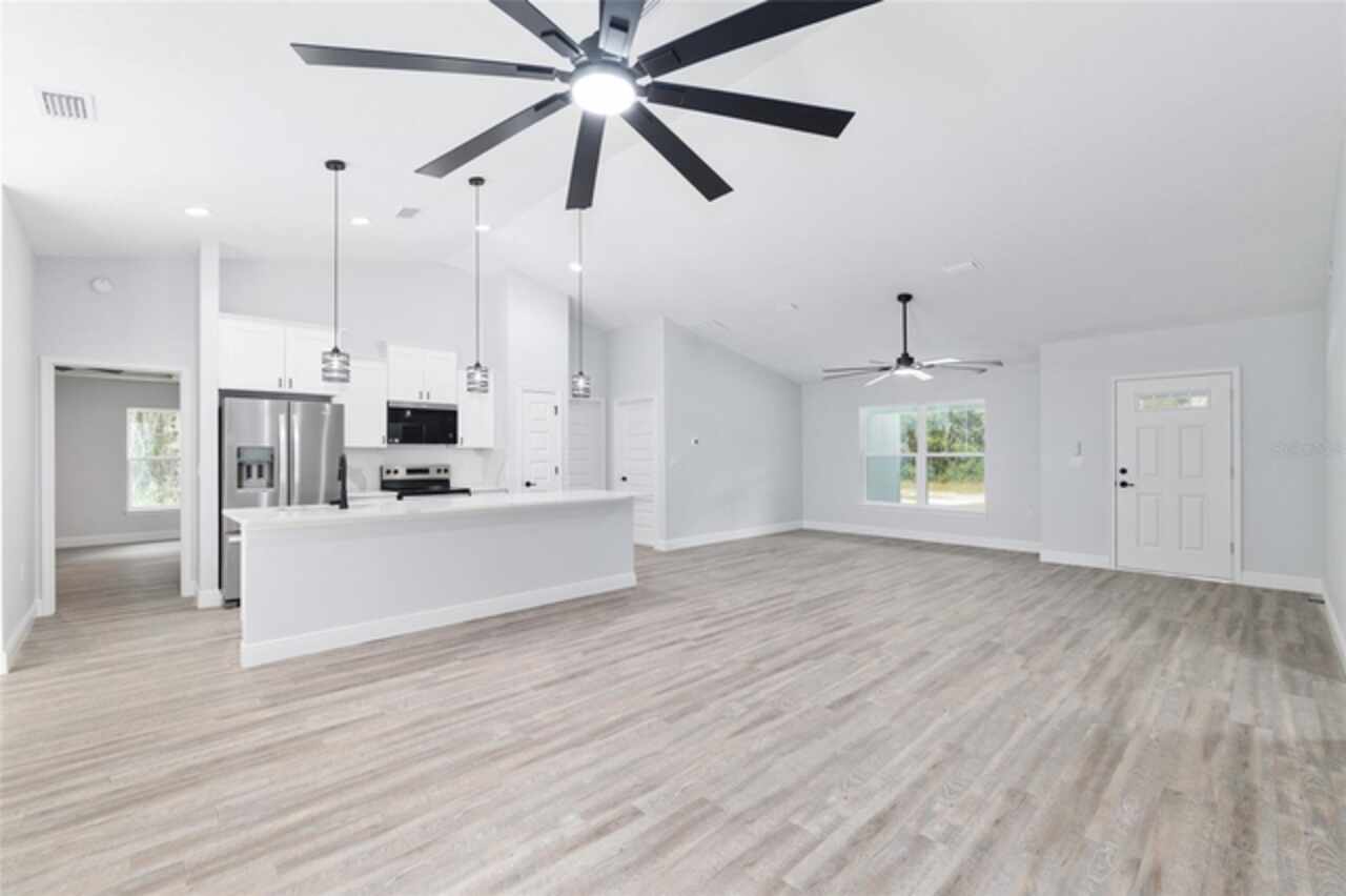 Fall in love with this beautifully upgraded 3-bedroom, 2-bath home featuring a spacious 2-car garage. The gourmet kitchen is a showstopper with quartz countertops, matching quartz backsplash, an oversized island, and modern light fixtures. Soaring 72-inch ceiling fans enhance the open-concept living area, creating both style and comfort. The master bedroom suite offers two walk-in closets and a luxurious en-suite bath with an expanded layout and a walk-in tiled shower. Enjoy Florida living at its best with a 20x8 covered lanai - perfect for relaxing or entertaining. This home truly combines elegance, function, and comfort in every detail. Just a short drive to Dunnellon, Crystal River and many local springs. Don't miss out, schedule your showing today.