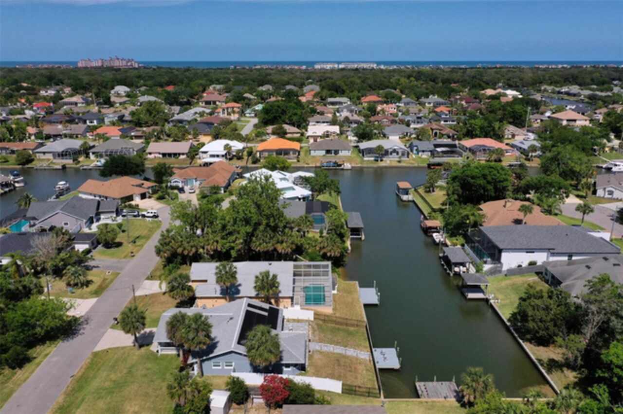 One or more photo(s) has been virtually staged. "Qualified buyers may receive a significant lender credit at closing through a preferred lending program." Located in the highly sought-after "Sailboat Country" of Palm Coast, 6 Crossleaf Ct E is a beautifully maintained waterfront 3-bedroom, 2-bathroom home offering 1, 635 square feet of comfortable living space with stunning saltwater canal views. Perfect for boating enthusiasts, this home is just minutes from the Intracoastal and features a private wood dock with electric and water hookups—ideal for waterfront living. The home’s open layout features vaulted ceilings and a spacious living room with sliding glass doors that lead directly to the screened-in, in-ground saltwater pool (newly refinished)—perfect for relaxing or entertaining. The kitchen is equipped with stainless steel appliances, solid wood cabinets, and granite countertops. The master suite is a peaceful retreat with trey ceilings, a walk-in closet, dual sinks, a soaking tub, a separate shower, and convenient access to the pool area. Don’t miss this opportunity to enjoy the best of Florida’s coastal lifestyle in a serene waterfront setting. Schedule your private tour today!